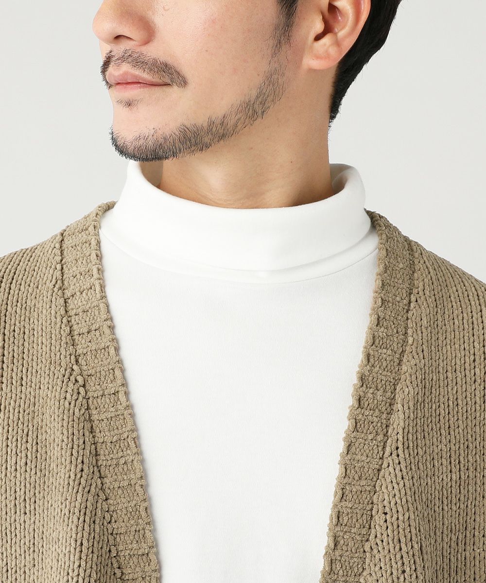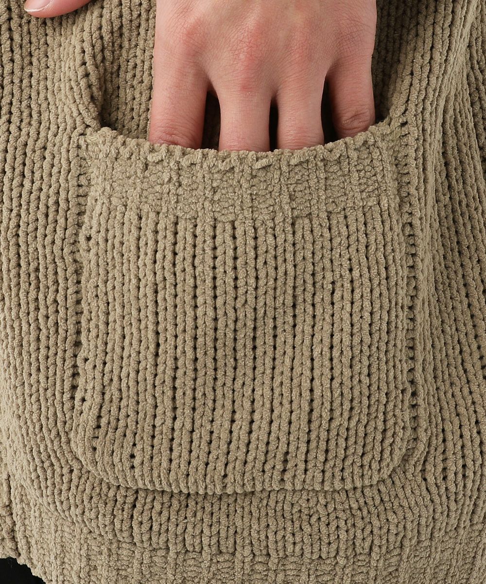 太目の糸でざっくりと編み上げられた、天竺編みのカーディガンです。素材には、マットな色合いとふんわりした肌触りが特徴的なモール糸を採用。保温性にも優れているため、包み込まれているような優しい着心地を実感できます。
