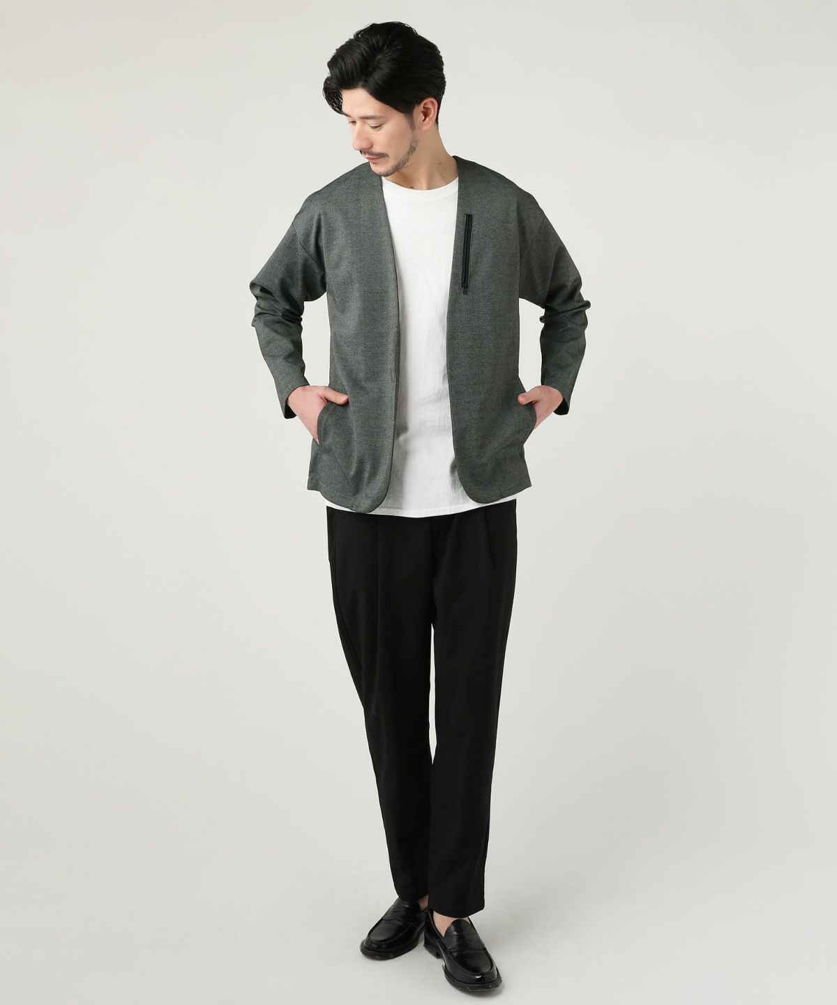 シンプルなデザインでカーディガン感覚で羽織れるカラーレスジャケットです。