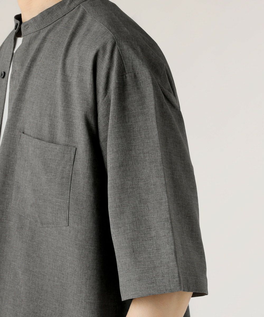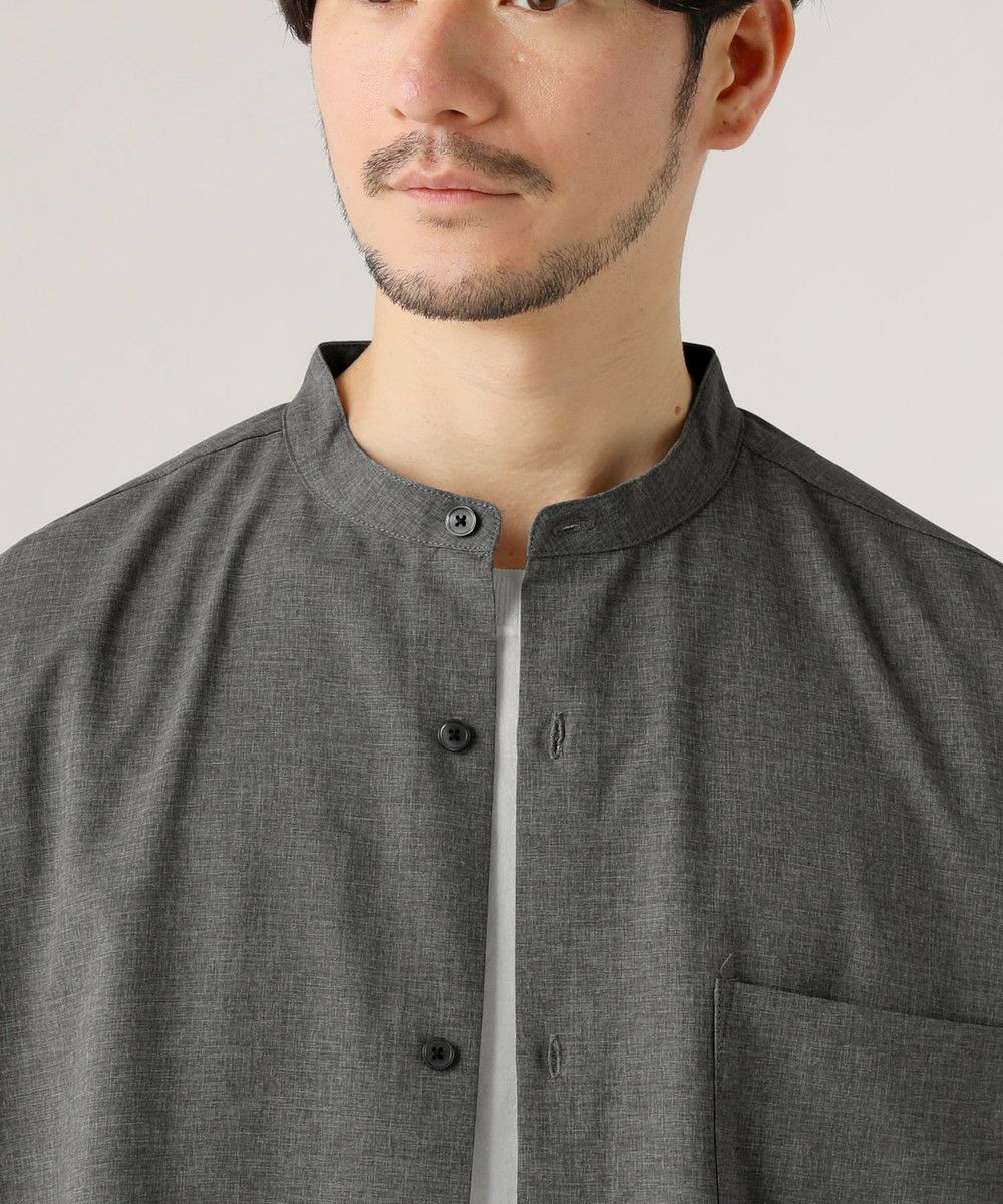バンドカラーでスッキリとした首元と、ゆとりのあるサイジングがこなれた印象をプラス。バンドカラーなのでボタンを開けてもシルエットが崩れにくく、インナーと合わせて羽織り使いもおすすめです。