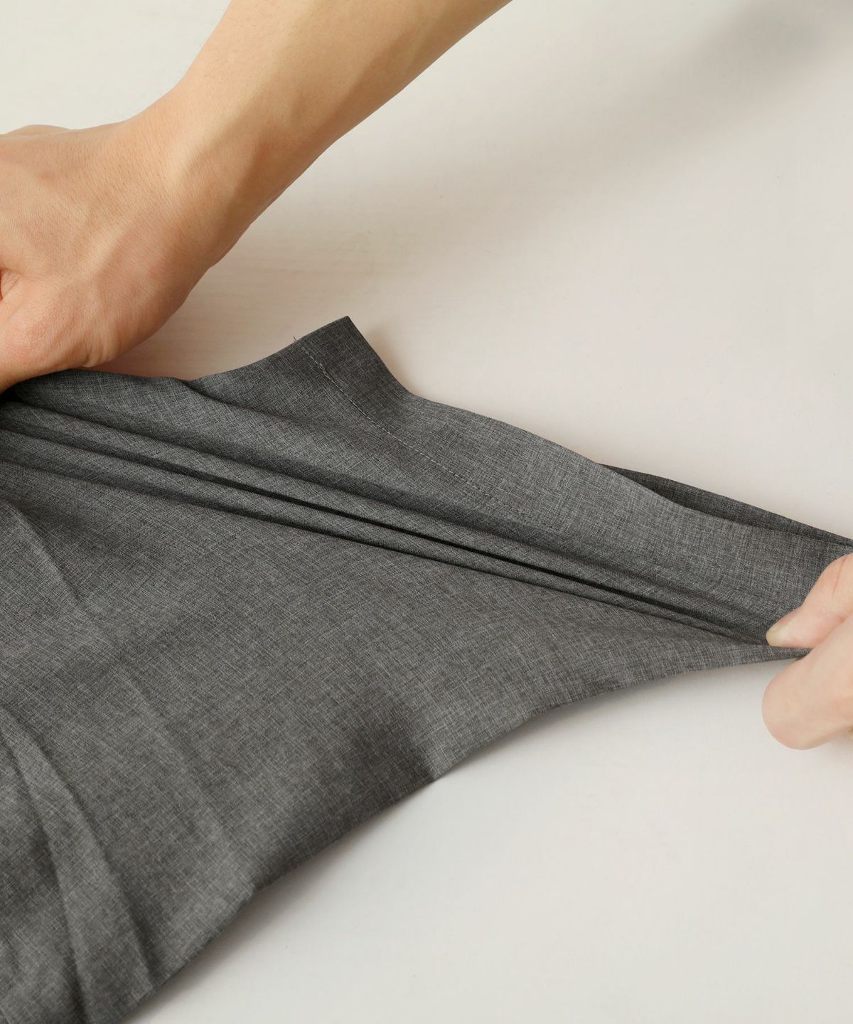 ドライな肌触りなので汗ばむ季節にも肌にまとわりつきにくく、暑い季節もサラッと着こなせます。ポリエステル由来の速乾性でお洗濯後もサッと乾きやすく、シワになりにくい素材のためご家庭でのお手入れも簡単。薄手で軽量でありながらも合成繊維由来のしっかりとした耐久性を持っており、ワンシーズンだけでなく長期的に活躍します。