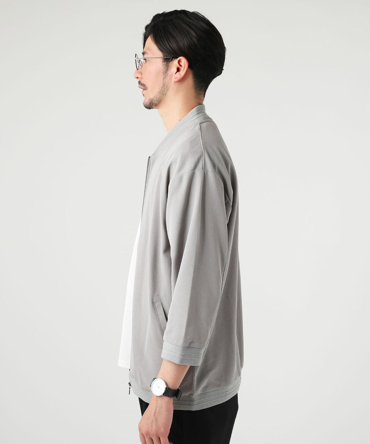 グレー、ネイビー、ブラックのベーシックなカラー展開で、インナーやボトムスとの組み合わせを選ばない汎用性の高いアイテムです。