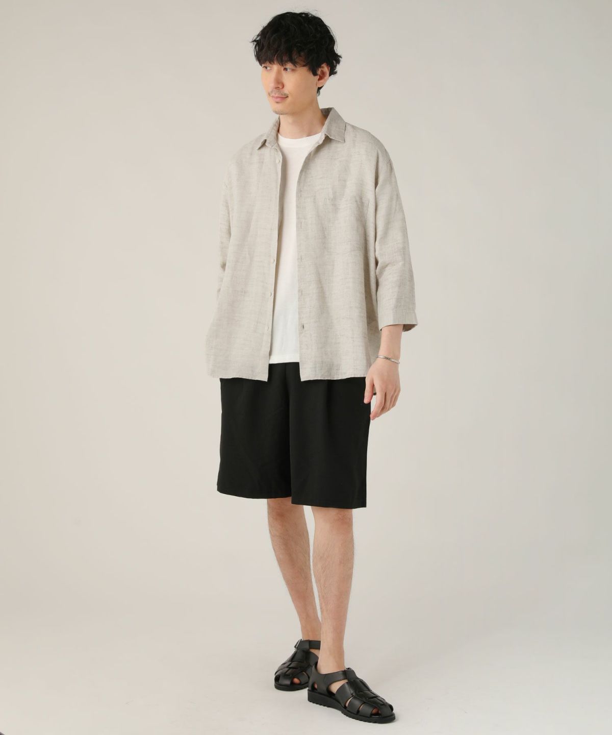 涼し気な印象を作る麻100%の七分袖シャツです。