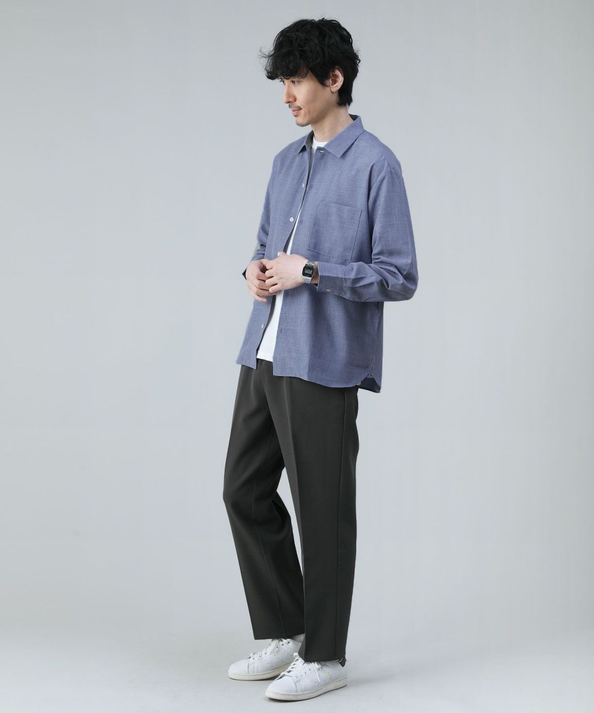 リネンライクな生地感と軽やかな着心地が特長の日本製長袖シャツです。