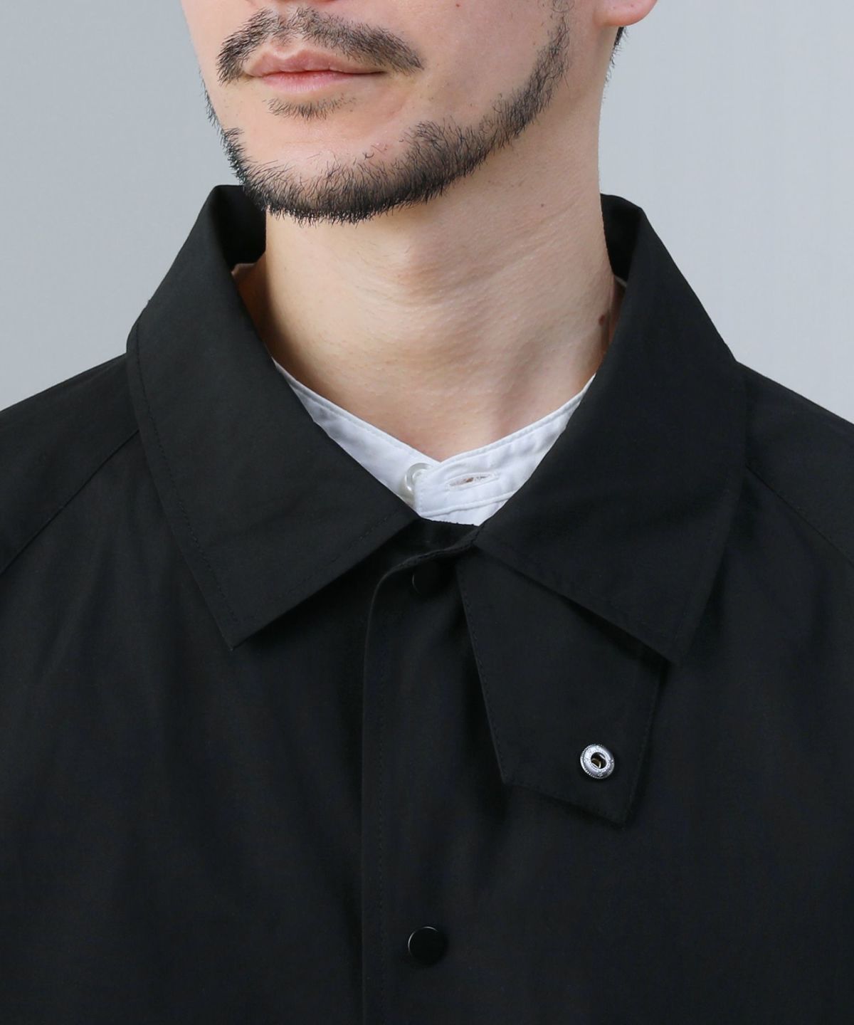 ゆとりのある身幅や肩回りの動かしやすいラグランスリーブデザインによって、窮屈感のないゆったりとした着心地。そのまま羽織ってカジュアルに着こなすのもいいですが、すべて閉めて首元のチンストラップを付ければキレイめな印象を与えることもできます。