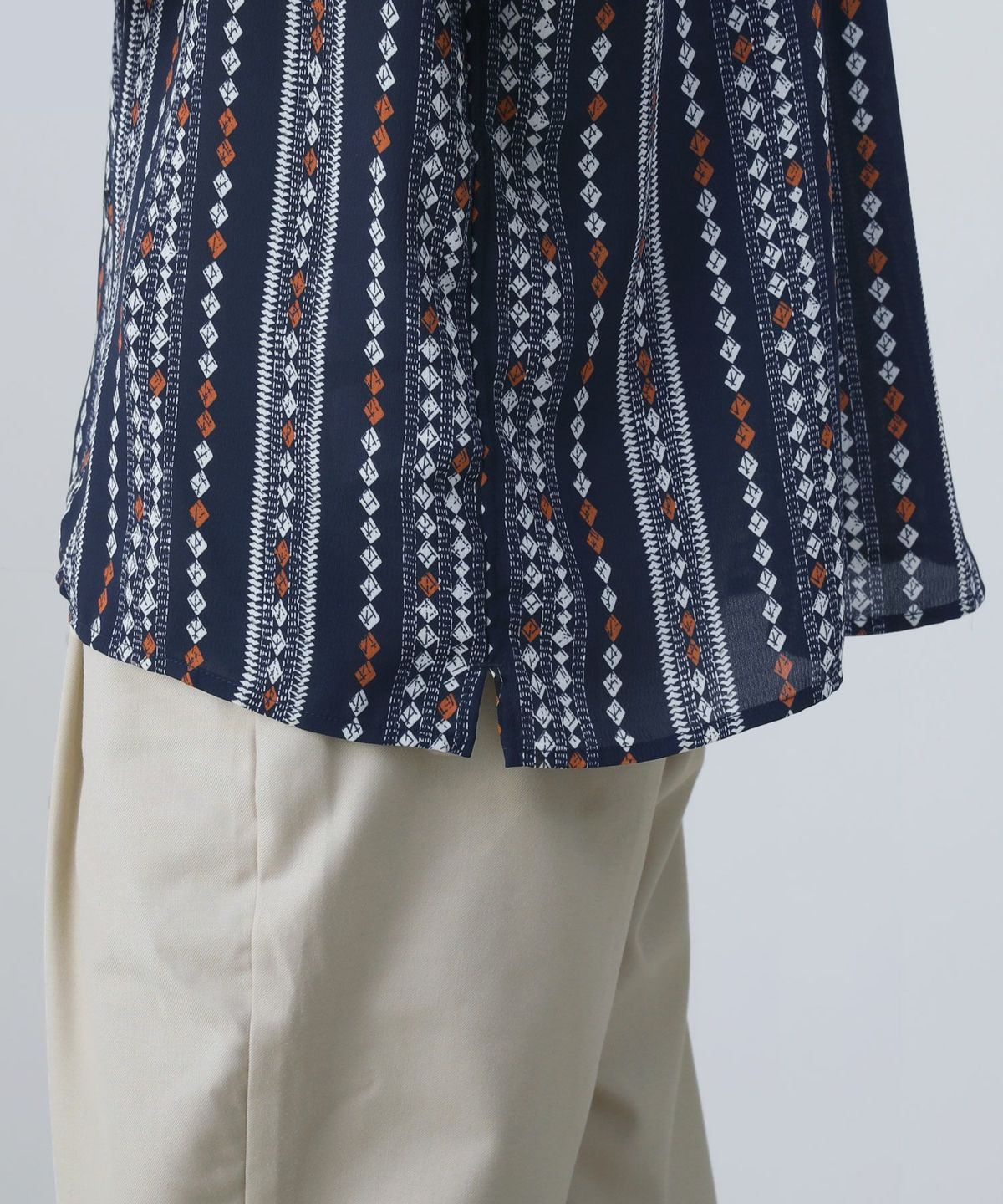 インパクトたっぷりなレトロ柄が目を引く半袖シャツです。