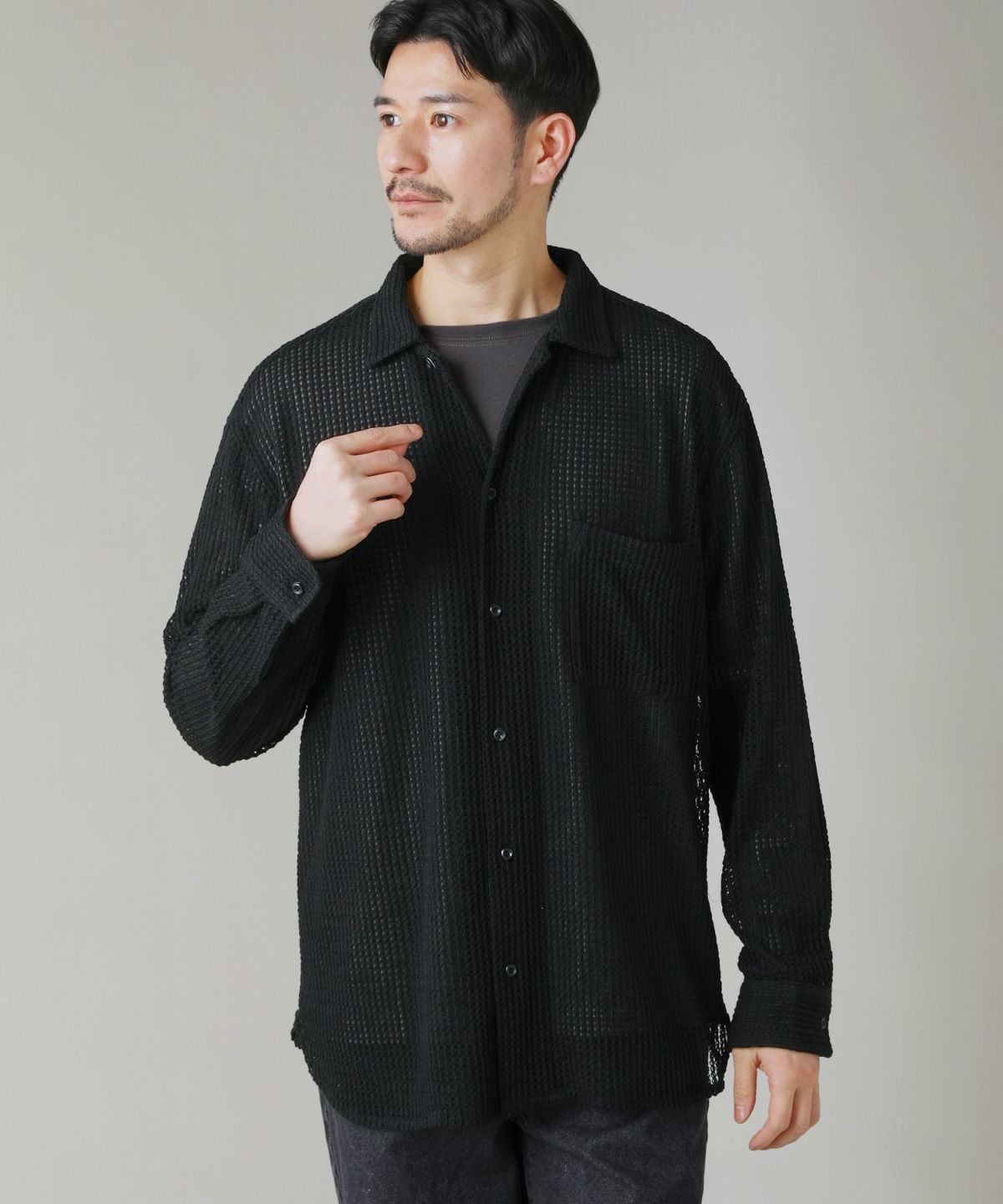 ゆったりとしたシルエットとドロップショルダー、前後差のある着丈がリラックス感溢れる一着。透け感たっぷりに仕上がっているため、フロントを締めたスタンダードな着こなしでも簡単にレイヤードスタイルを楽しむことができます。また、羽織りとして着用すれば一気に抜け感のあるコーデに仕上がり、一枚二役で様々なコーデに使えるアイテムです。