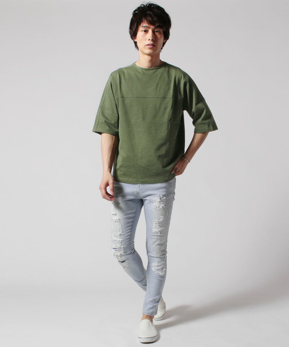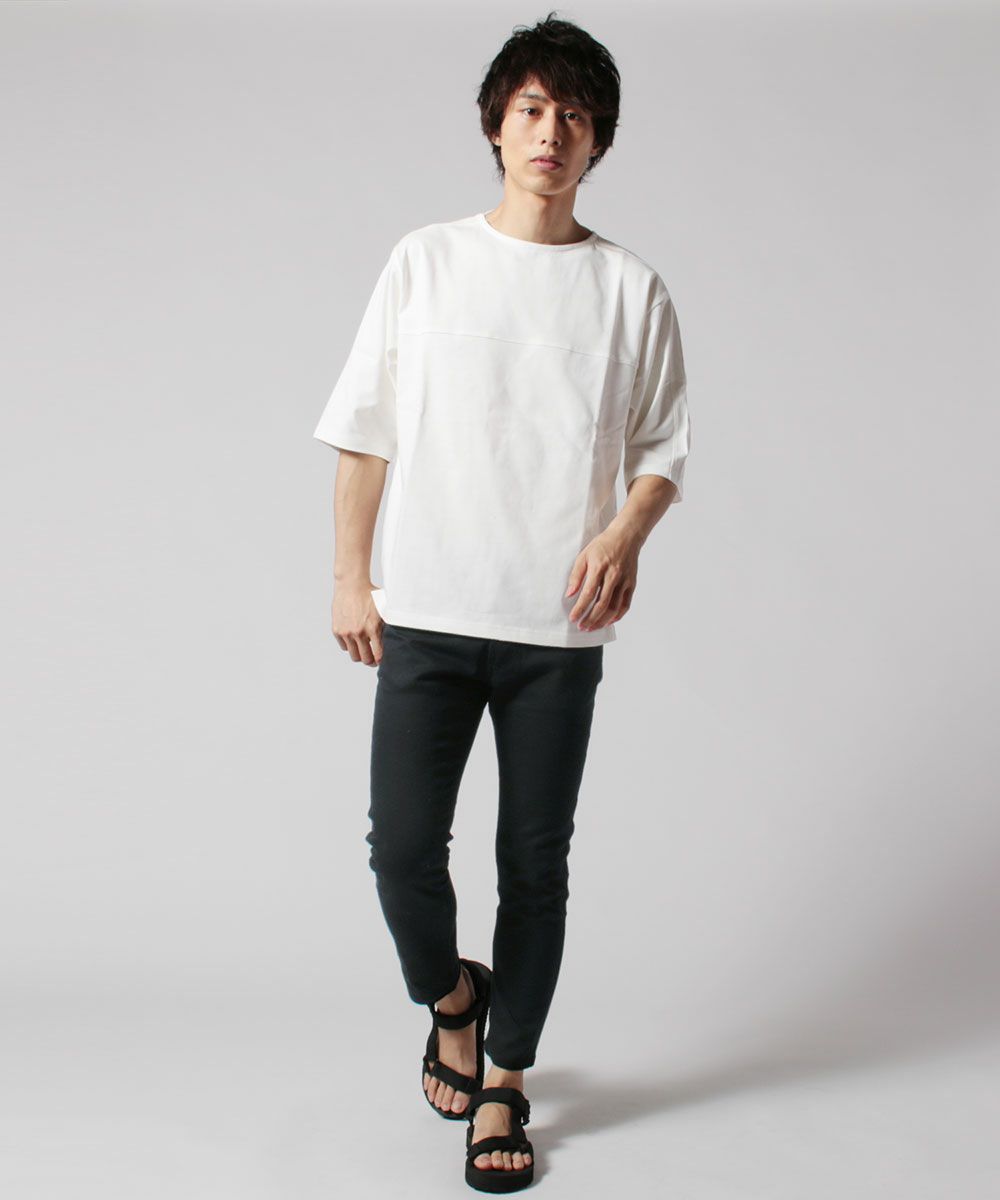 国内生産のUpscape Audienceから、ソフトな風合いでハリ感のある優しい肌触りのビックシルエットTシャツが登場。ボディとショルダー部分のさり気ない切り替えがお洒落なアクセントになっています。特殊な構造をした糸で編まれ、毛玉ができにくくドライタッチな生地に仕上がっているため、快適な着心地をキープしてお召しいただけます。