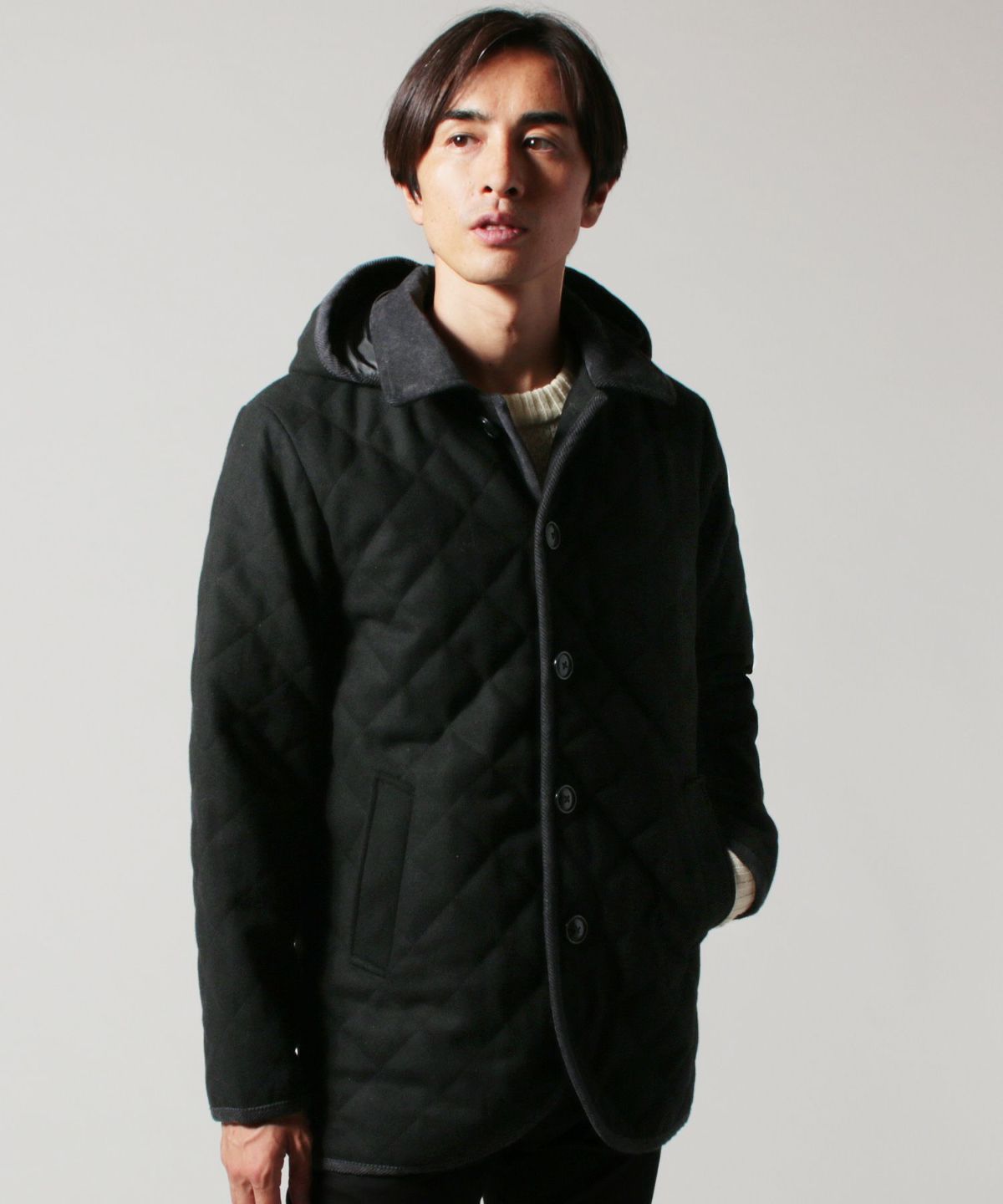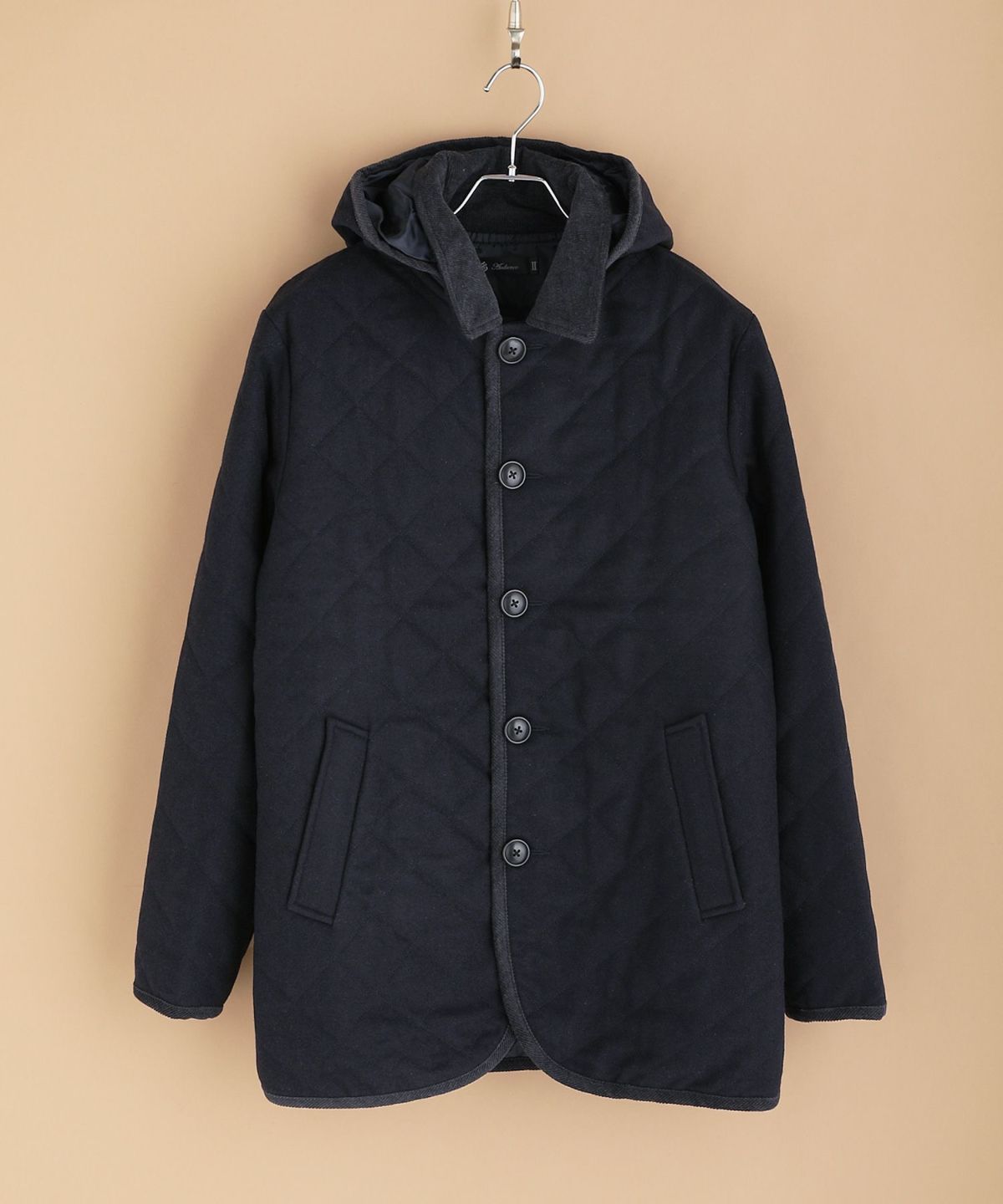 610gウールメルトン脱着フード付きサーモライト中綿キルティングジャケット