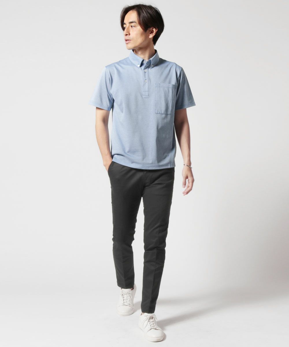 日本製30コーマ天竺パイピングボタンダウン半袖ポロシャツ