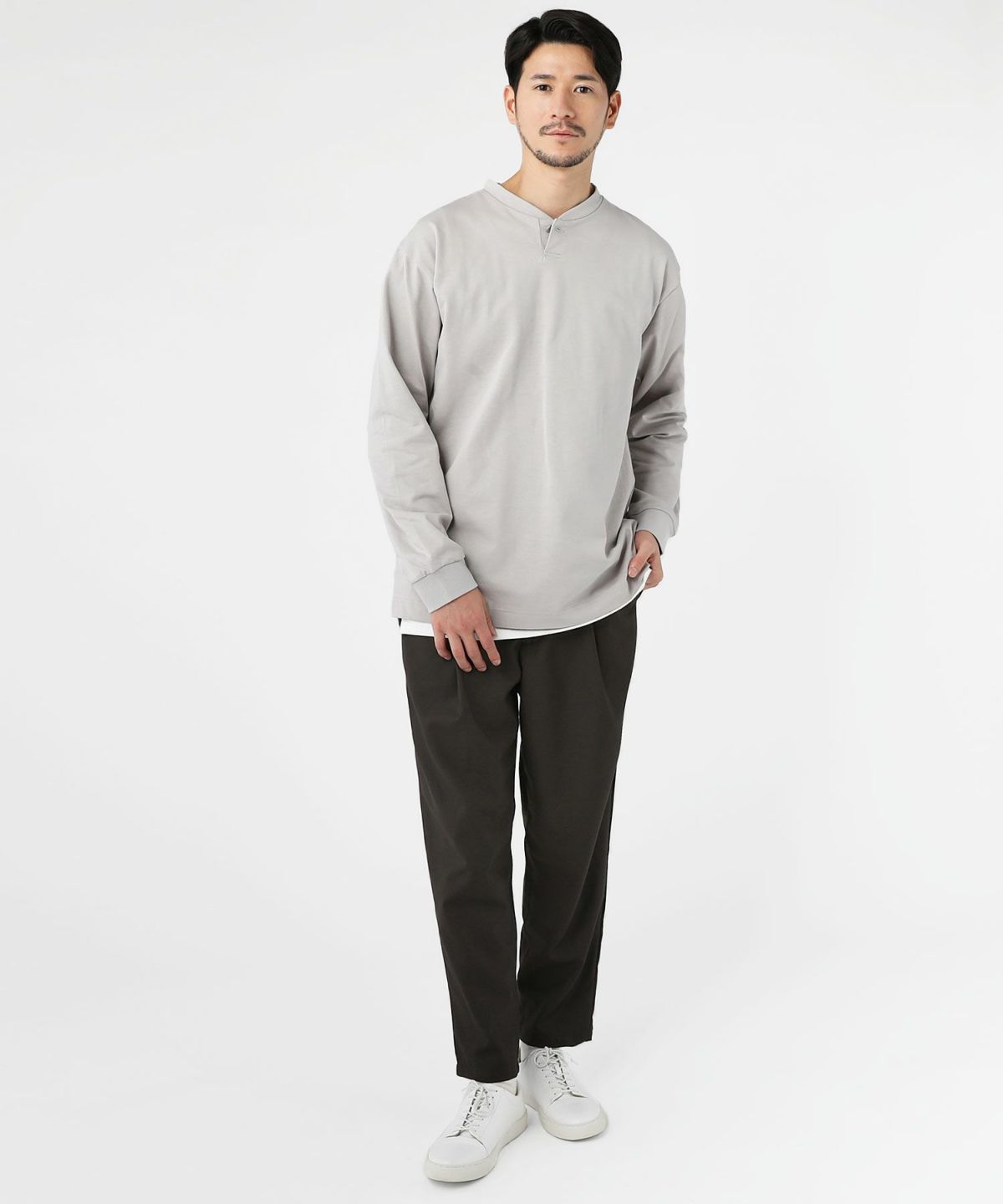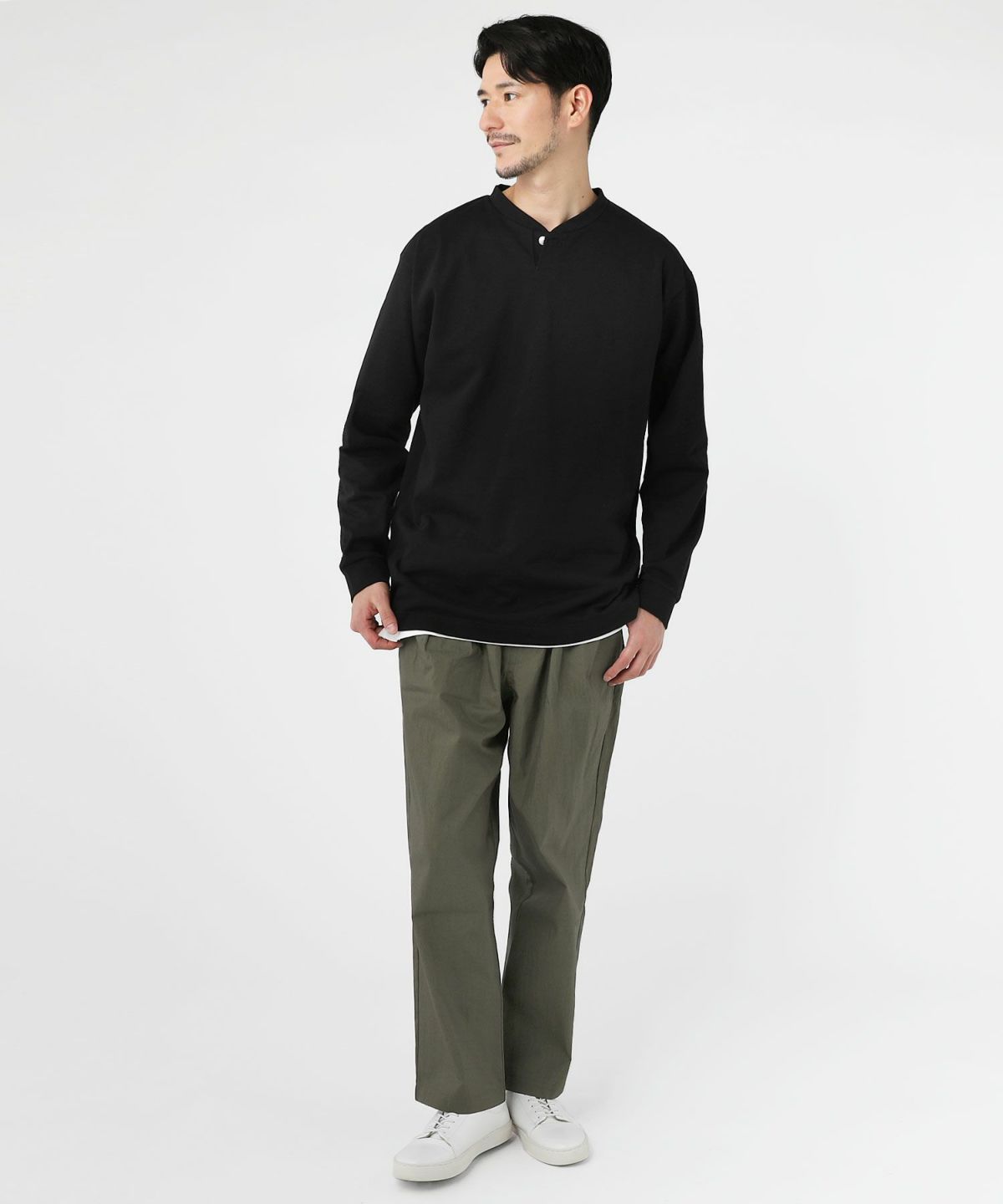 日本製コーマ天竺 VネックヘンリーTシャツ