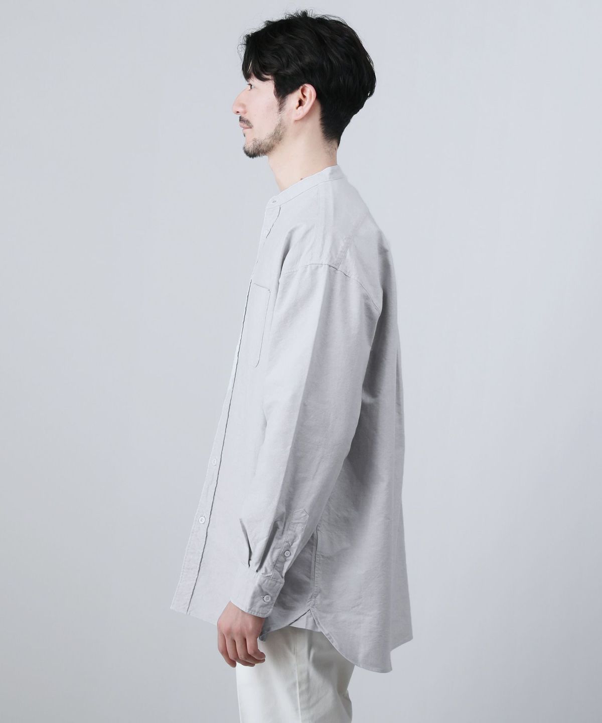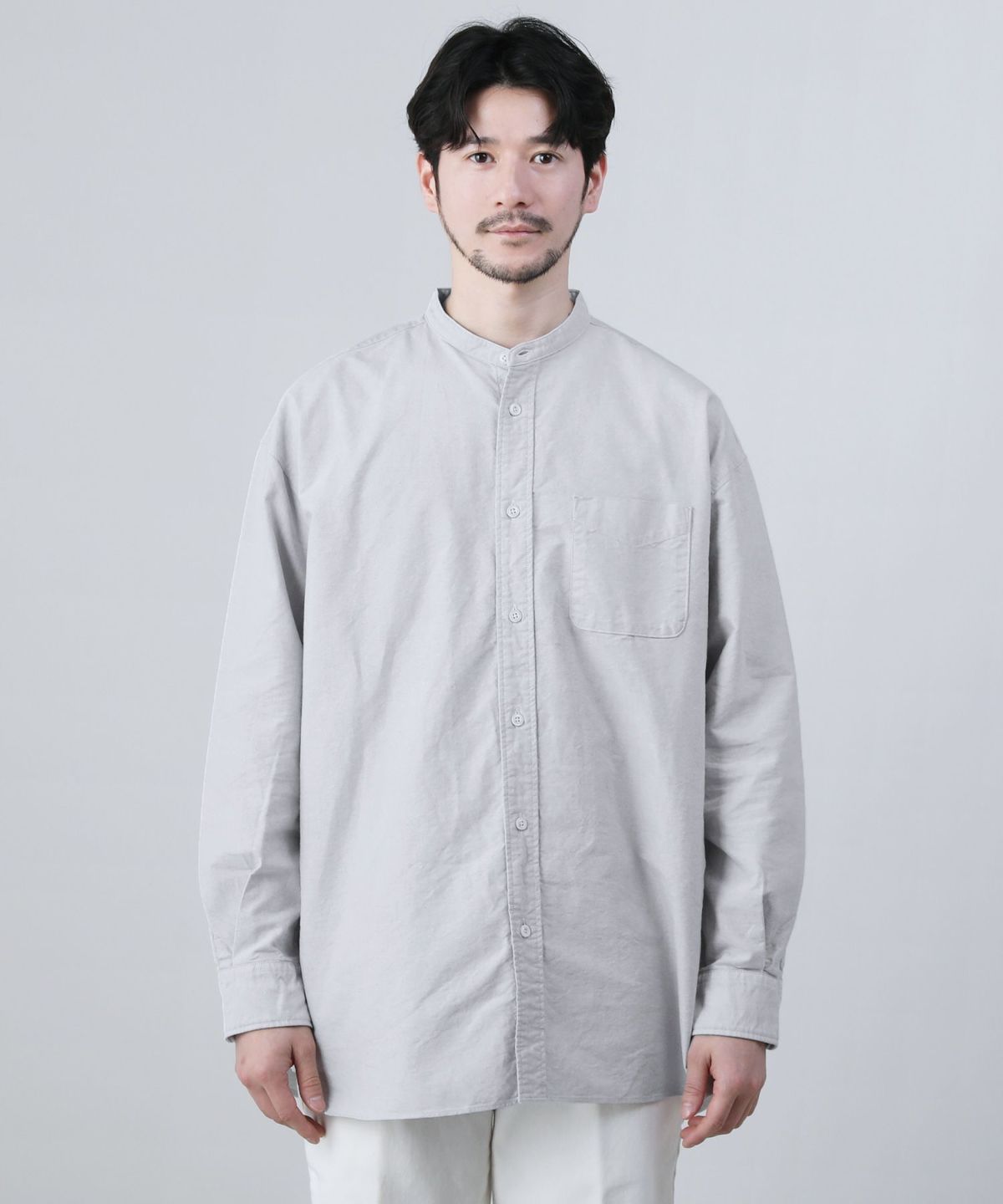 日本製6オンスオックスフォードバンドカラー長袖ボクシーシャツ
