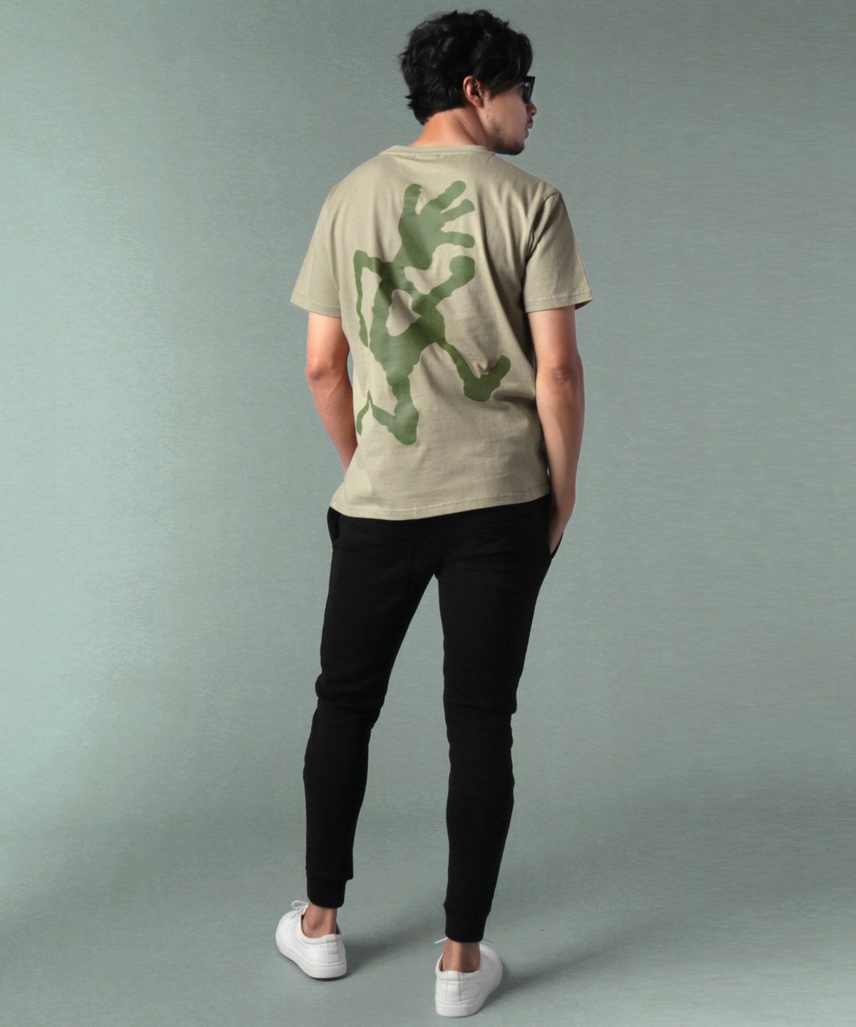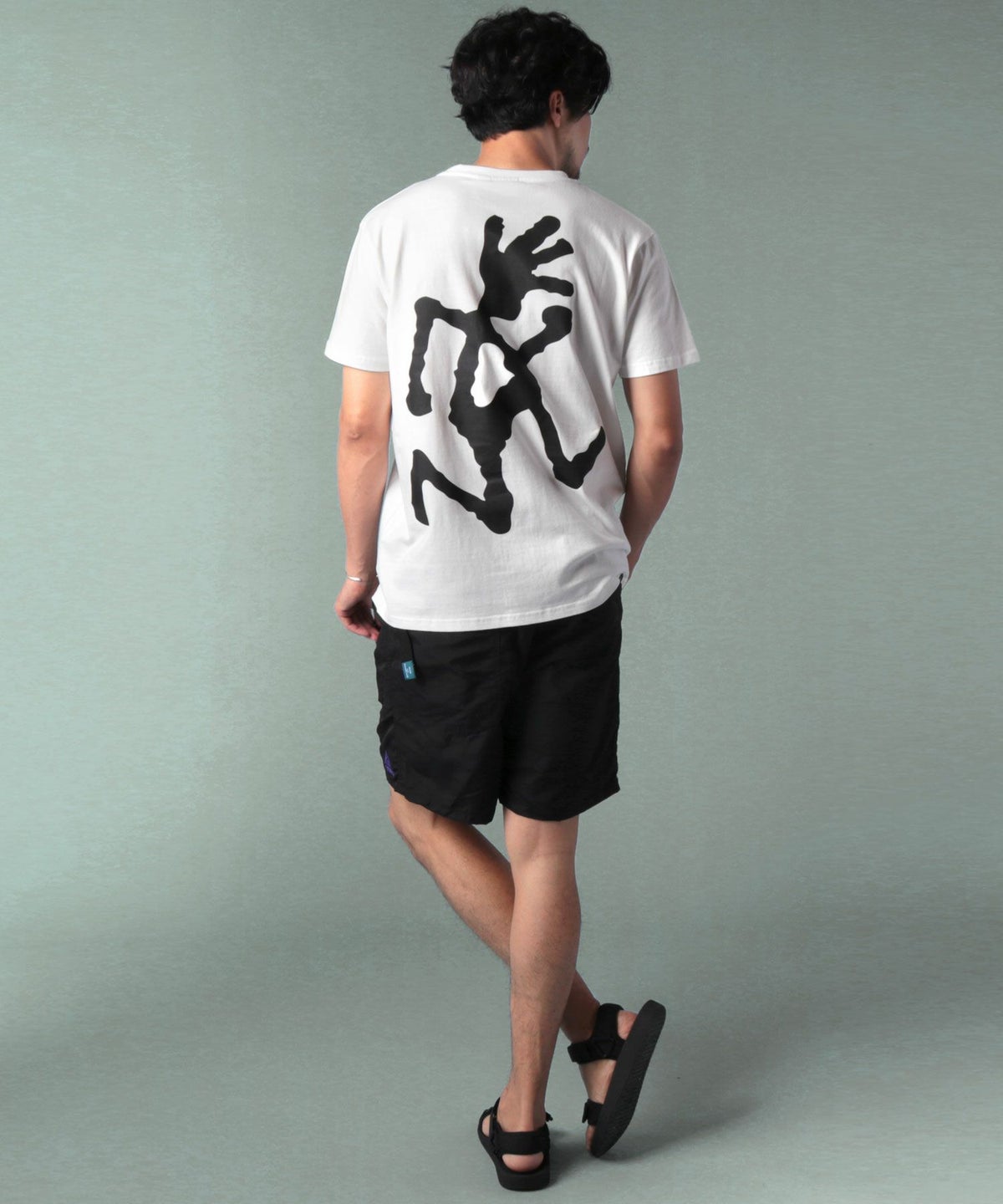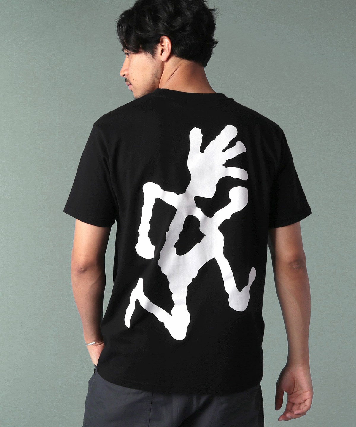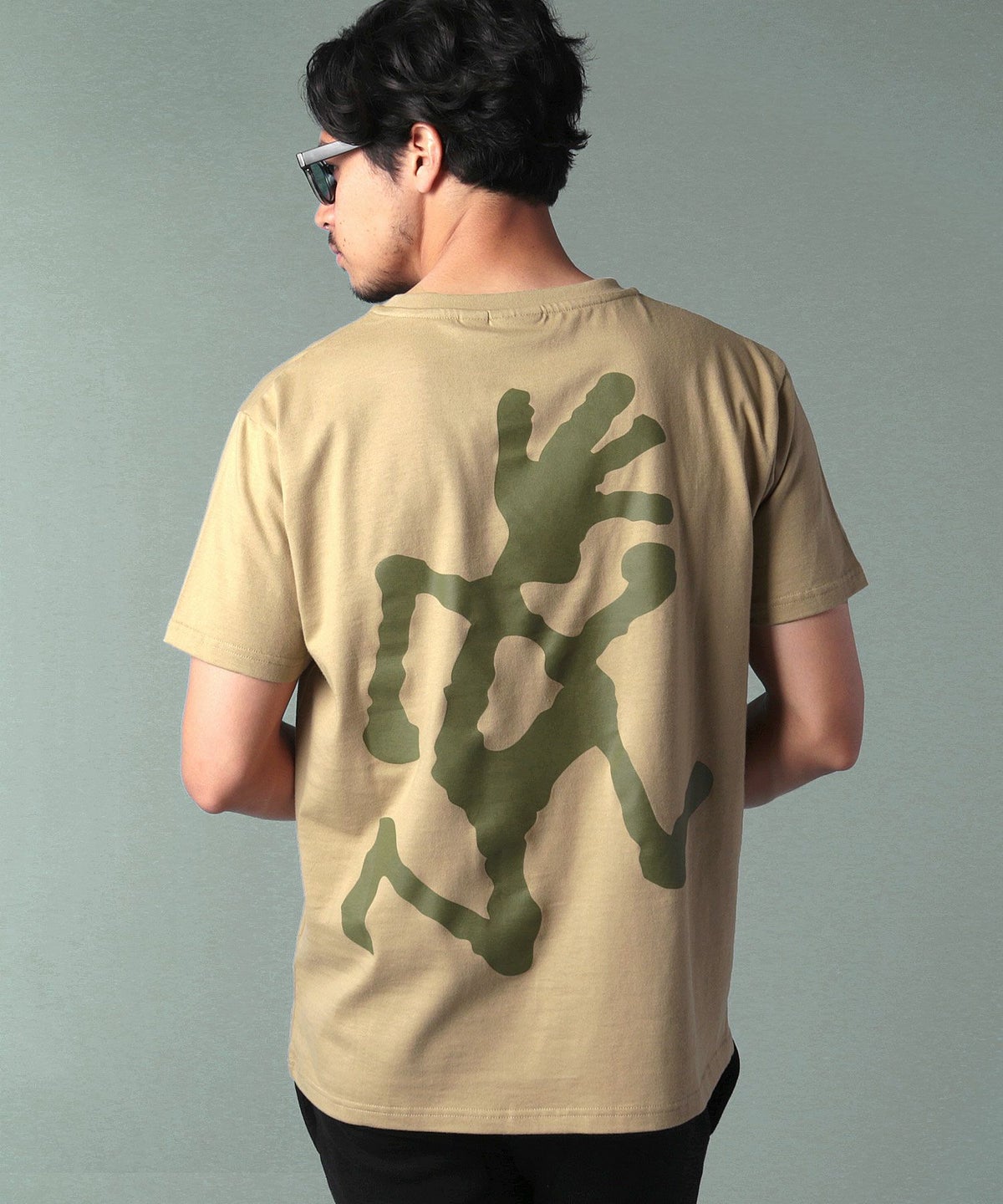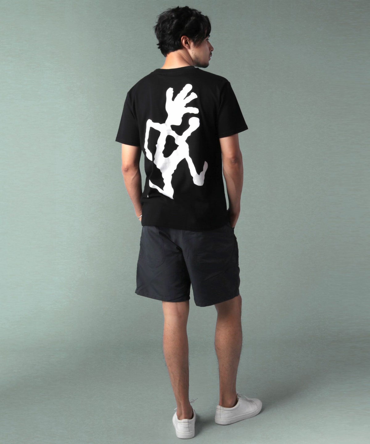 ランニングマンワンポイント刺繍/バックプリント半袖Tシャツ