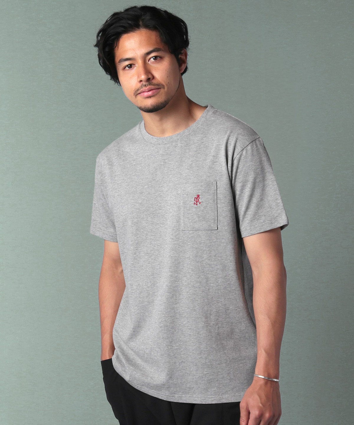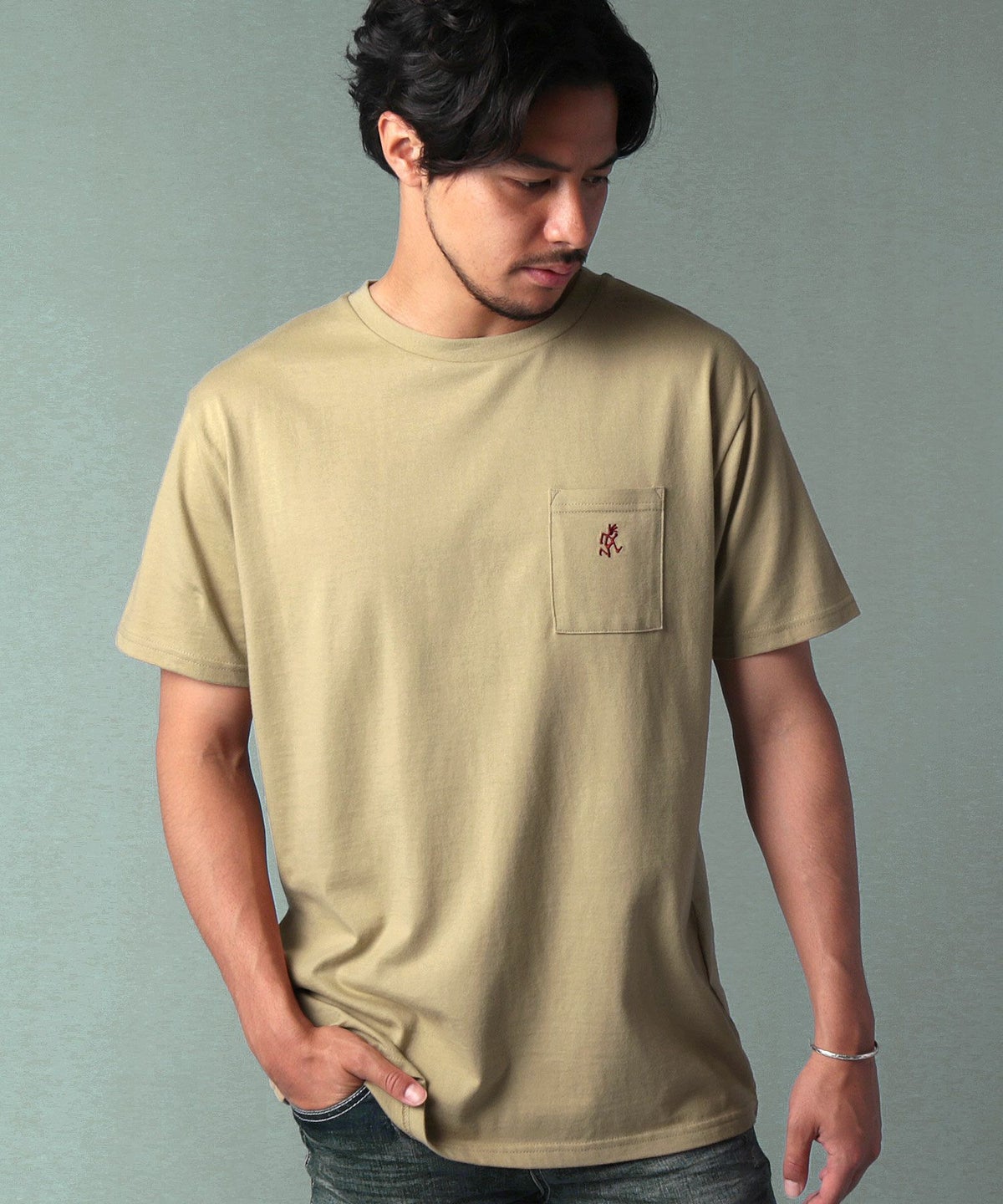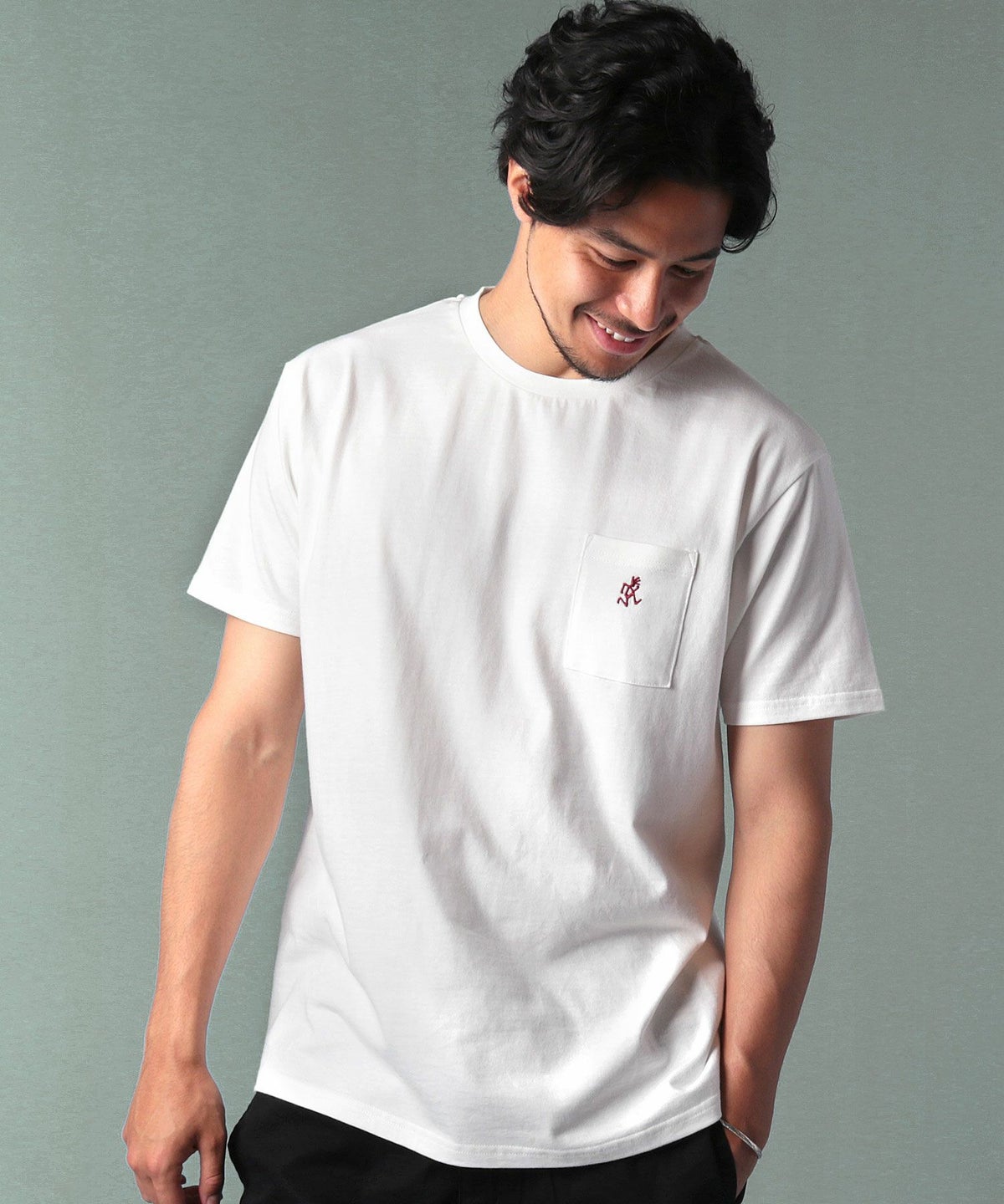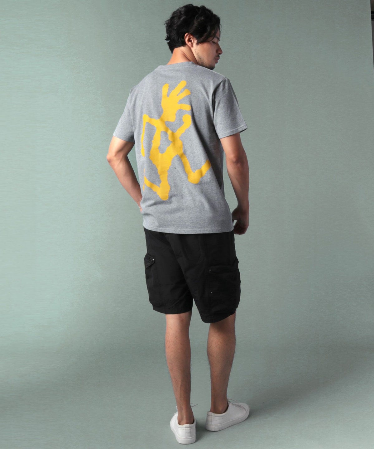 ランニングマンワンポイント刺繍/バックプリント半袖Tシャツ