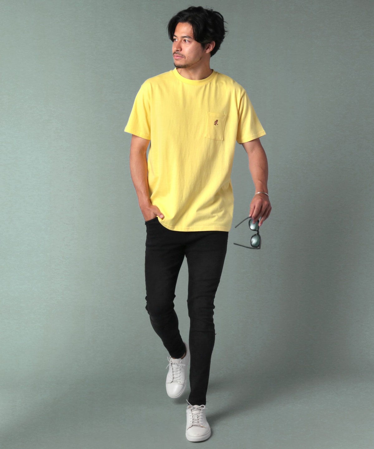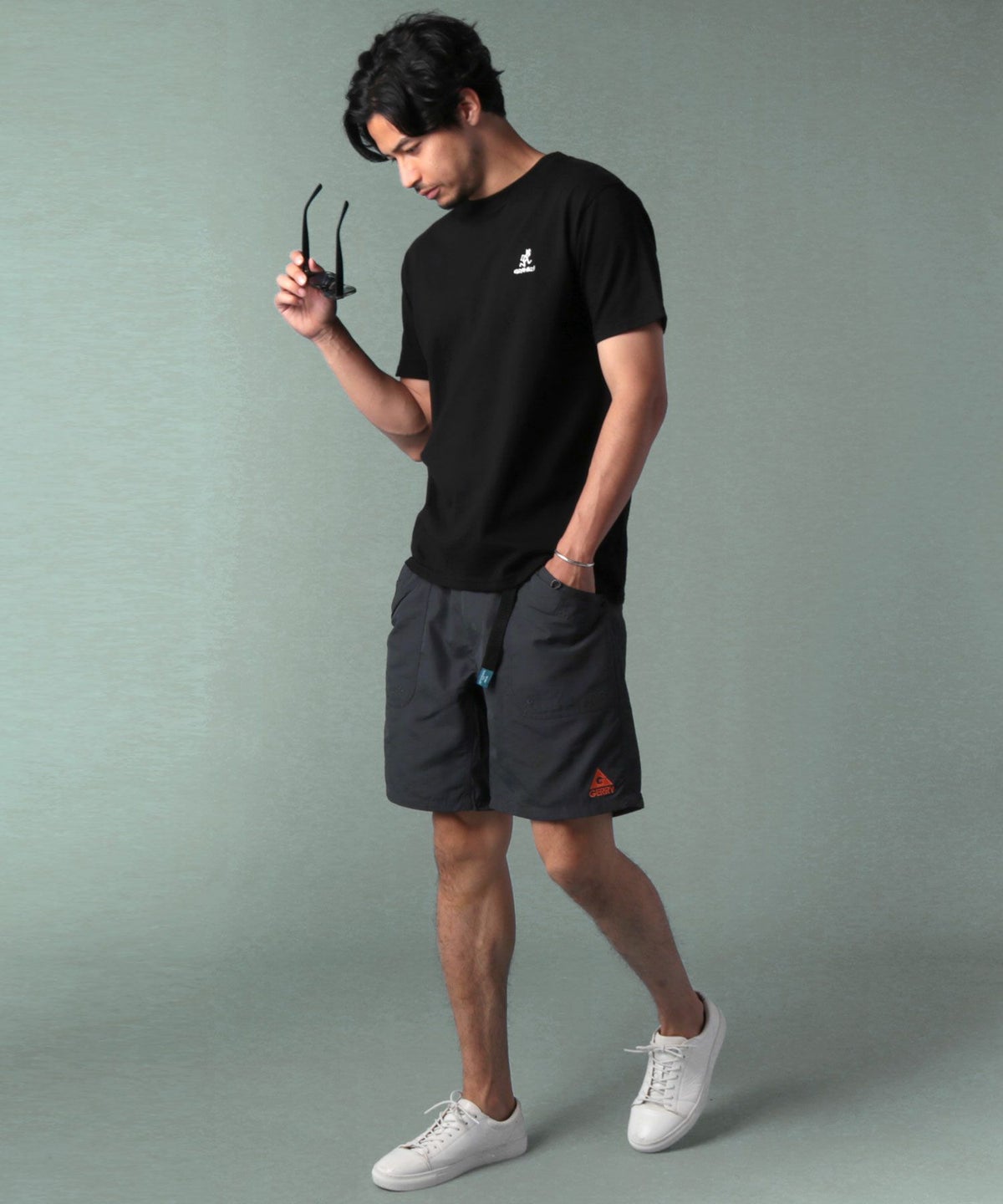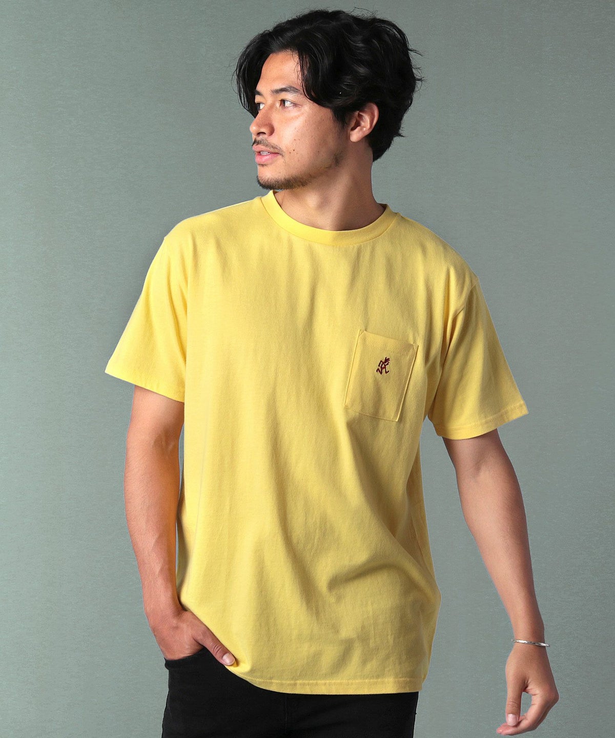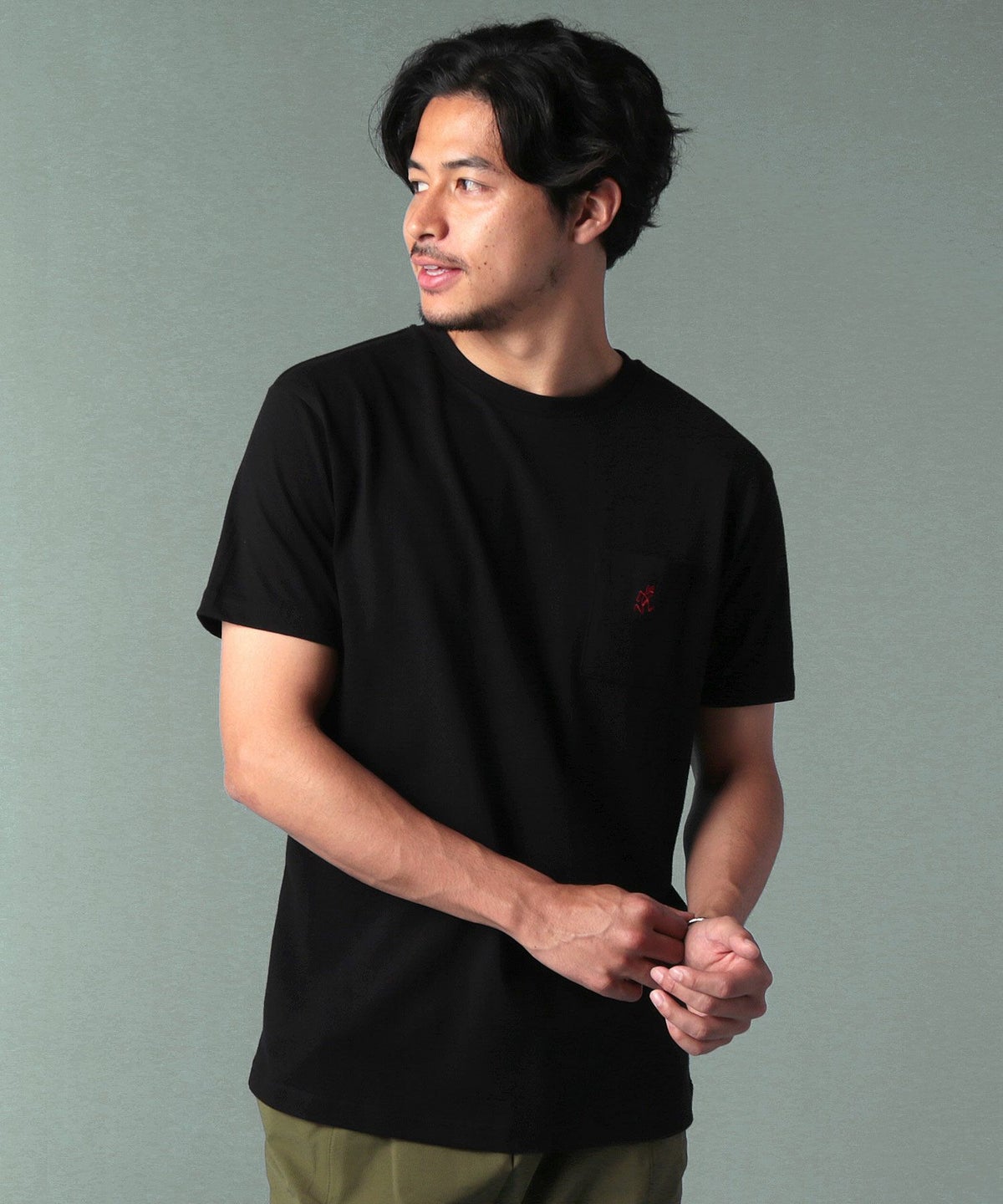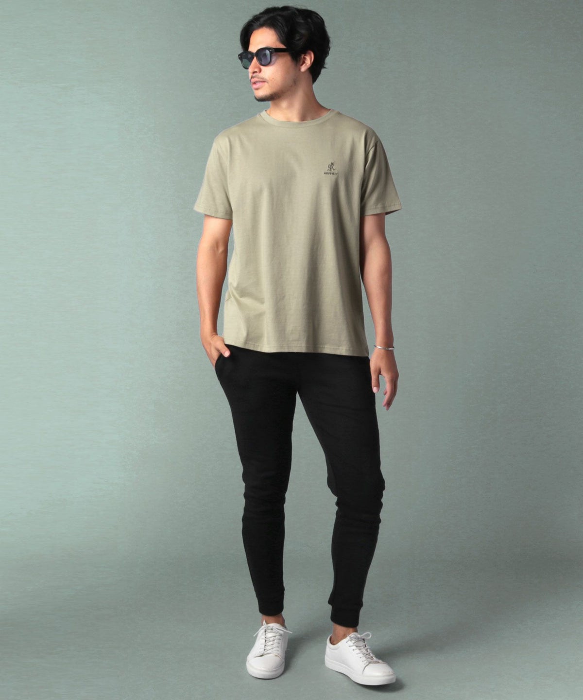 ランニングマンワンポイント刺繍/バックプリント半袖Tシャツ