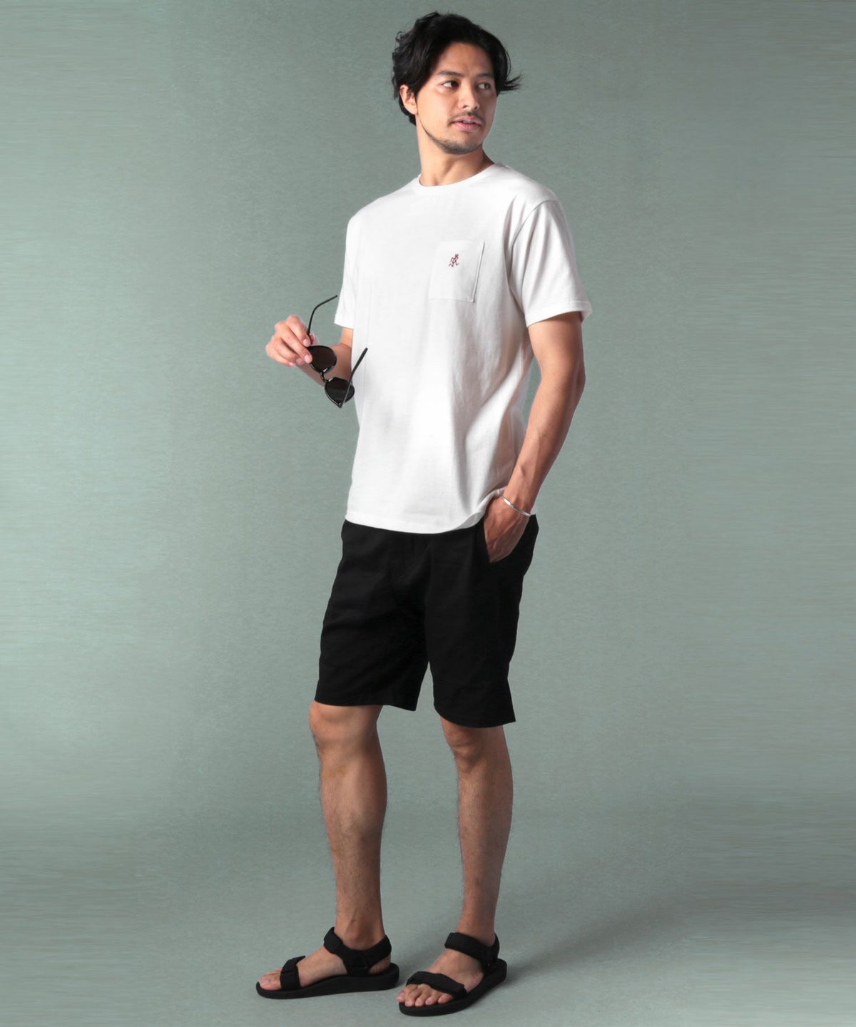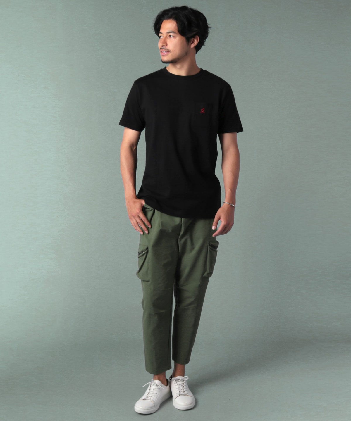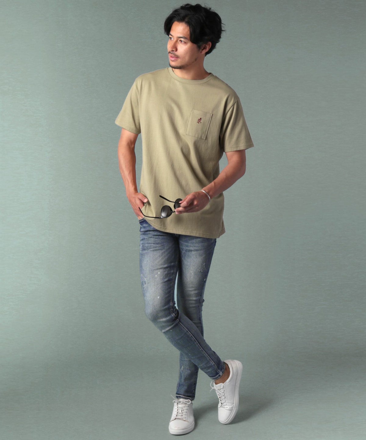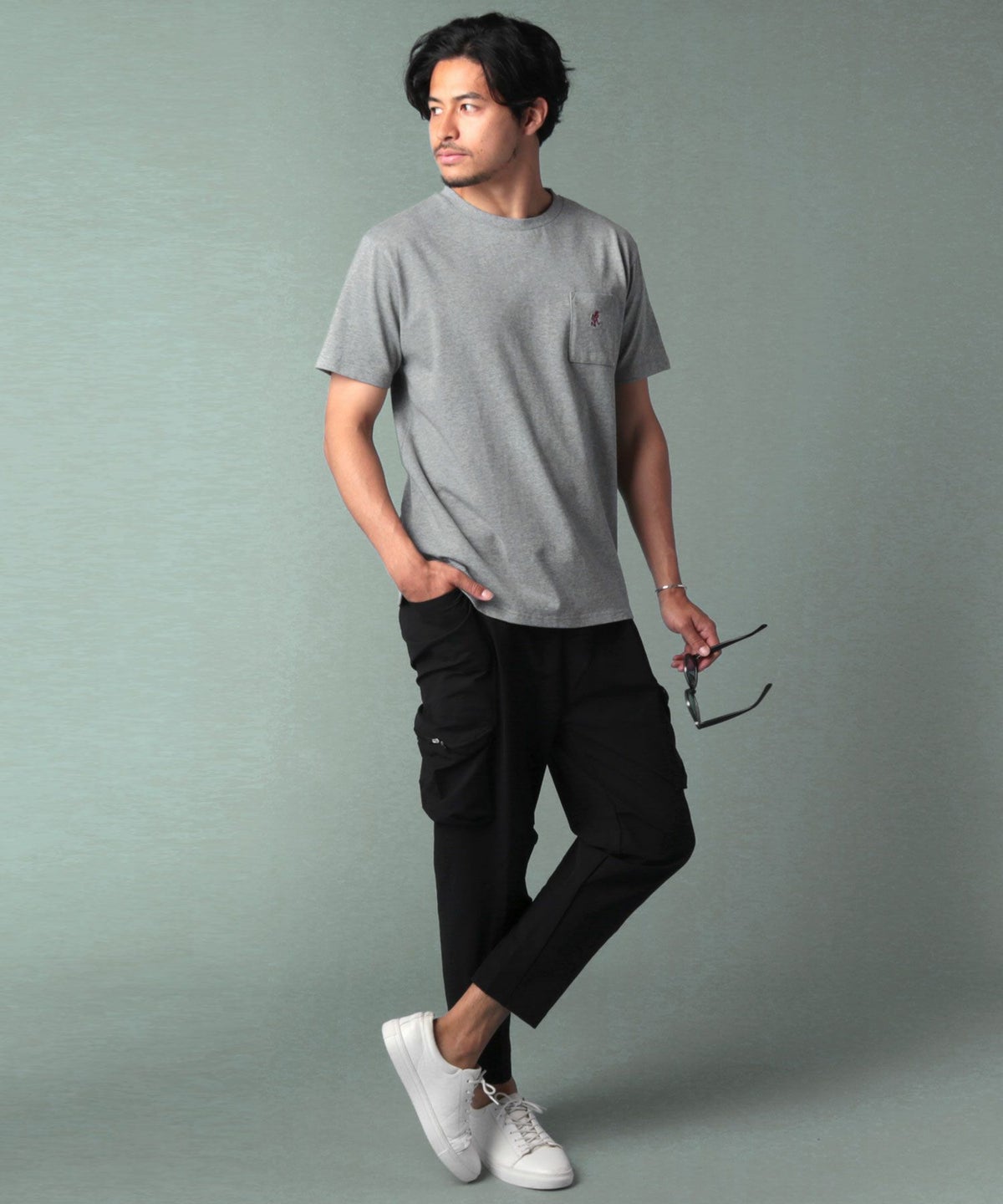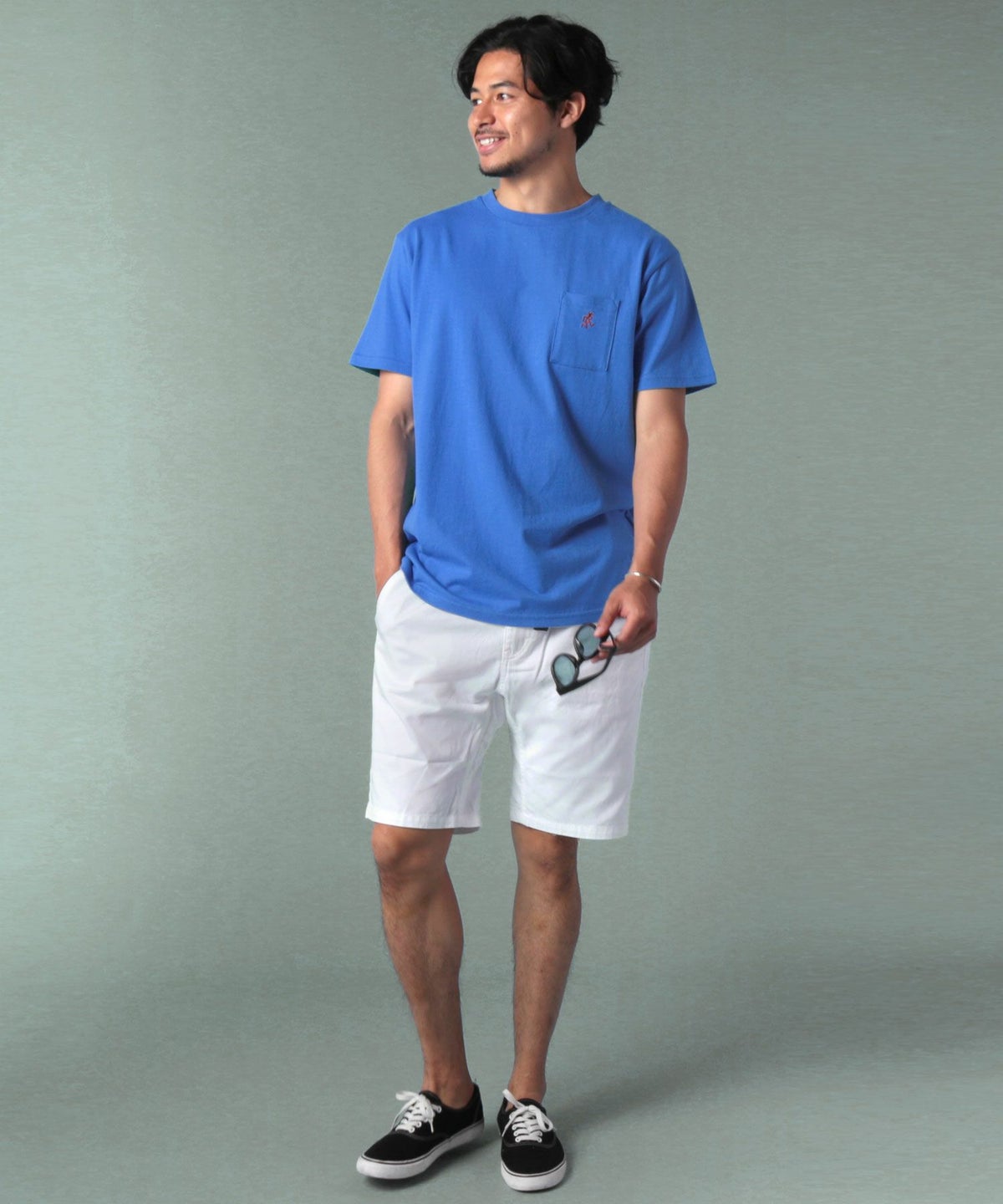ランニングマンワンポイント刺繍/バックプリント半袖Tシャツ