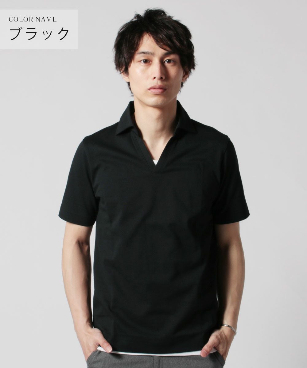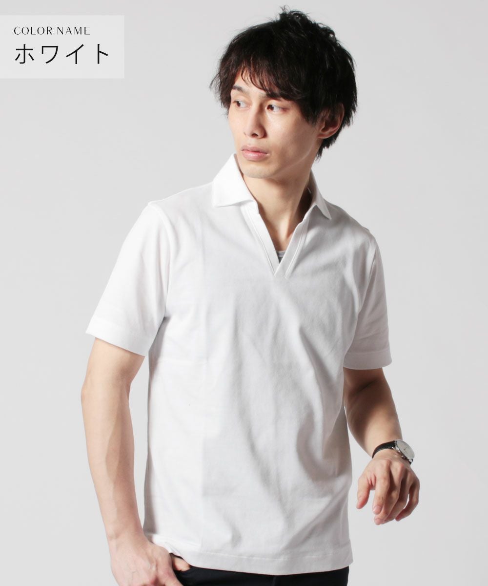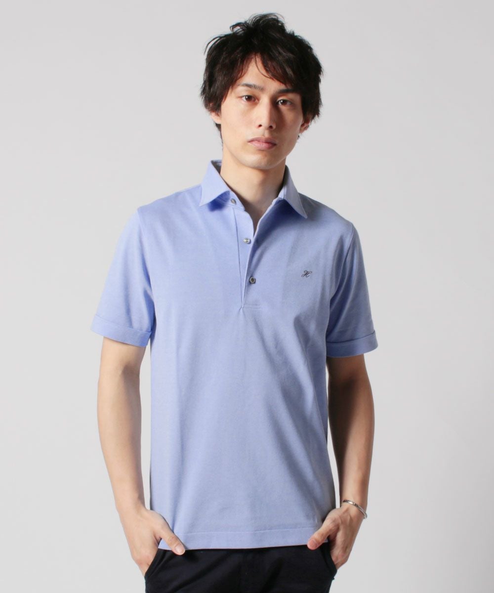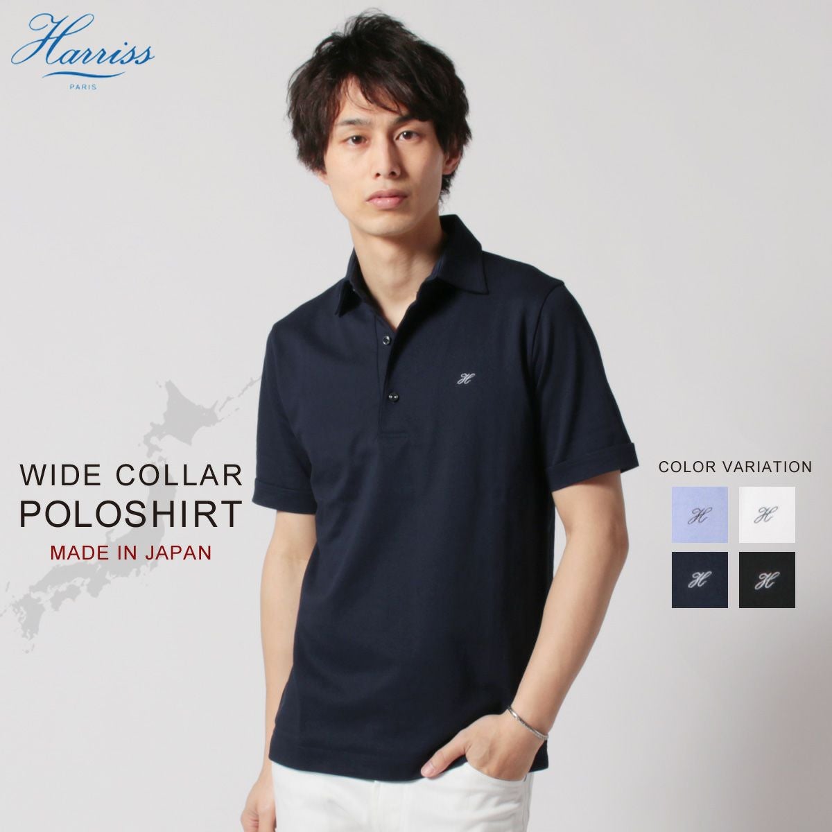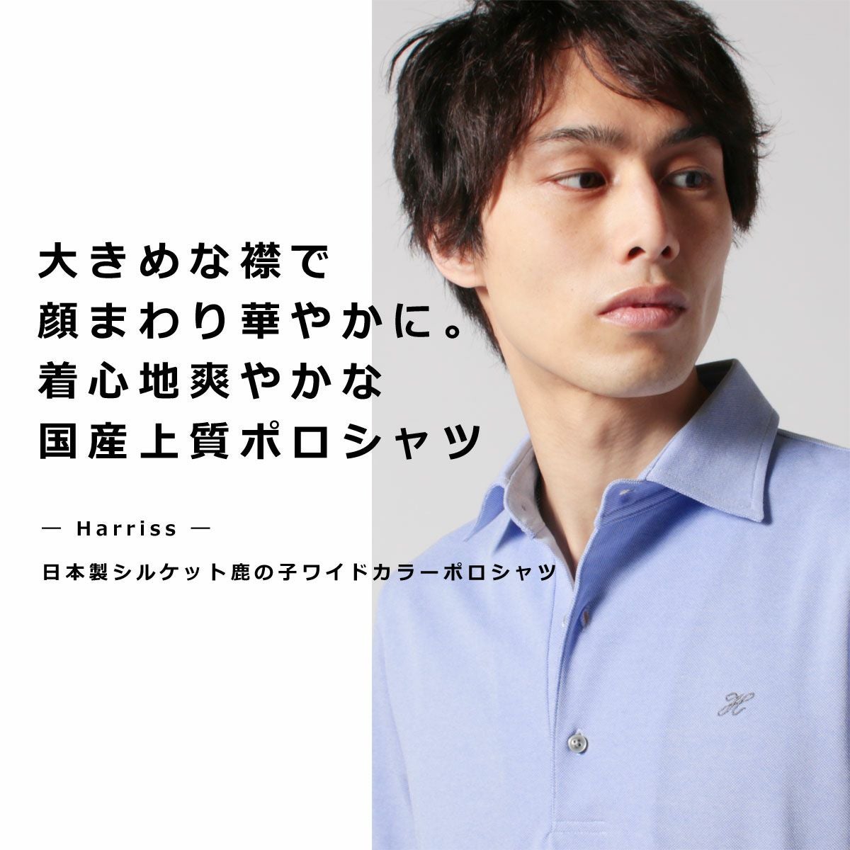日本製TCシルケット鹿の子ワイドカラーポロシャツ