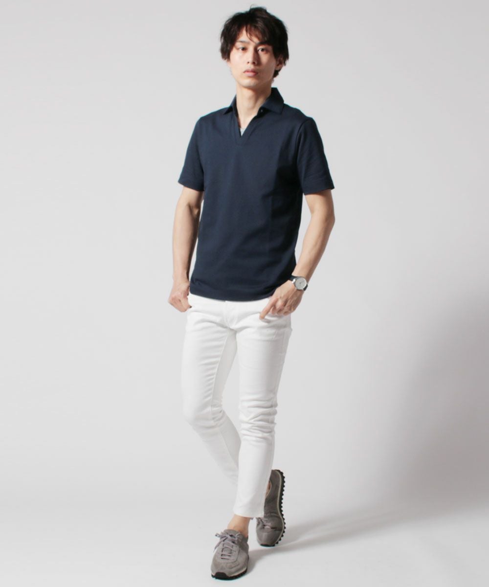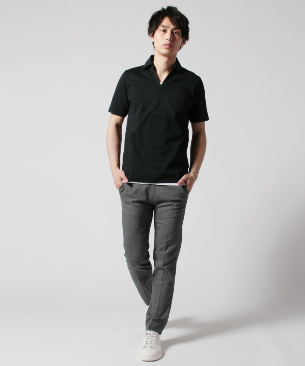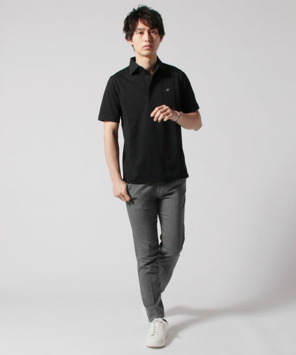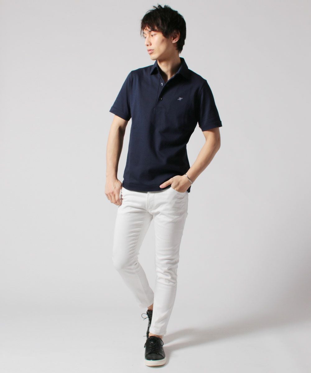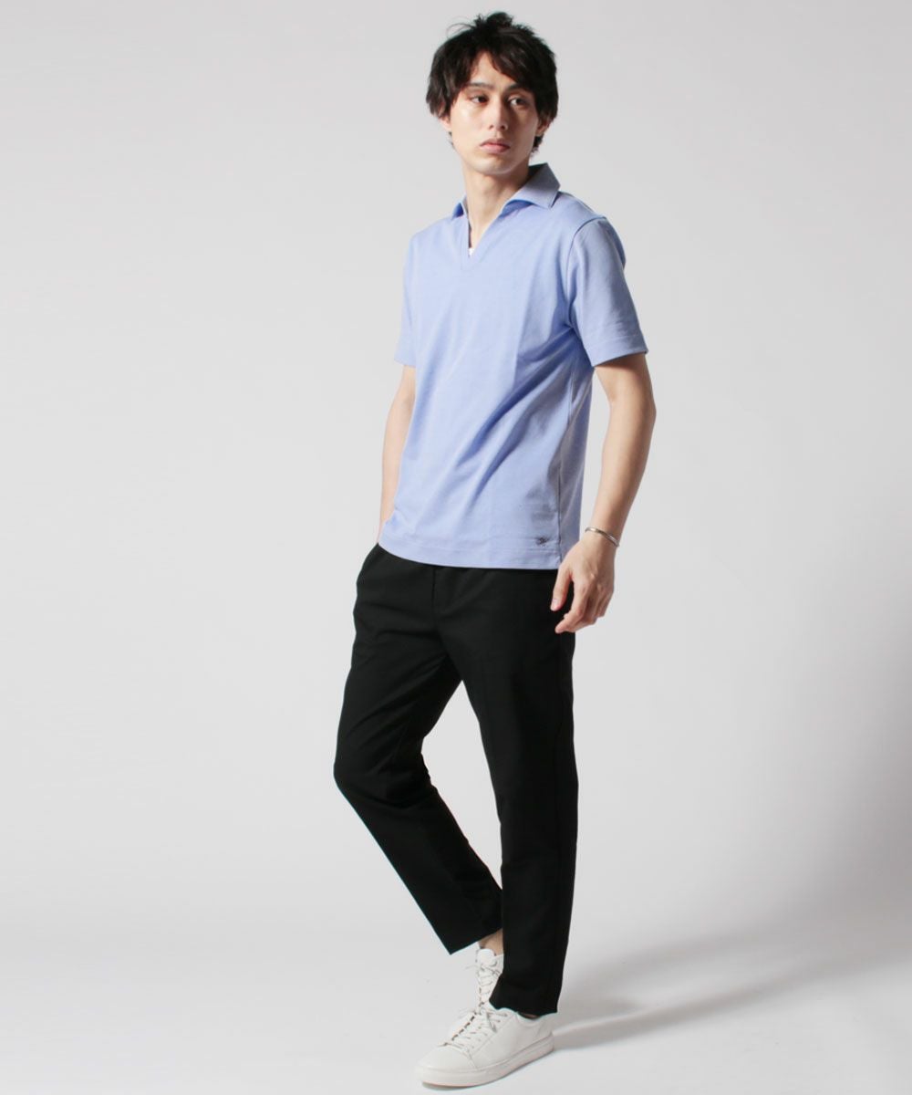 日本製TCシルケット鹿の子ワイドカラーポロシャツ