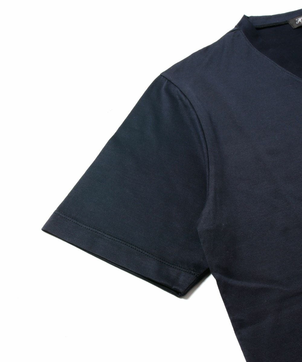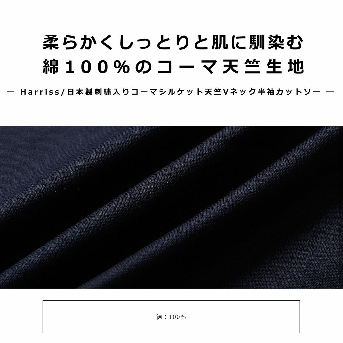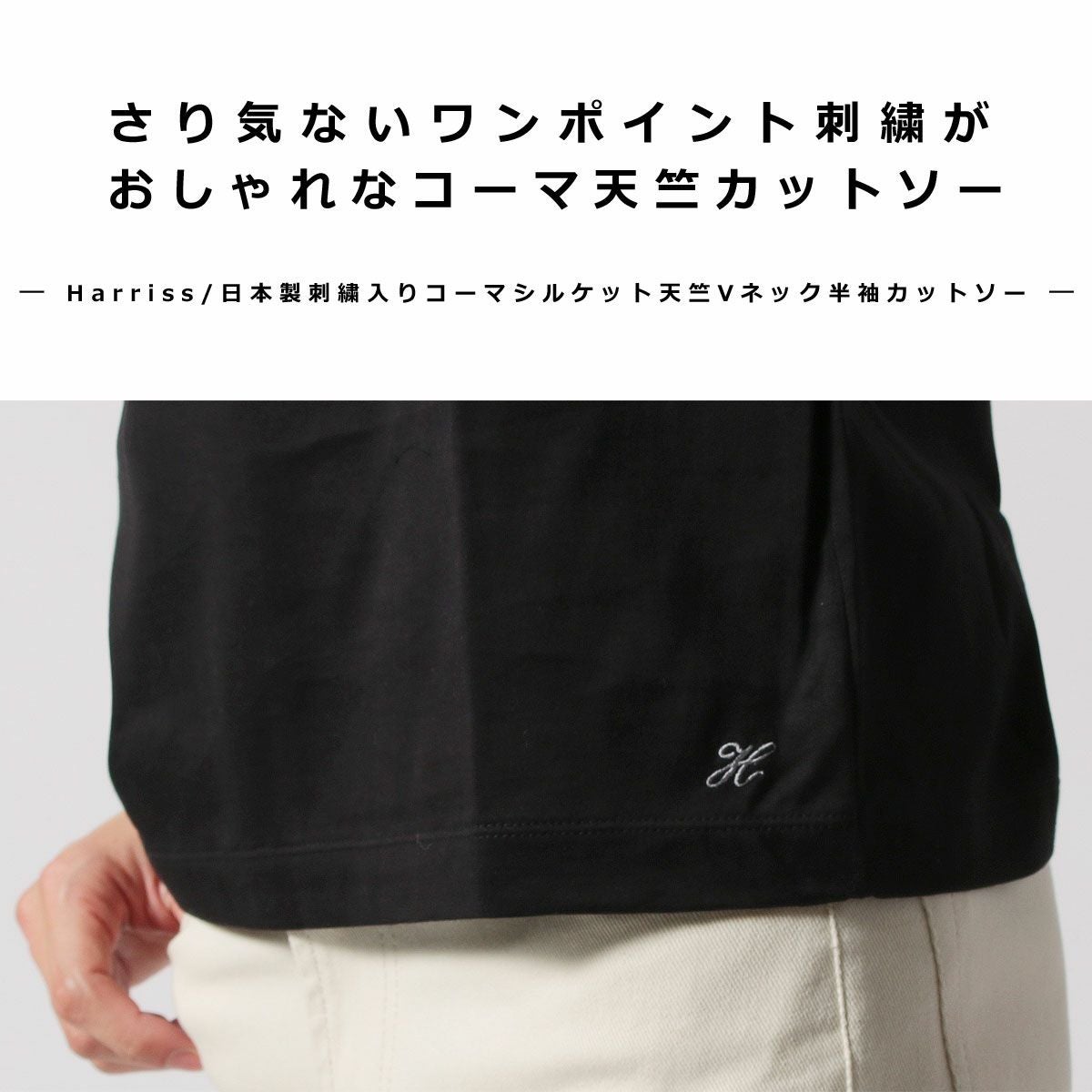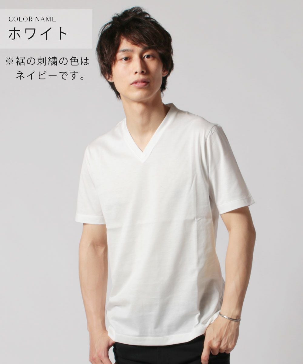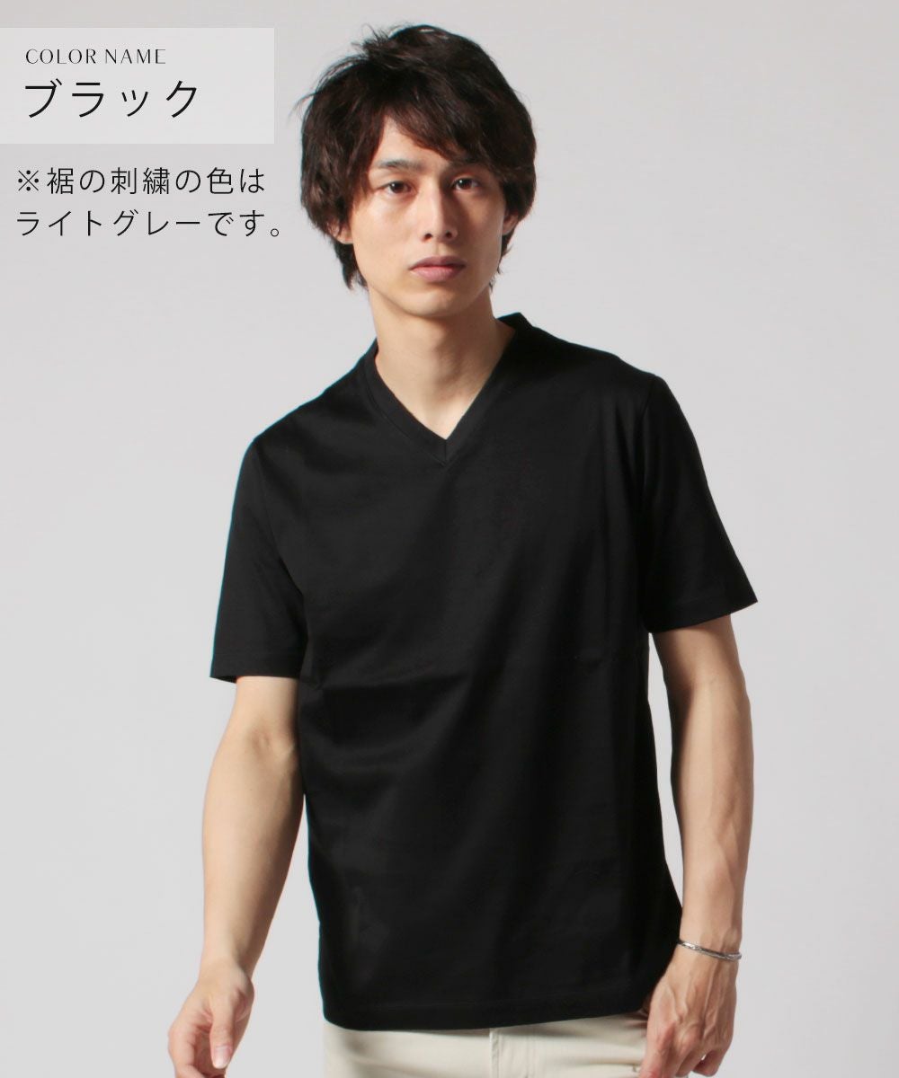 日本製刺繍入りコーマシルケット天竺Vネック半袖カットソー