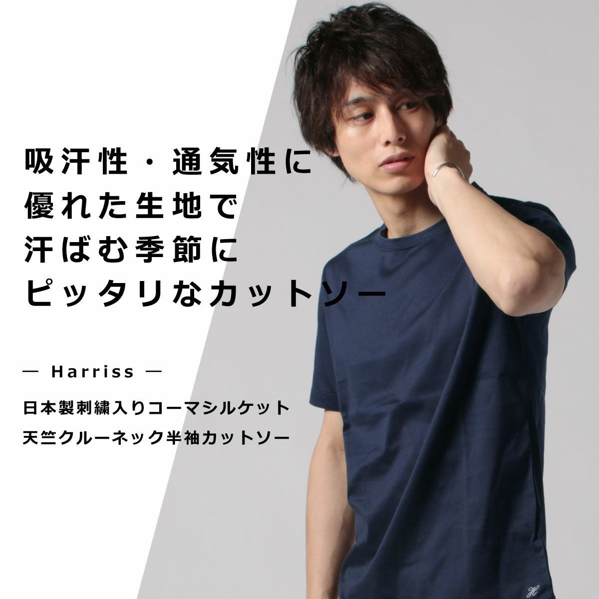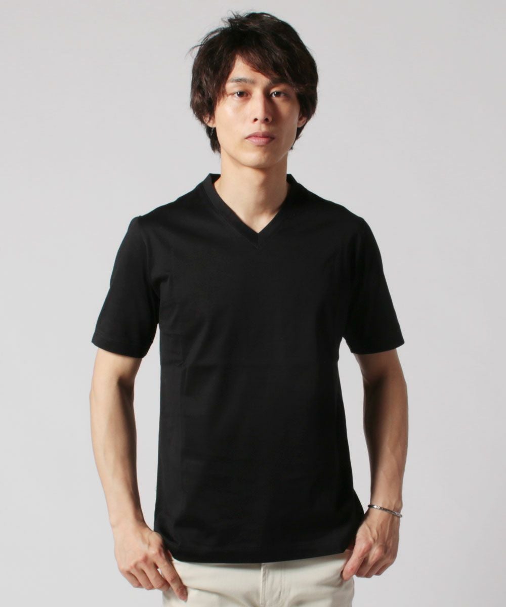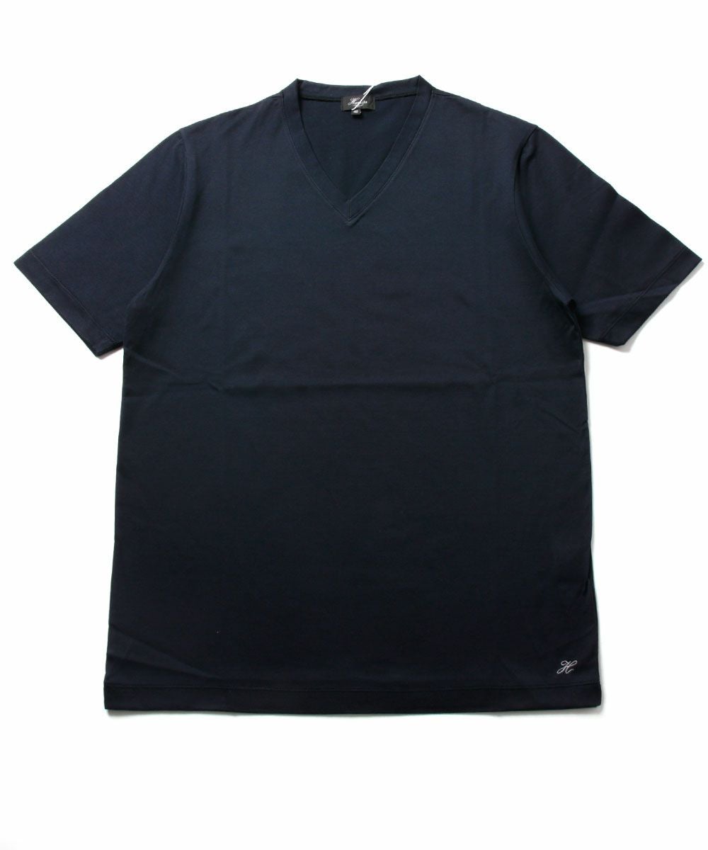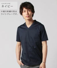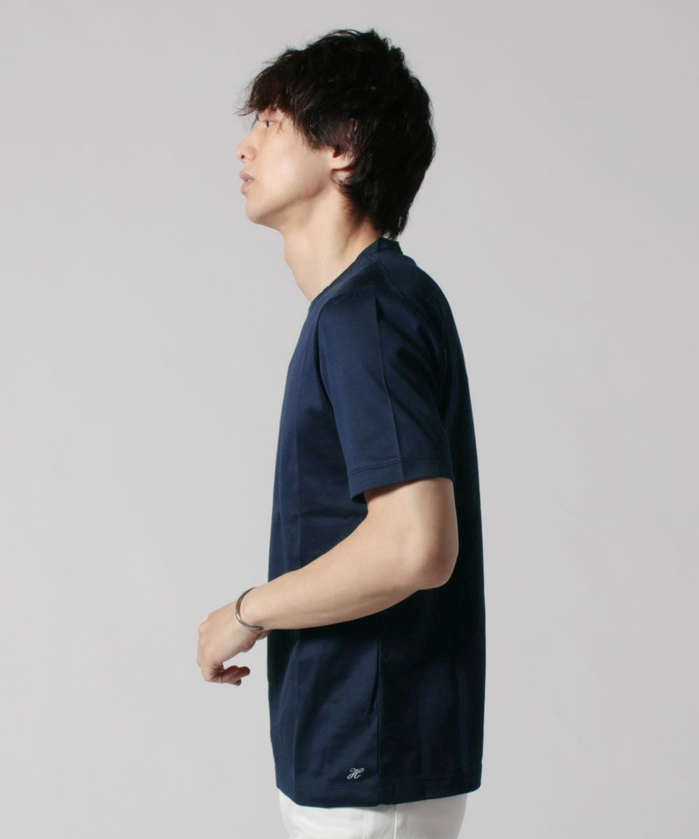 日本製刺繍入りコーマシルケット天竺Vネック半袖カットソー