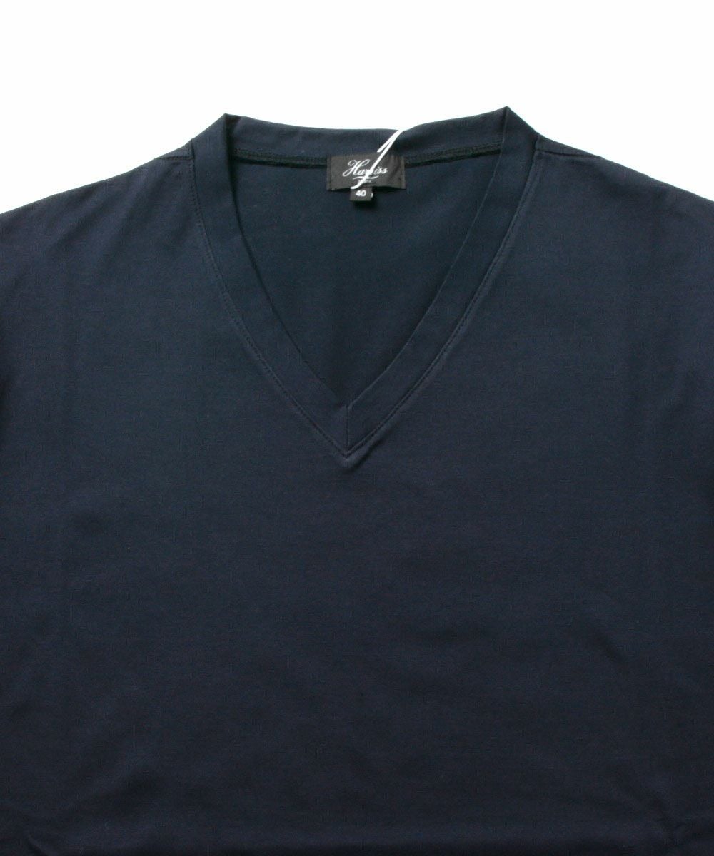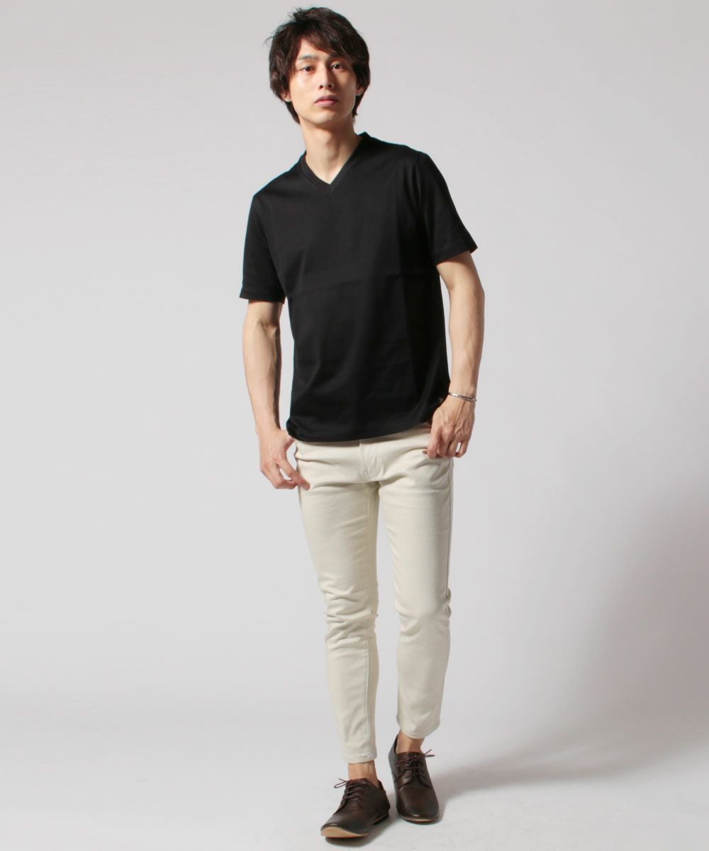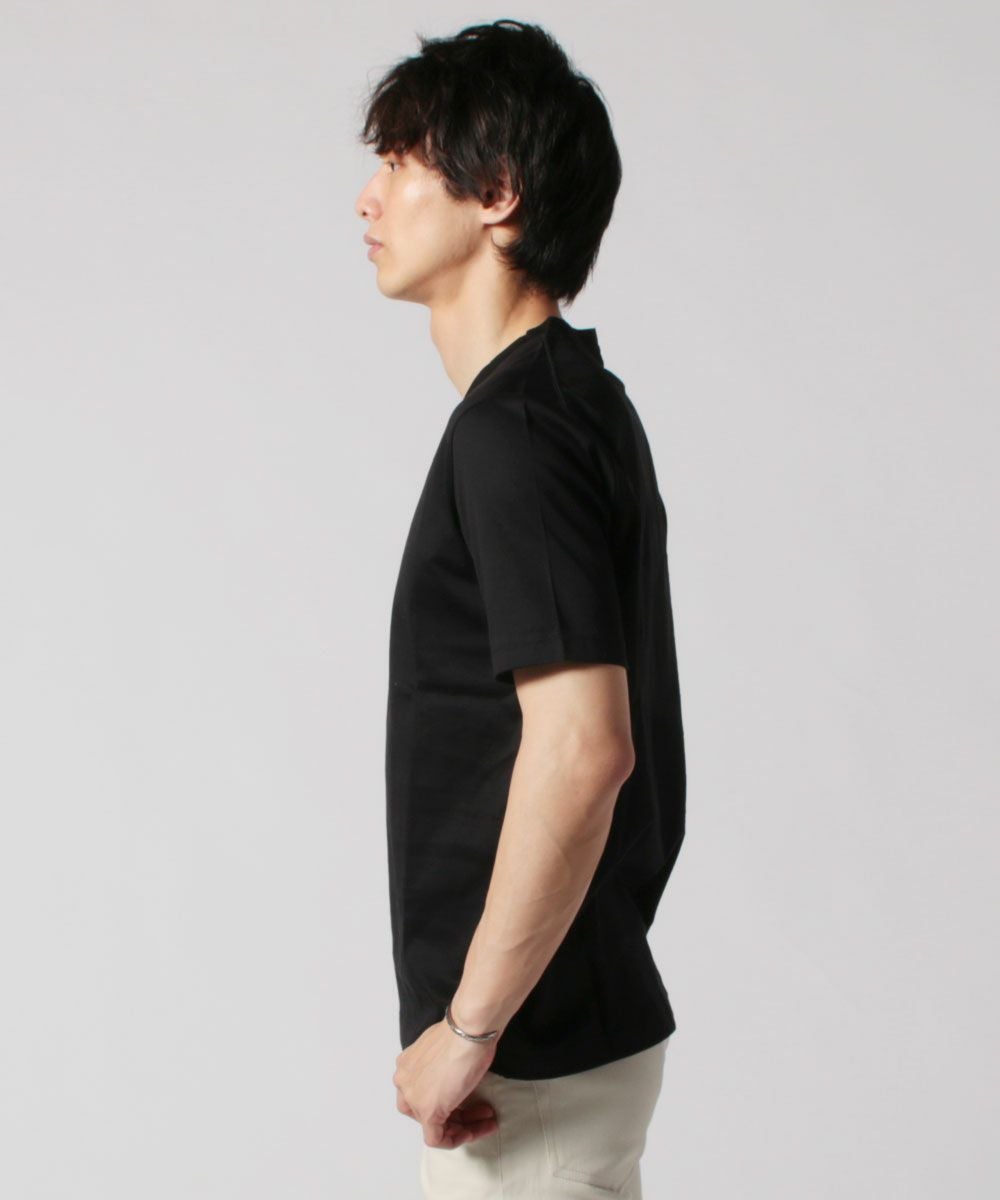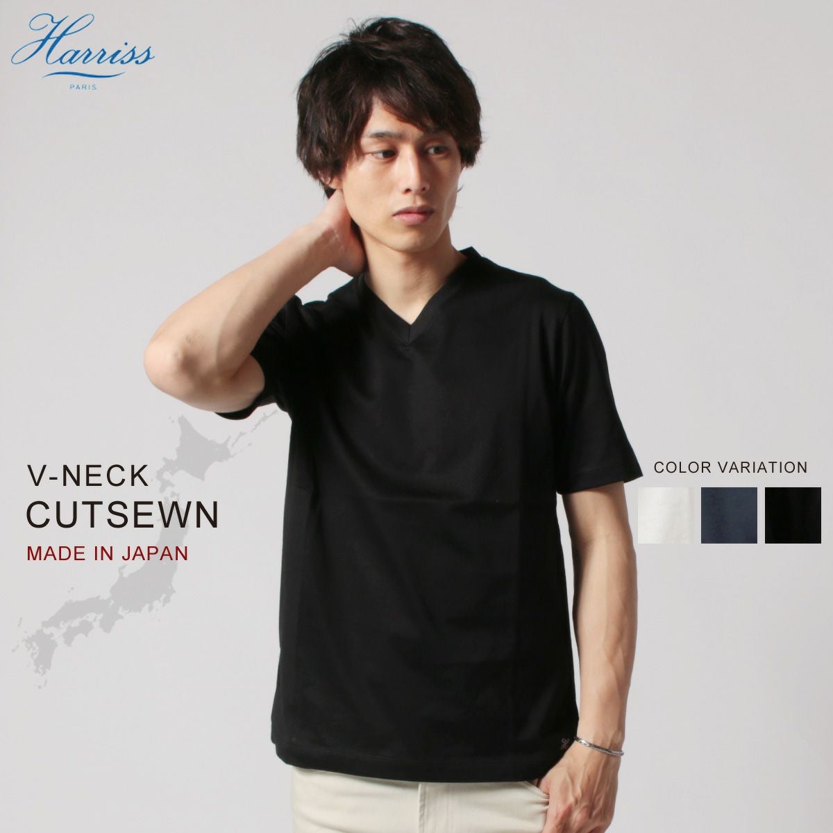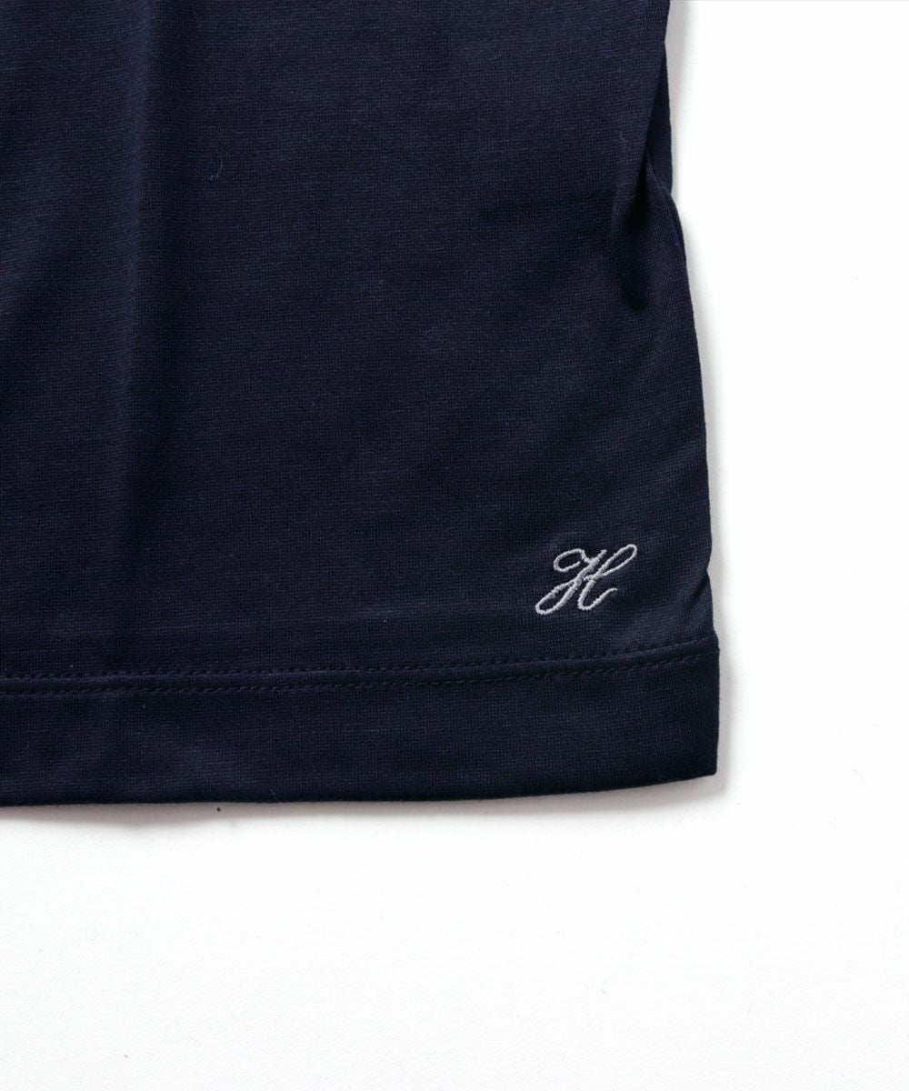 日本製刺繍入りコーマシルケット天竺Vネック半袖カットソー