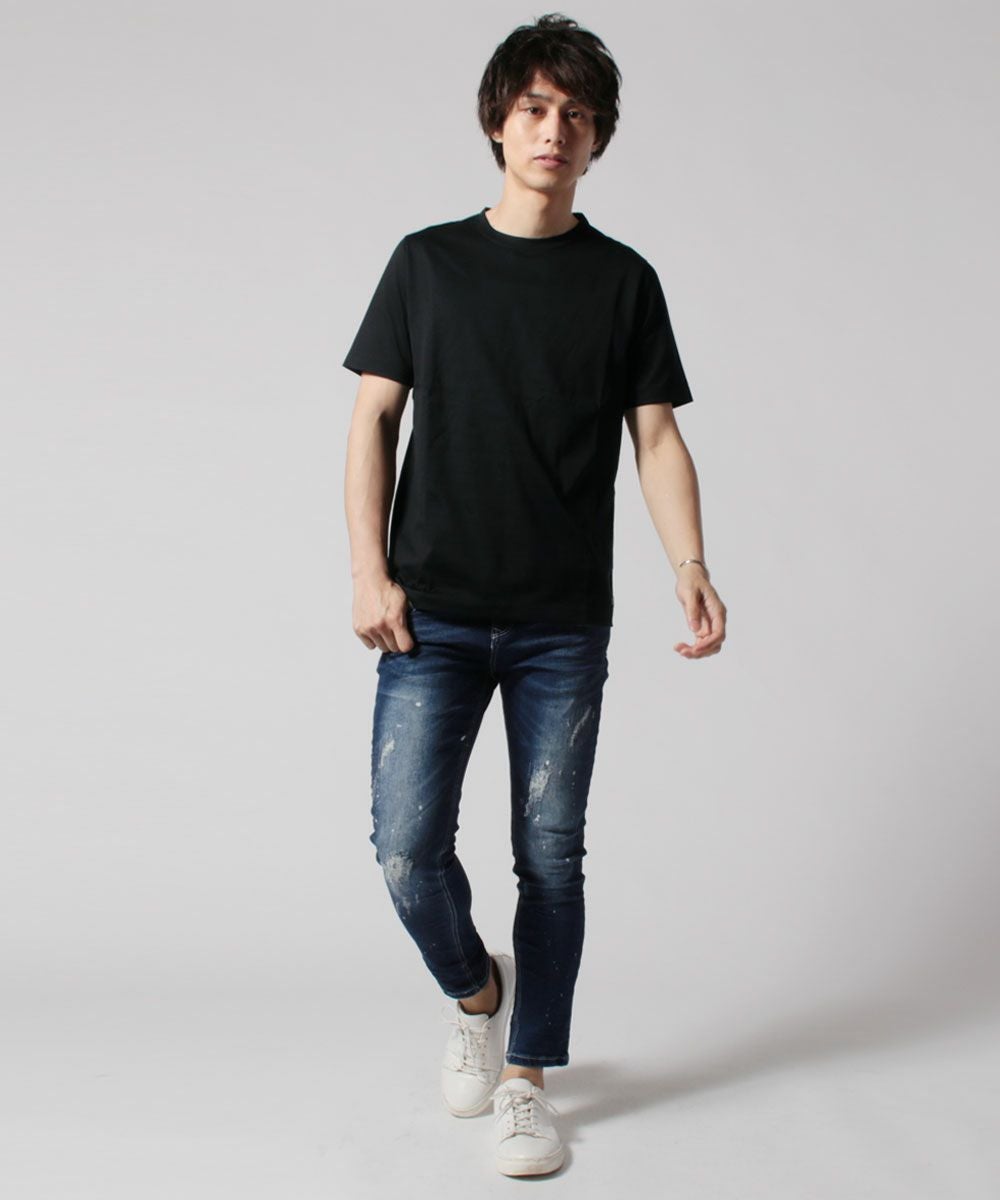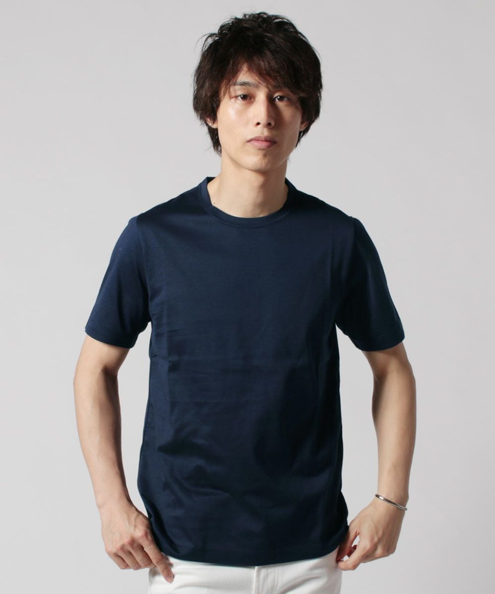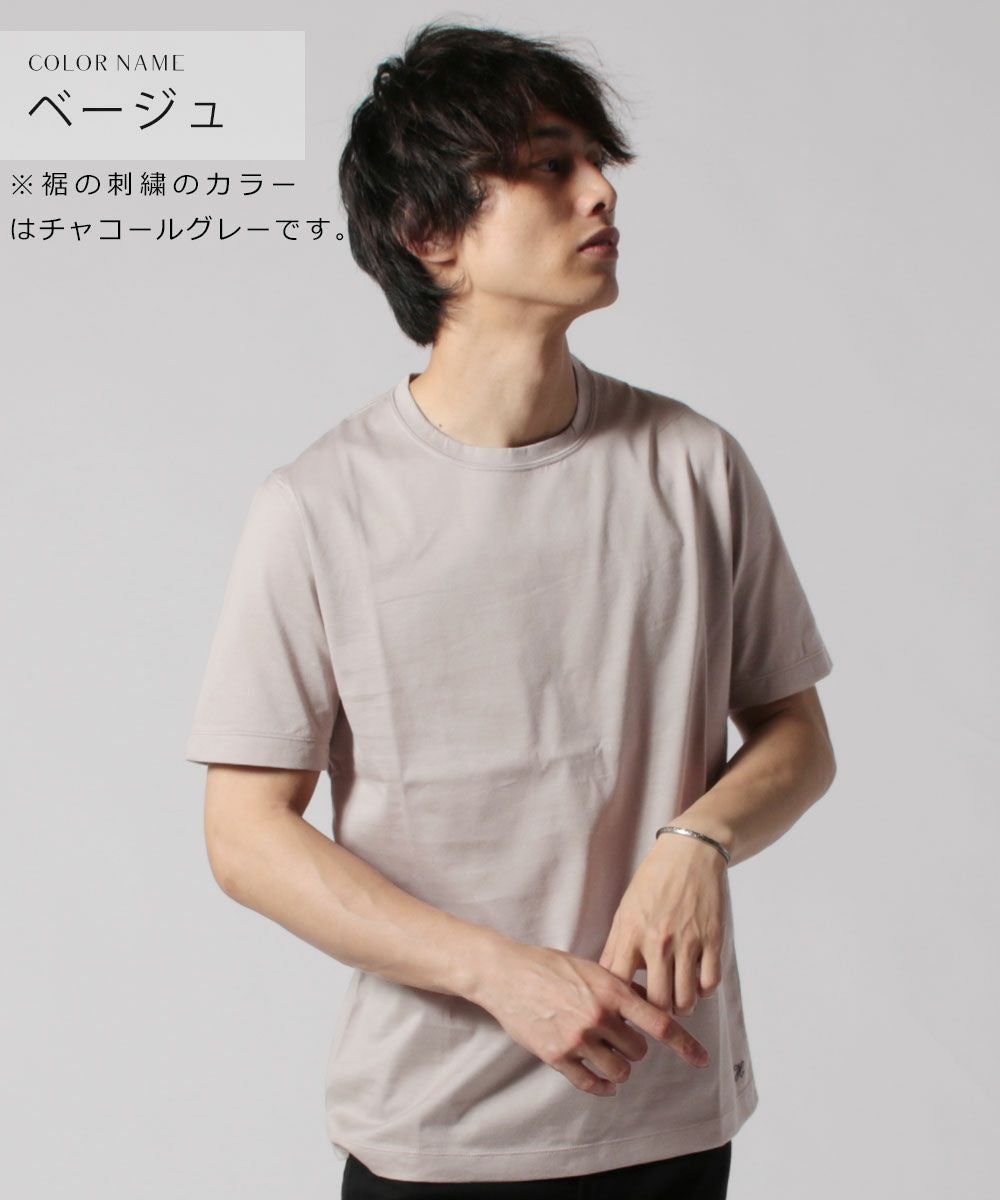 刺繍入りコーマシルケット天竺クルーネック半袖カットソー