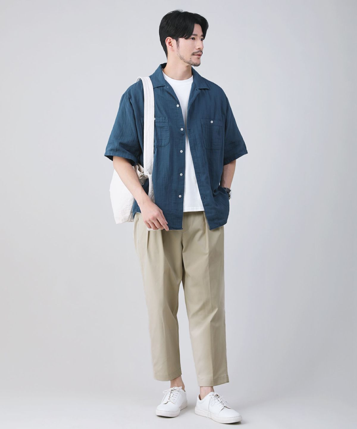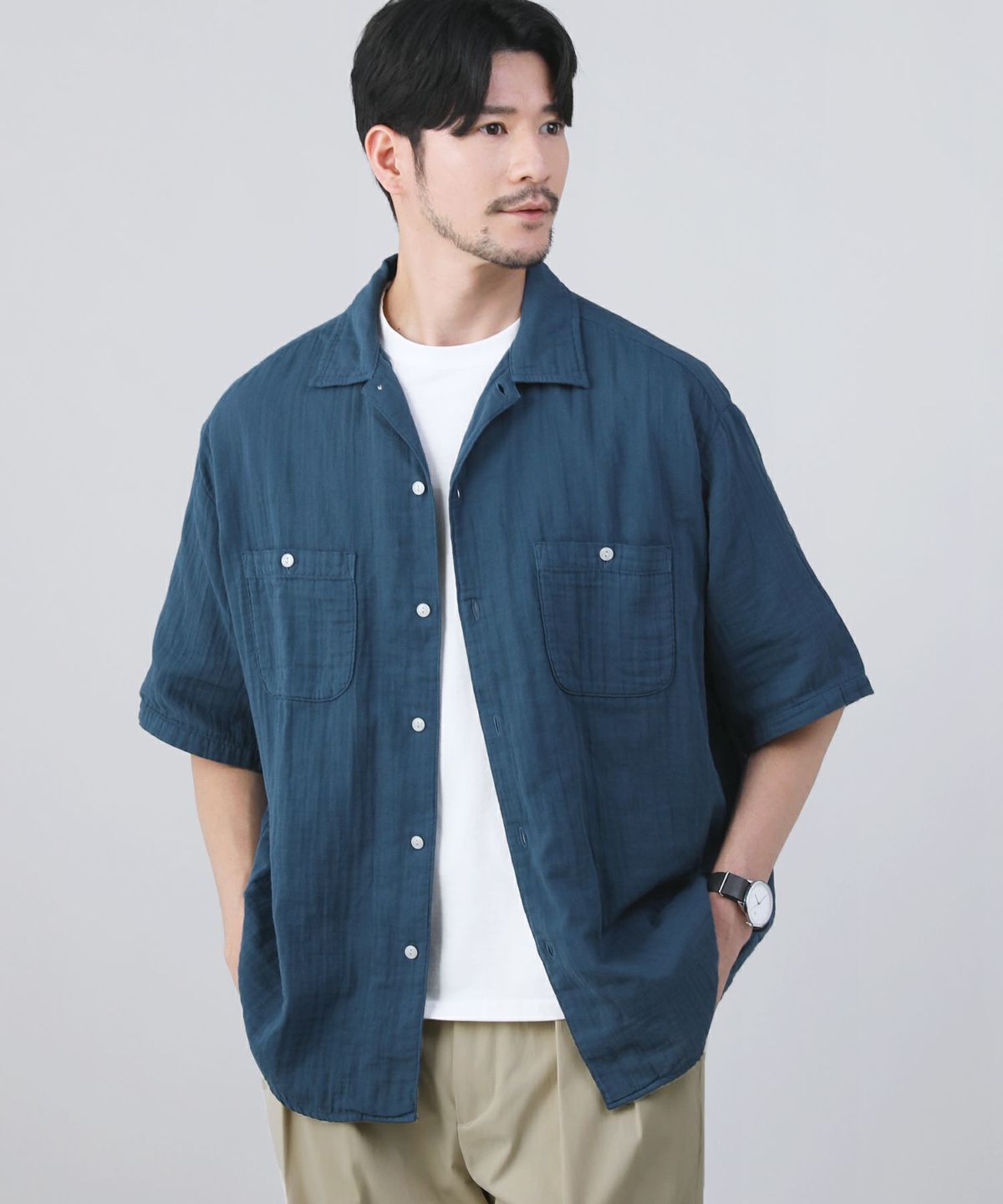 涼やかなダブルガーゼ生地を使用した半袖シャツです。