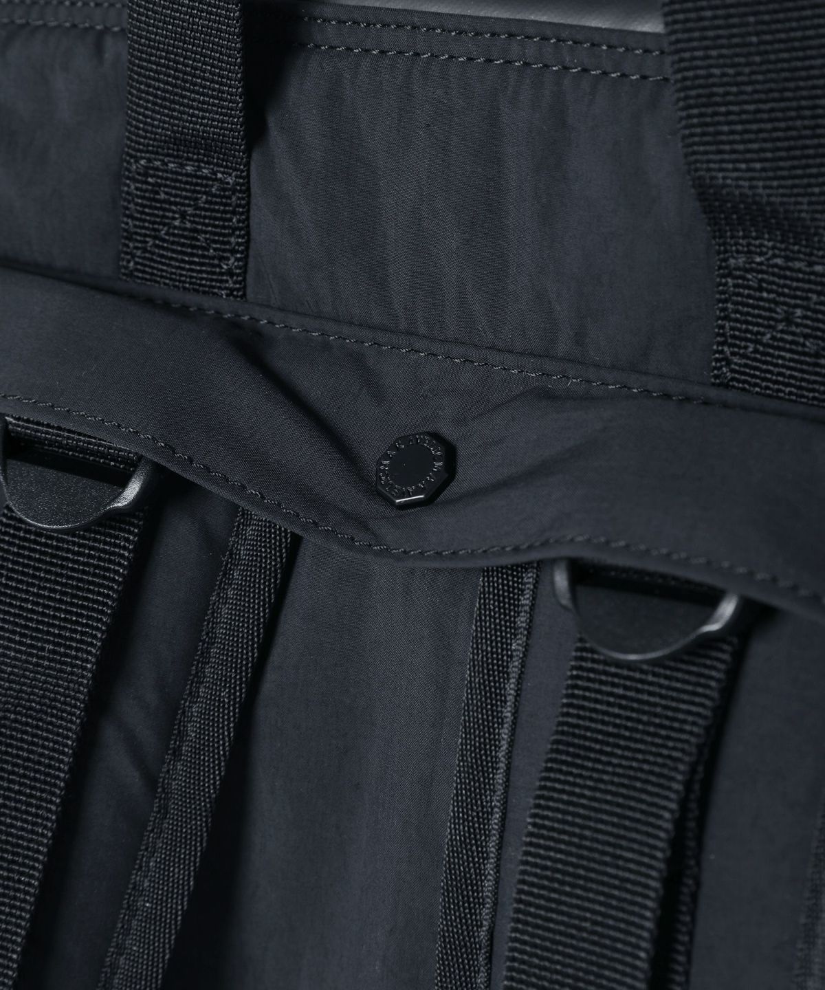 生地にはCORDURA(R)N/80D CDR OX WS WR PU 2TIME 57(NYLON)を採用。CORDURA(R)ならではの耐久性や軽量性、弱防水性能の機能面はもちろん、ファッション性も備えた特別な生地となっています。ウォッシュ加工を施すことで独特のドレープ感や墨黒の風合いを持たせ、モードな雰囲気を醸し出します。