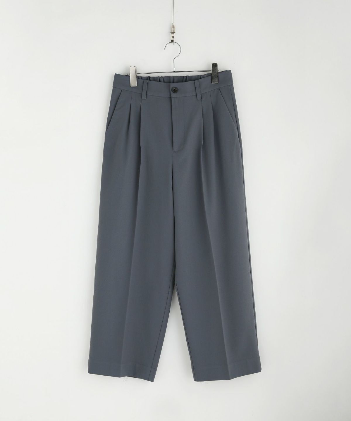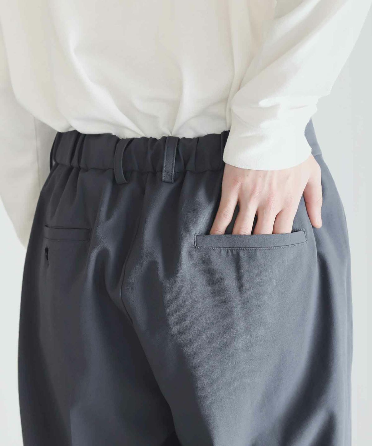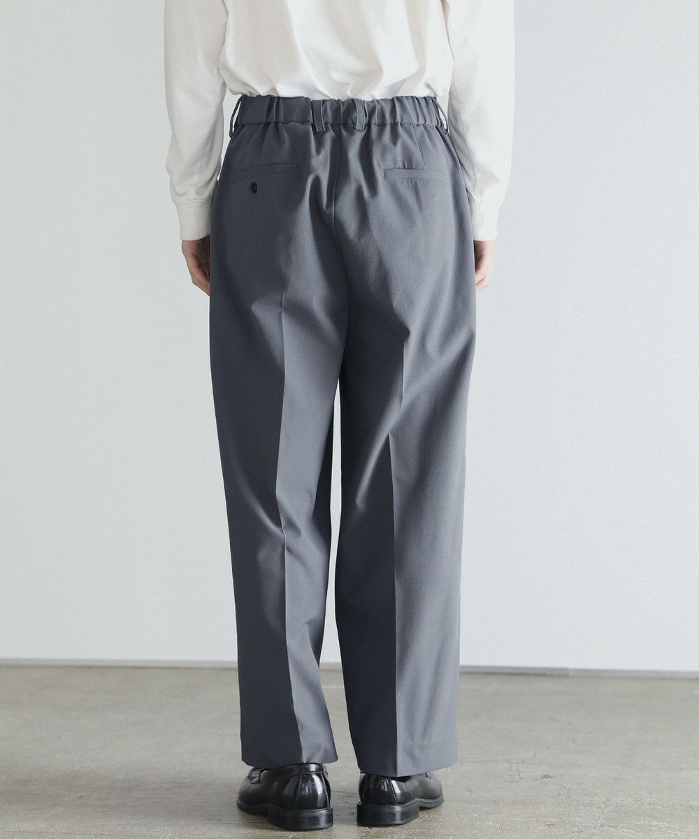 キレイめなルックスながらワイドなシルエットで程よくカジュアルダウンさせたデザイン。腰回りとわたりにゆとりを持たせているのでゆったりとしていてラクな穿き心地で、程よいストレッチ性があるので動作にストレスを感じさせません。抜群の穿き心地と手軽にケアできる素材でデイリーユースに最適なアイテムです。同素材のダブルテーラードジャケットやカーディガンを合わせたセットアップコーデもおすすめです。