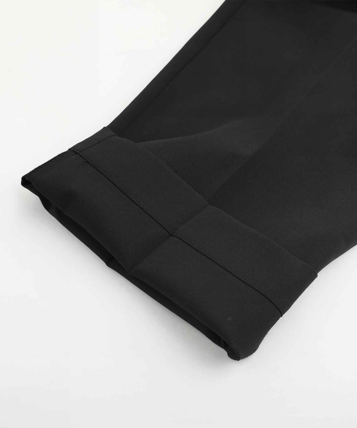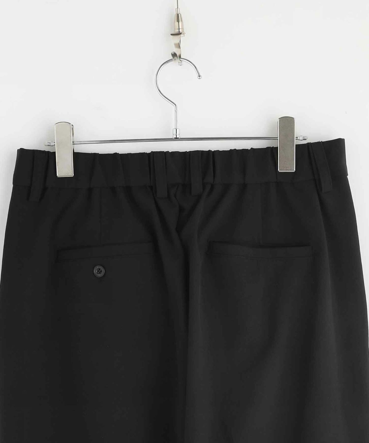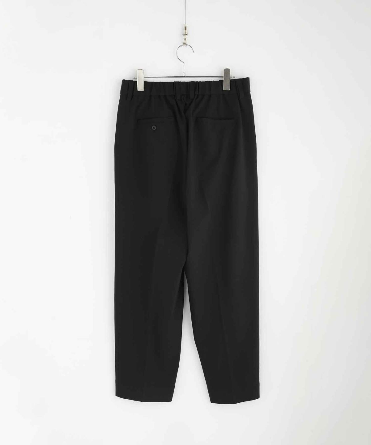 キレイめなルックスながらワイドなシルエットで程よくカジュアルダウンさせたデザイン。腰回りとわたりにゆとりを持たせているのでゆったりとしていてラクな穿き心地で、程よいストレッチ性があるので動作にストレスを感じさせません。抜群の穿き心地と手軽にケアできる素材でデイリーユースに最適なアイテムです。同素材のダブルテーラードジャケットやカーディガンを合わせたセットアップコーデもおすすめです。