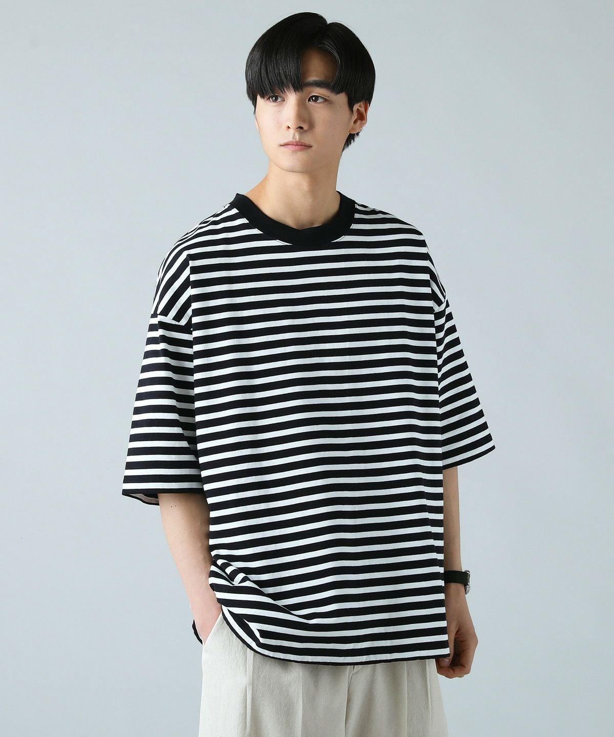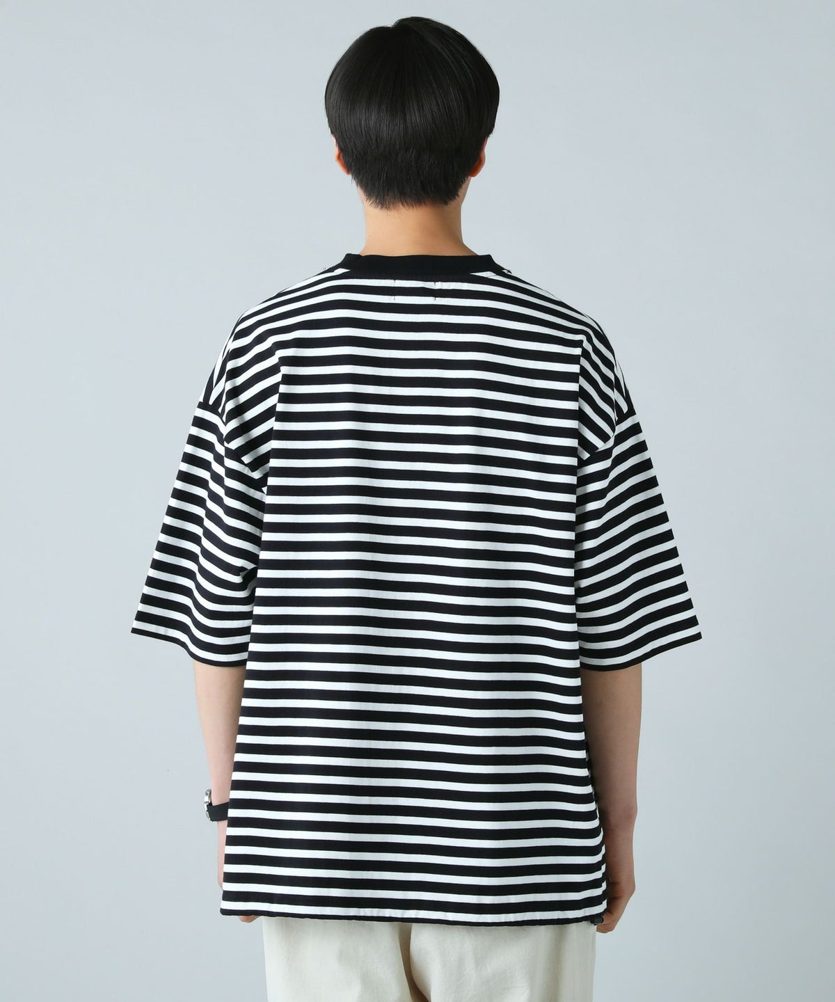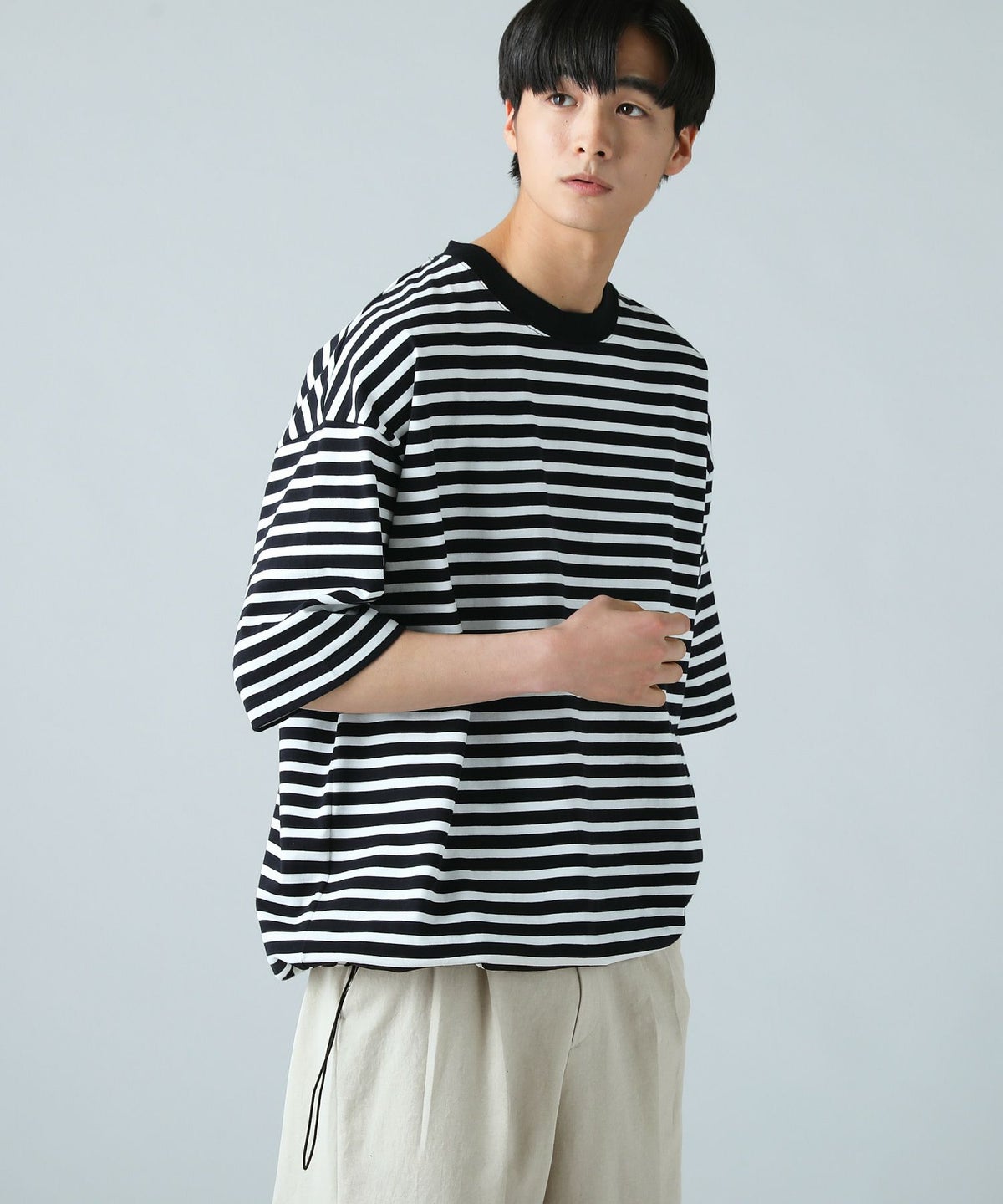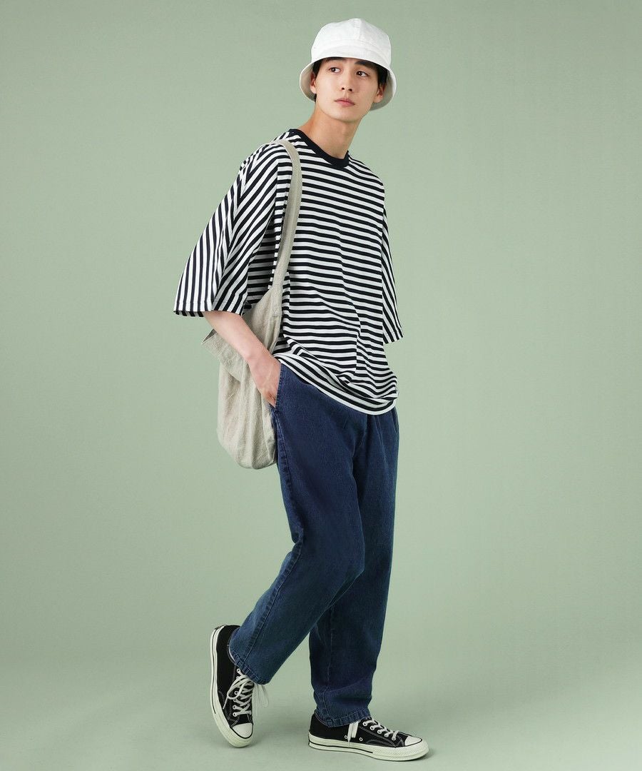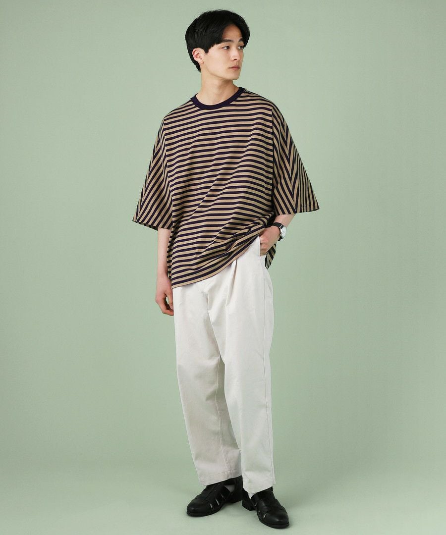 日本製MVSヘビーウェイトオーバーサイズドローコード付き半袖ボーダーTシャツ