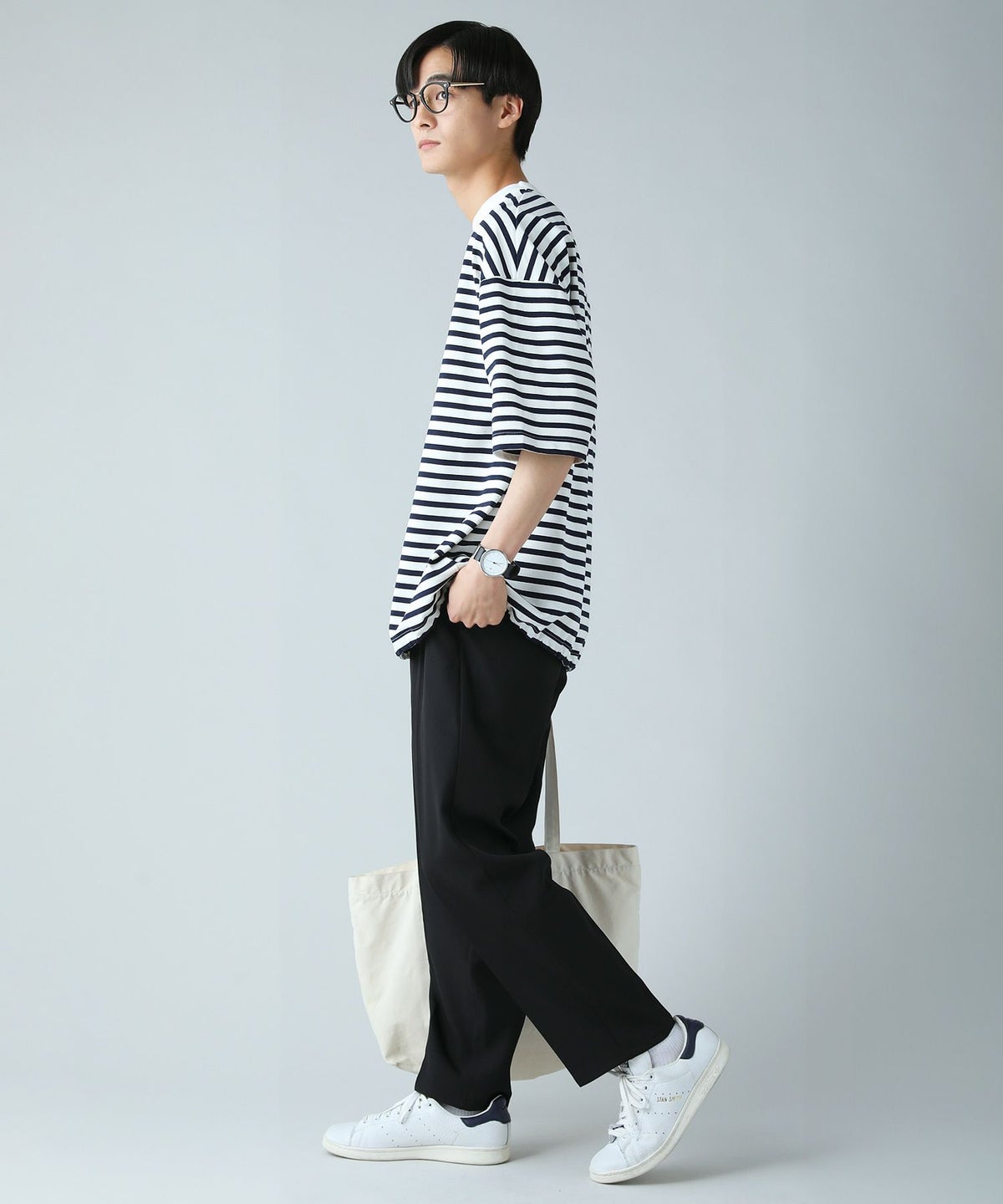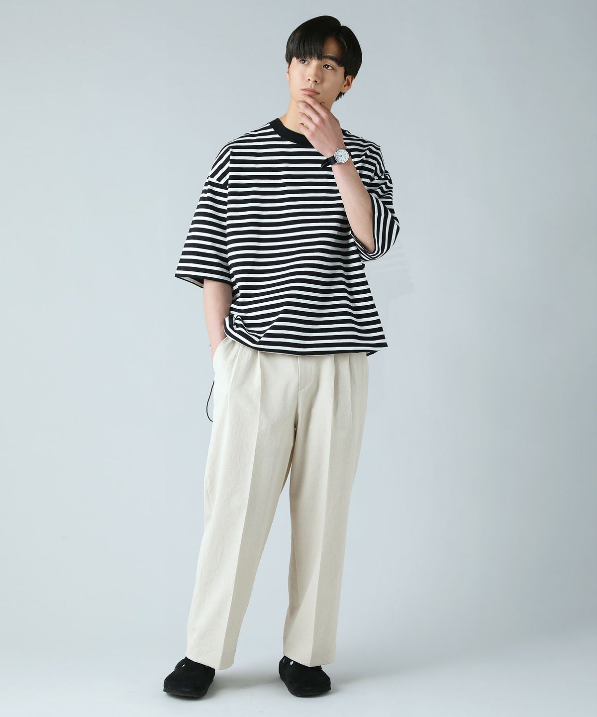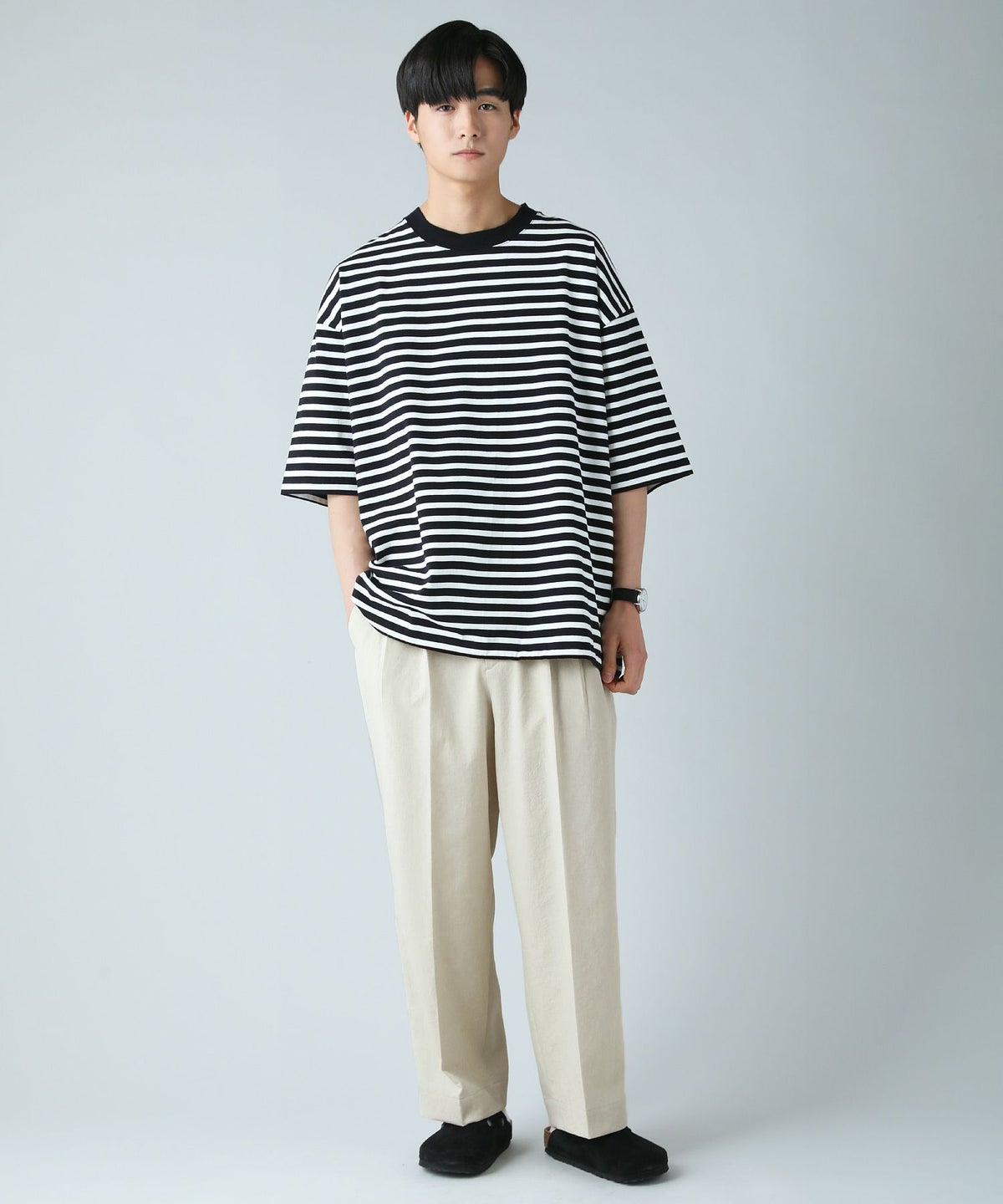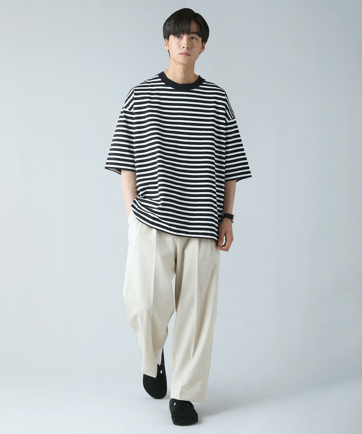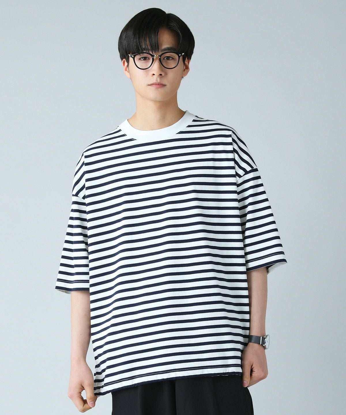 日本製MVSヘビーウェイトオーバーサイズドローコード付き半袖ボーダーTシャツ