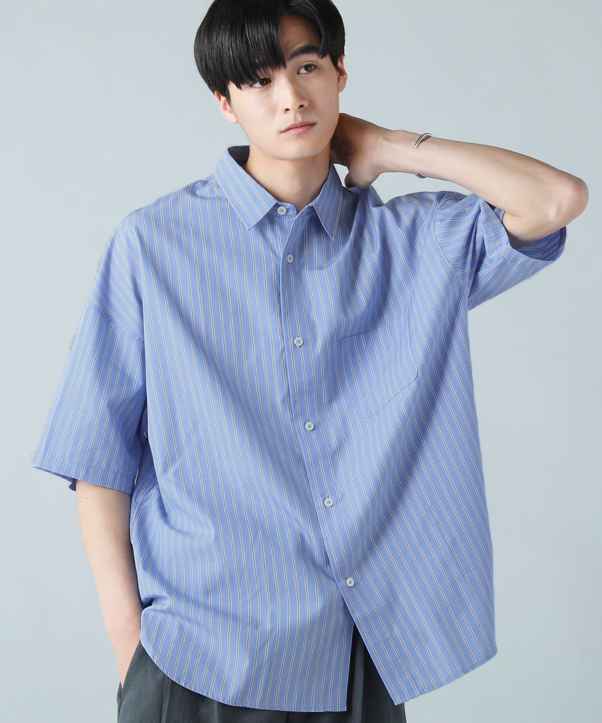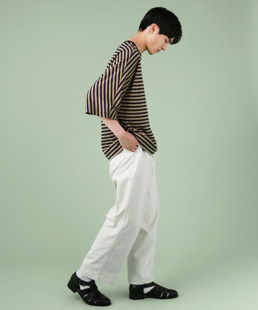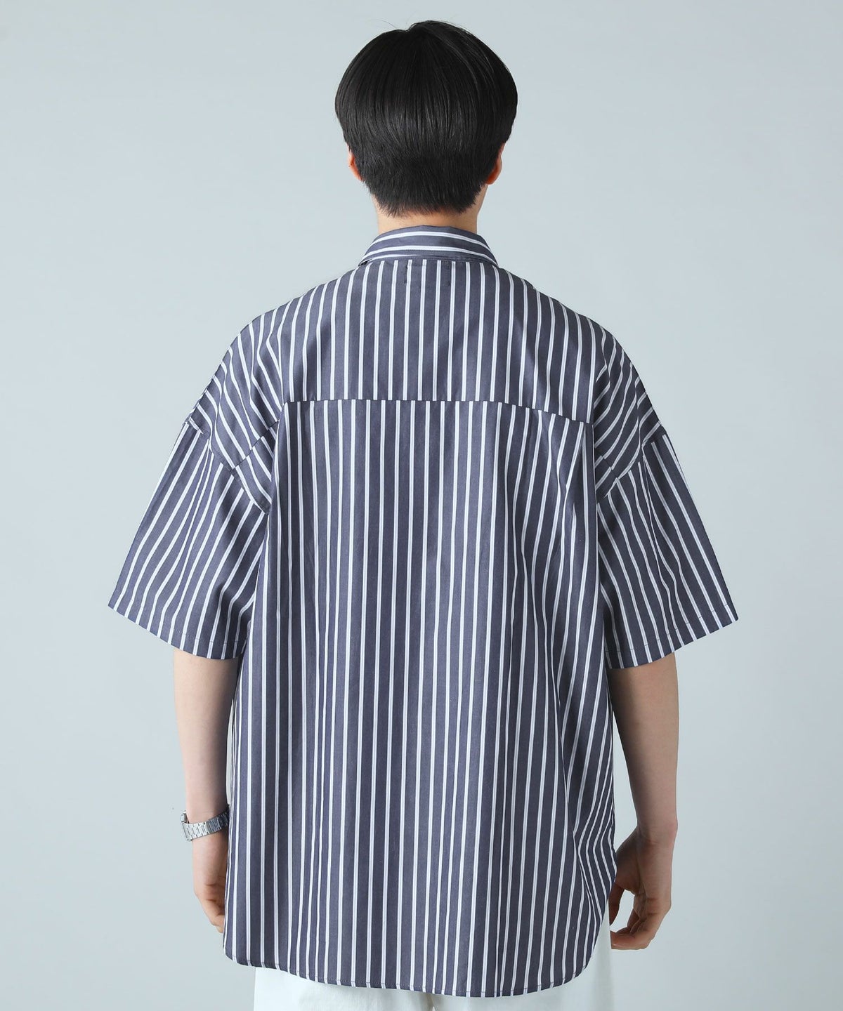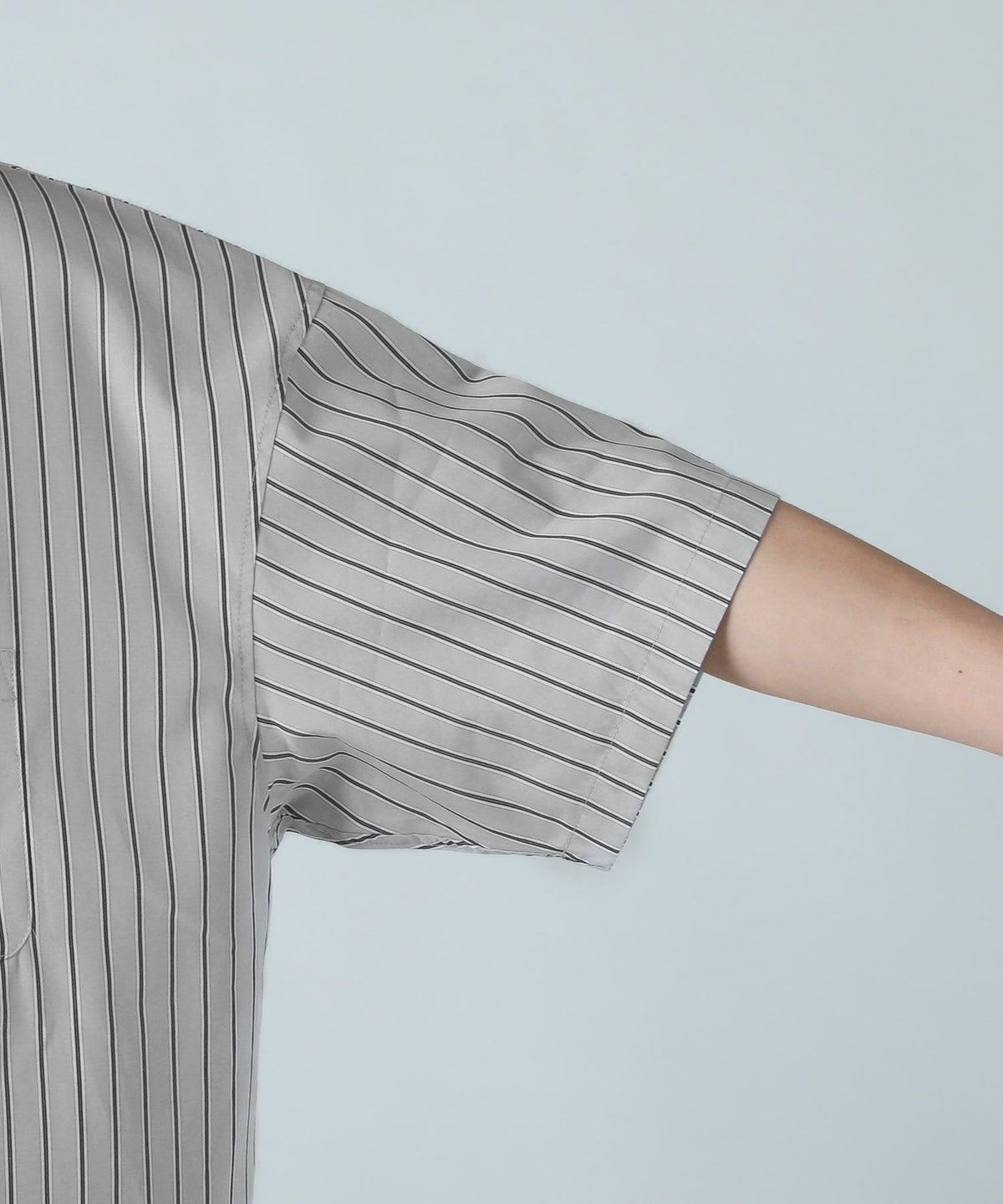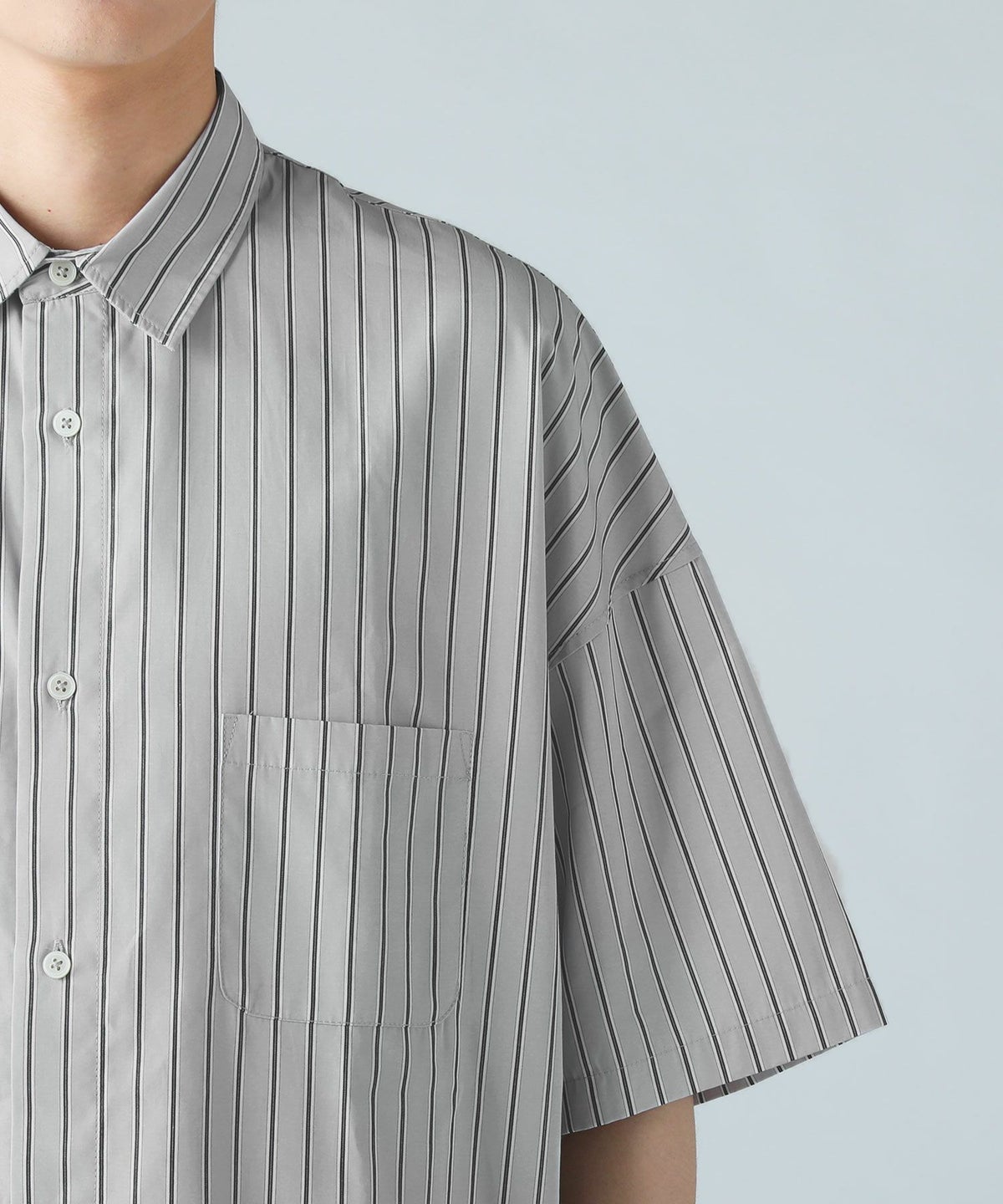 ハイカウントストライプドロップショルダー半袖シャツ