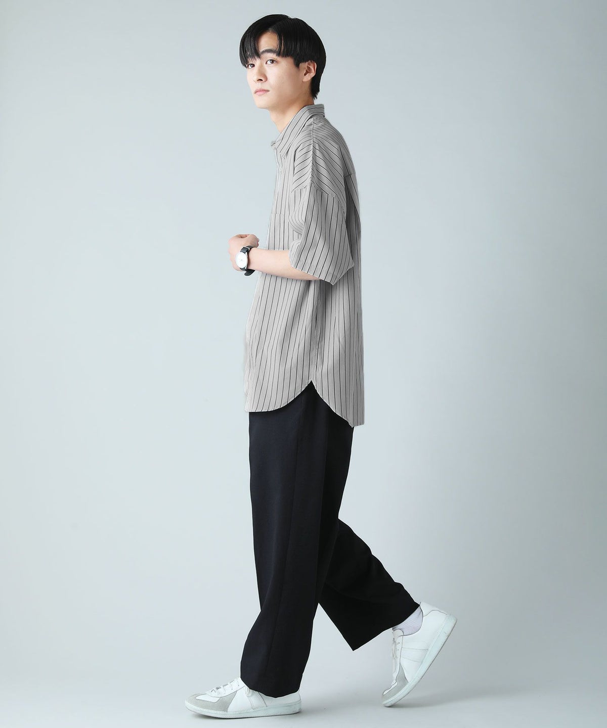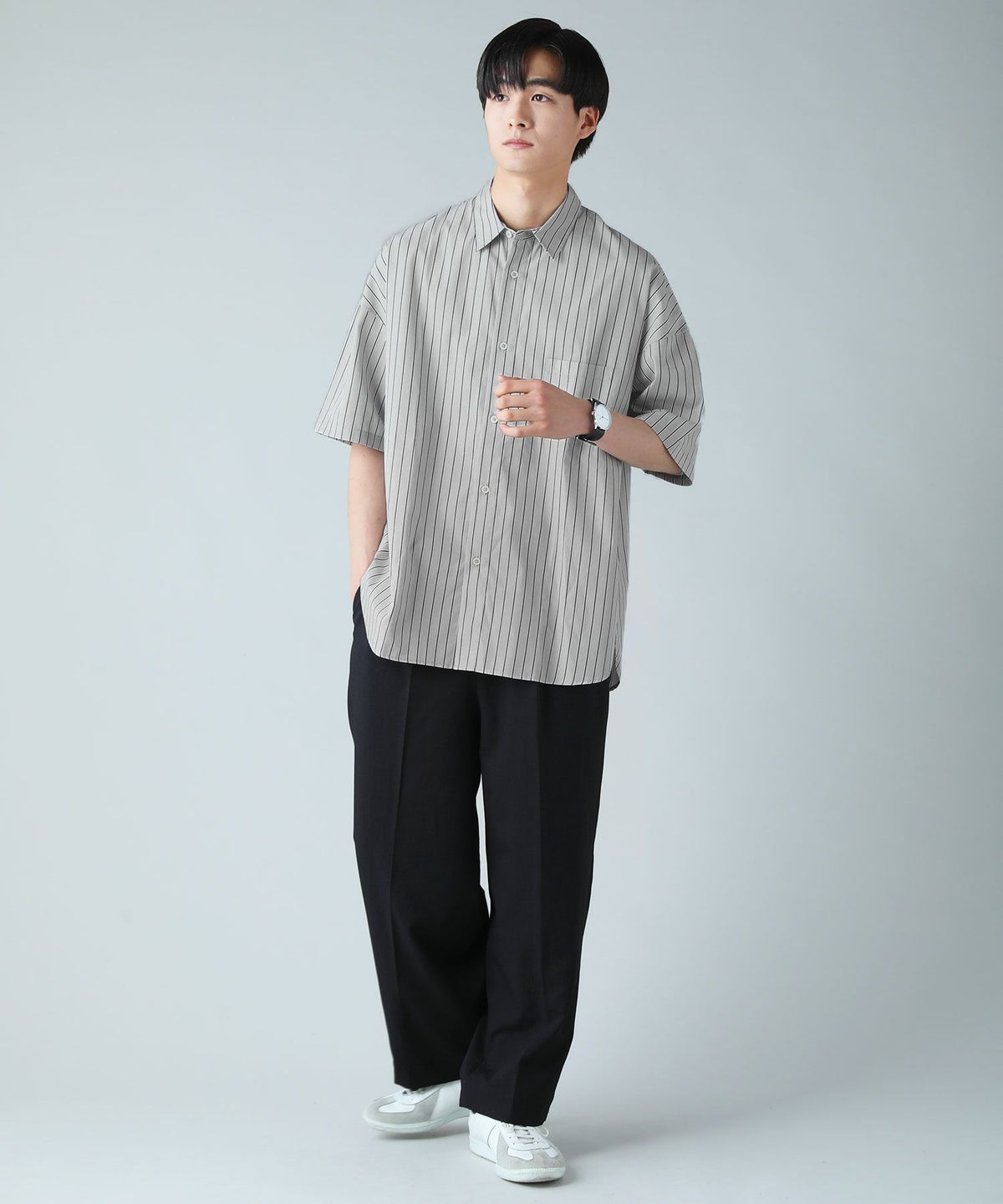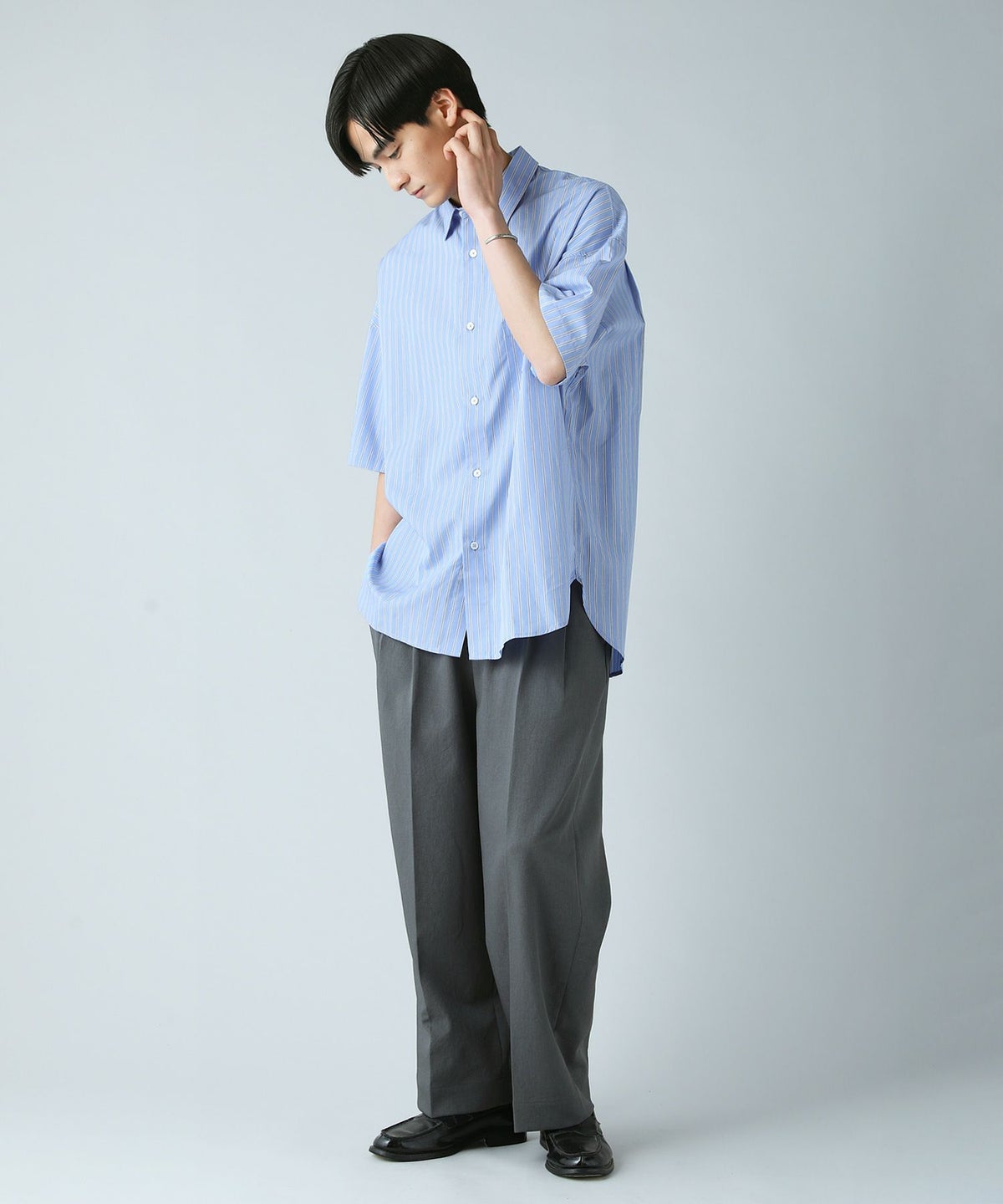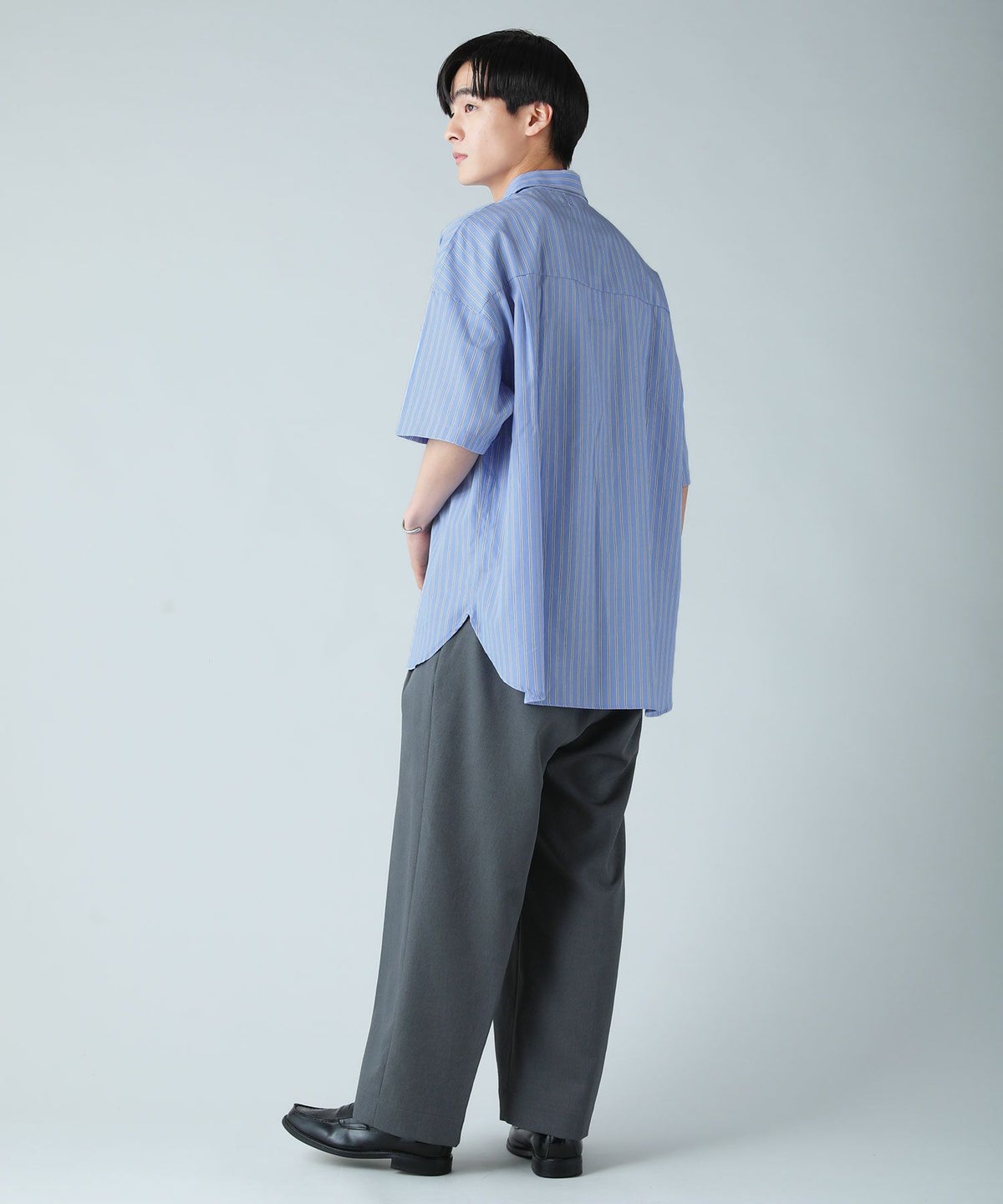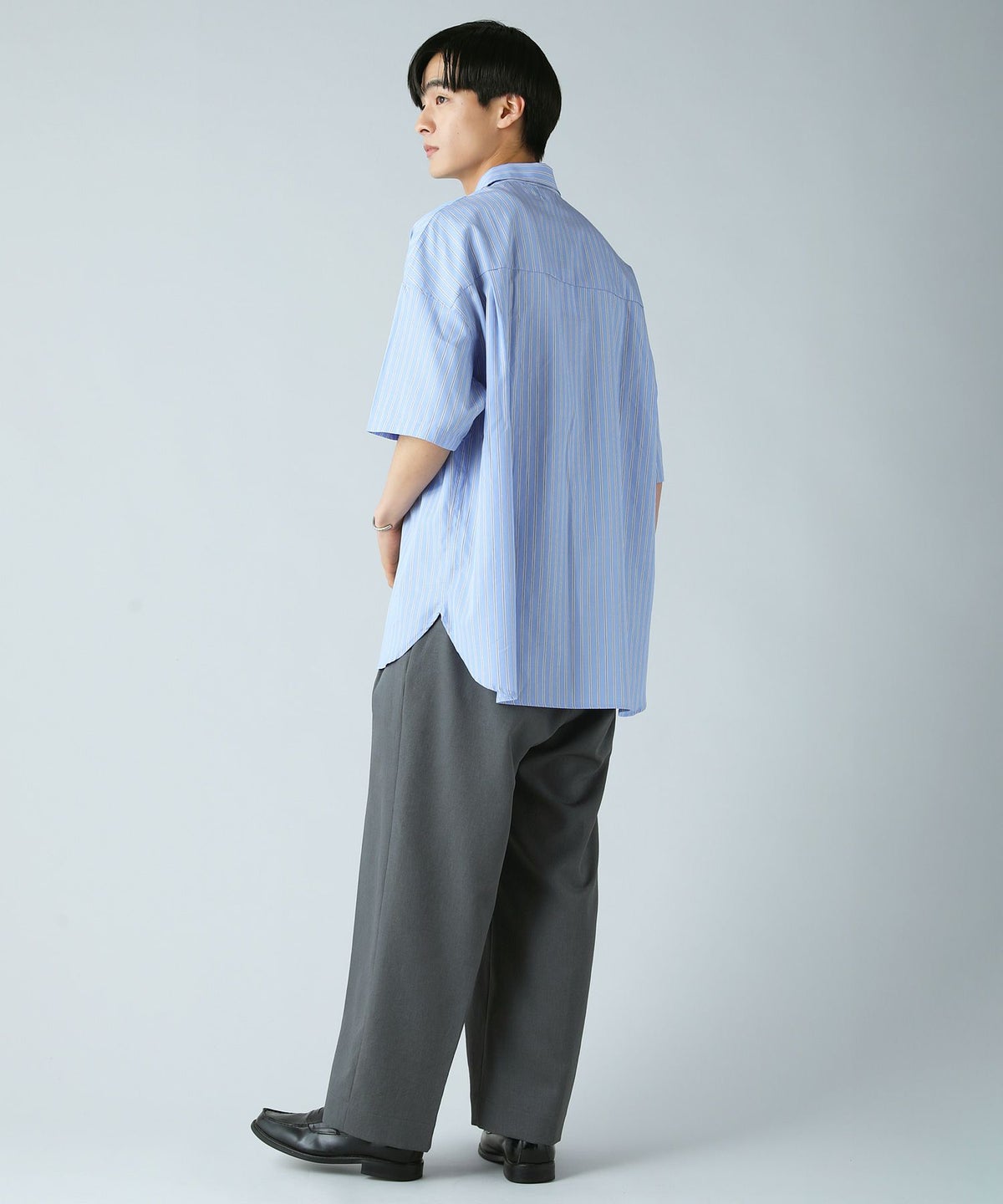 ハイカウントストライプドロップショルダー半袖シャツ
