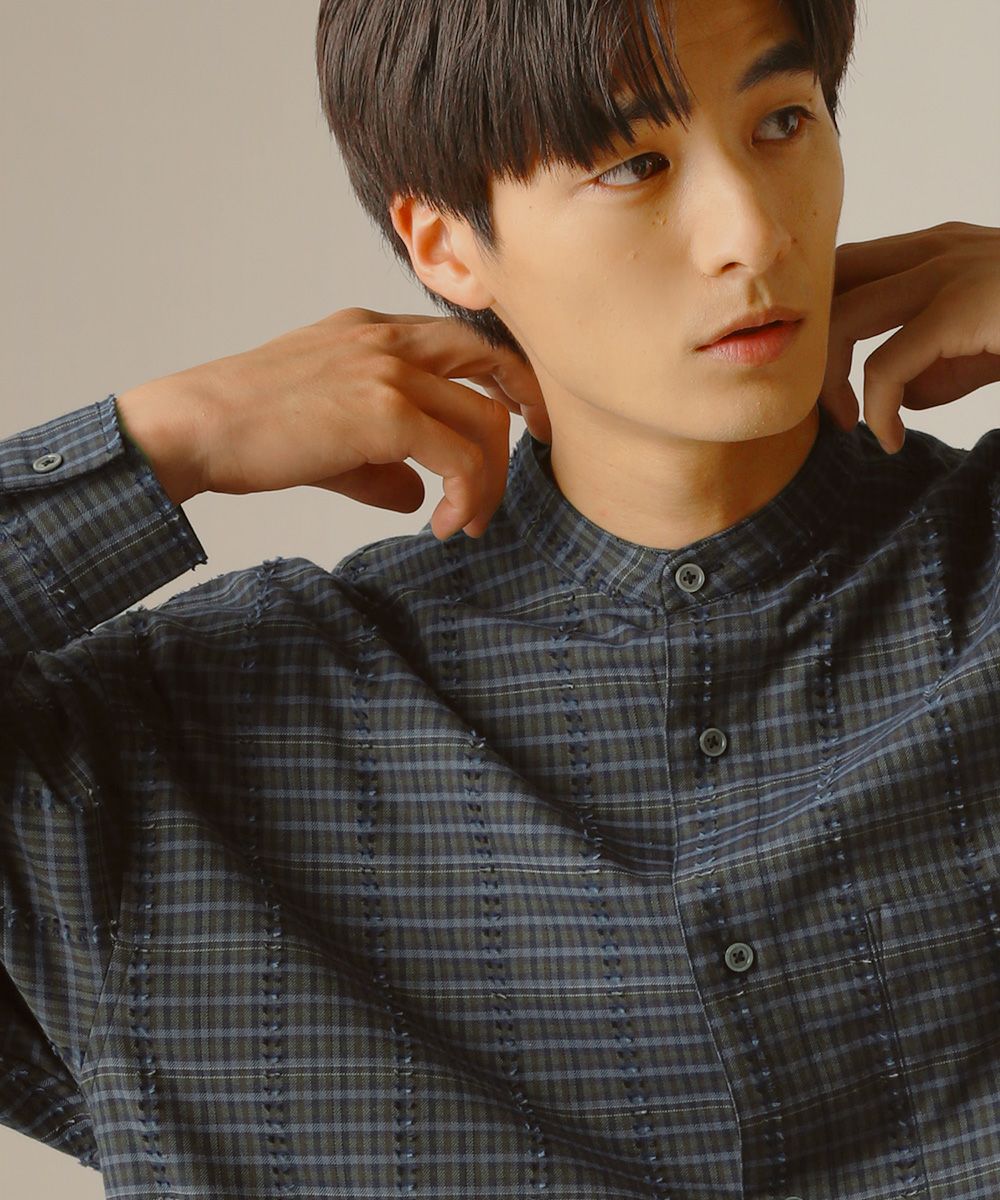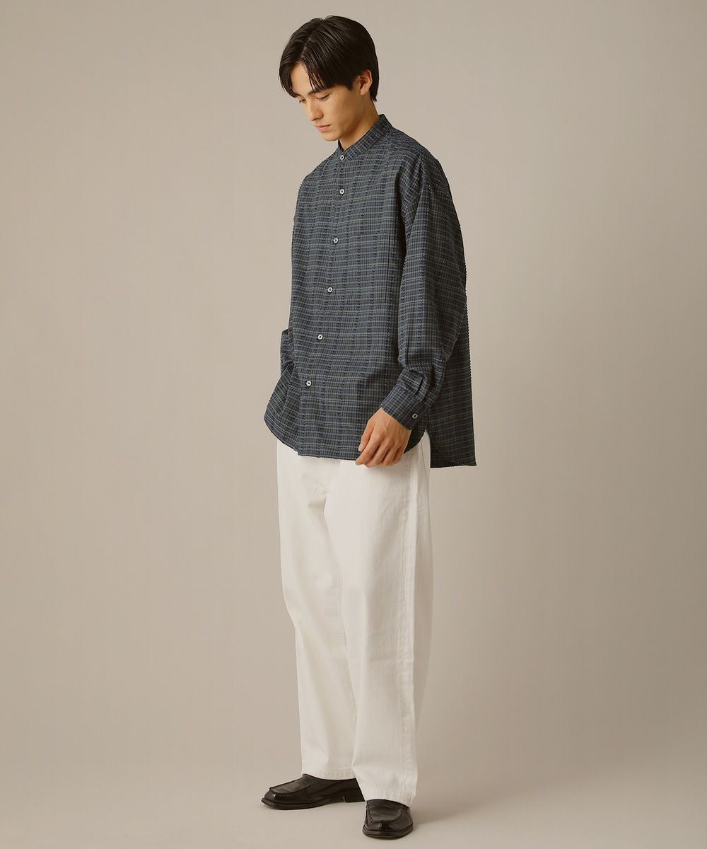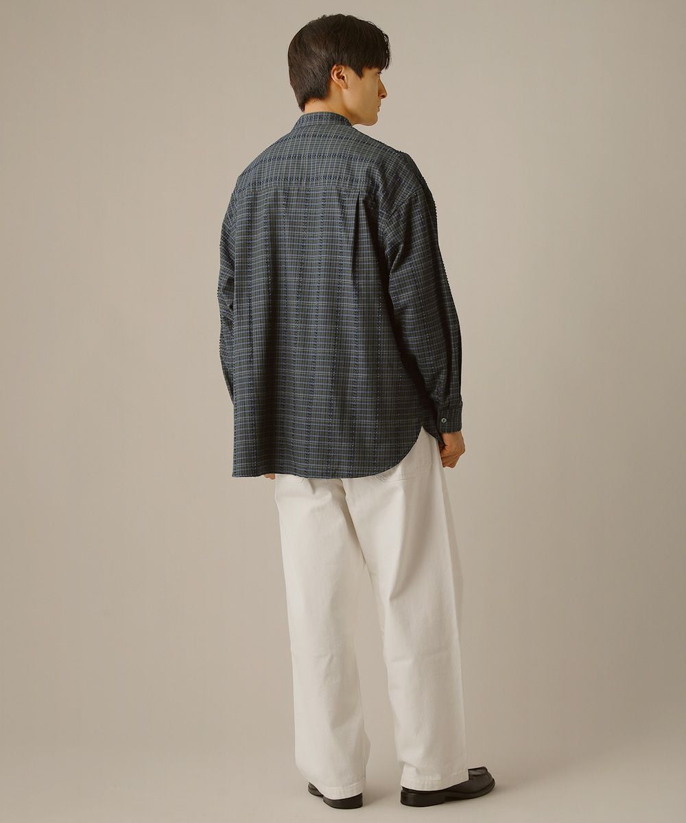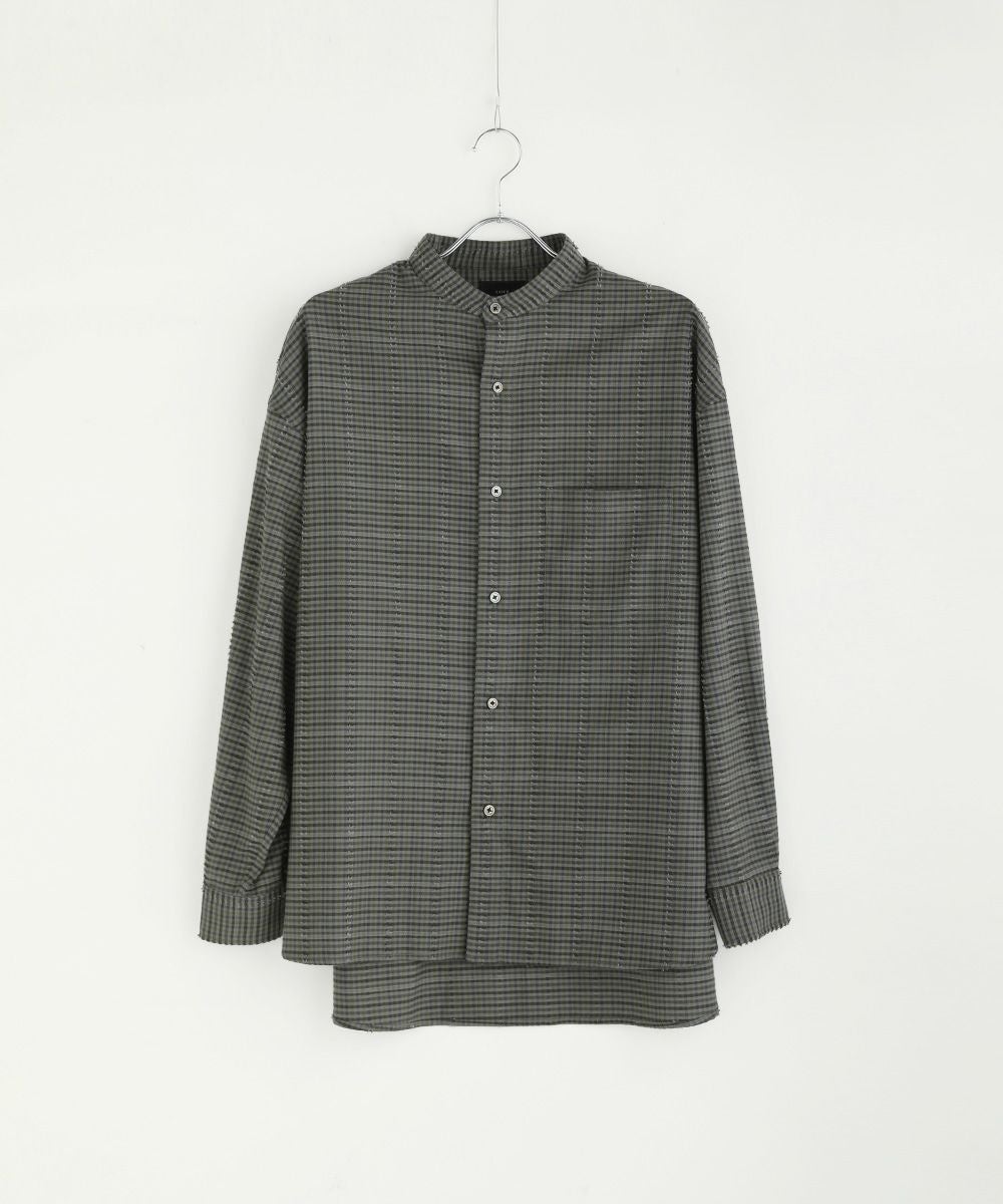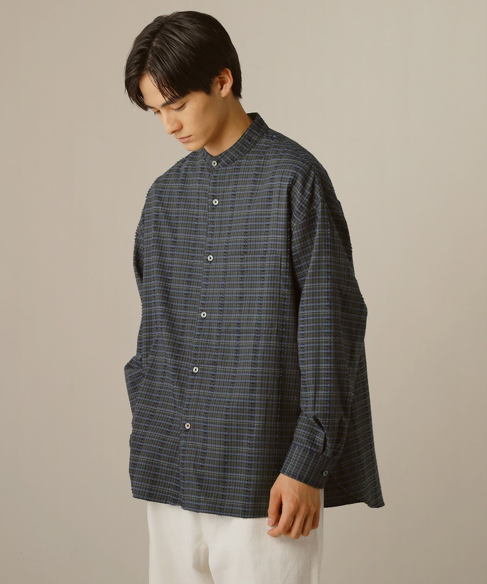 フリンジチェックバンドカラーシャツ
