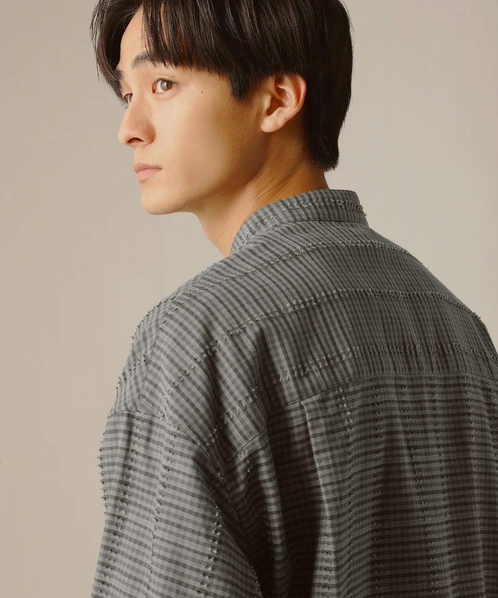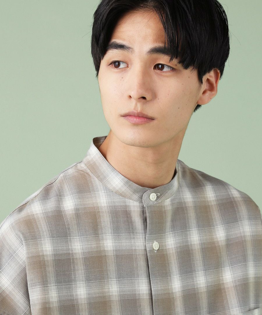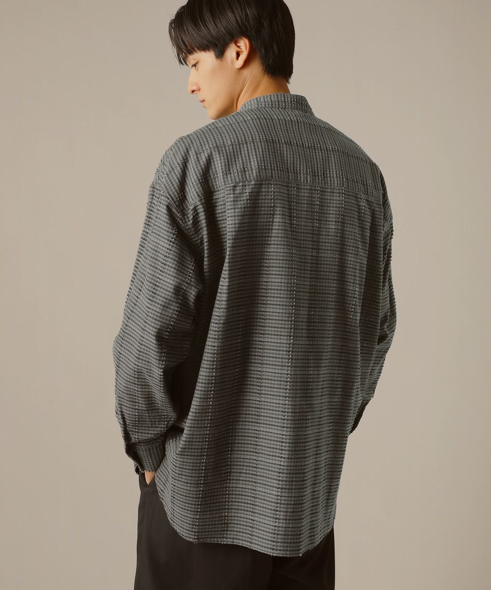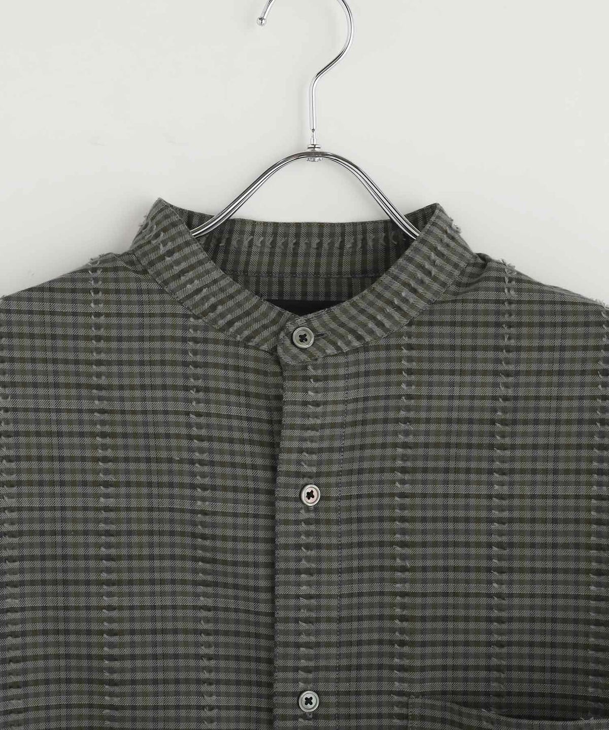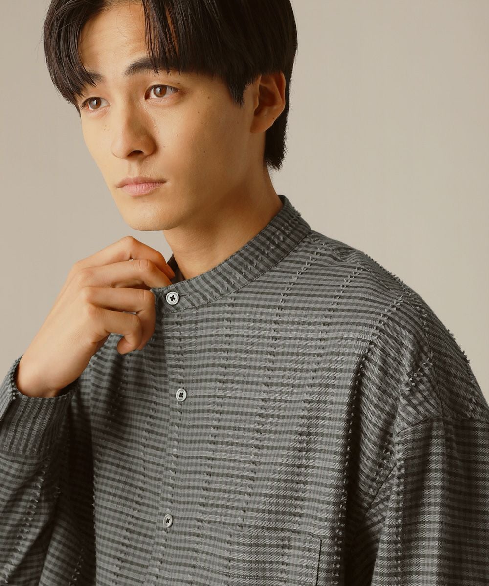 フリンジチェックバンドカラーシャツ