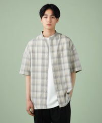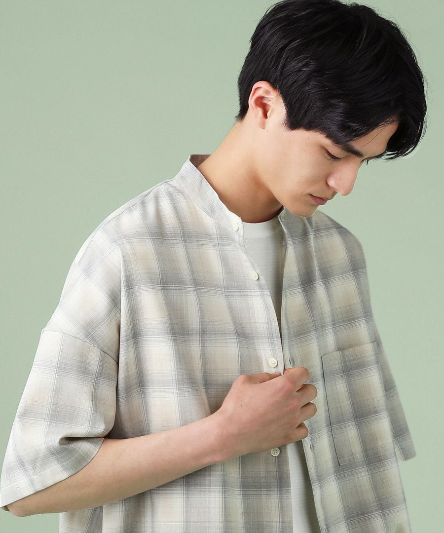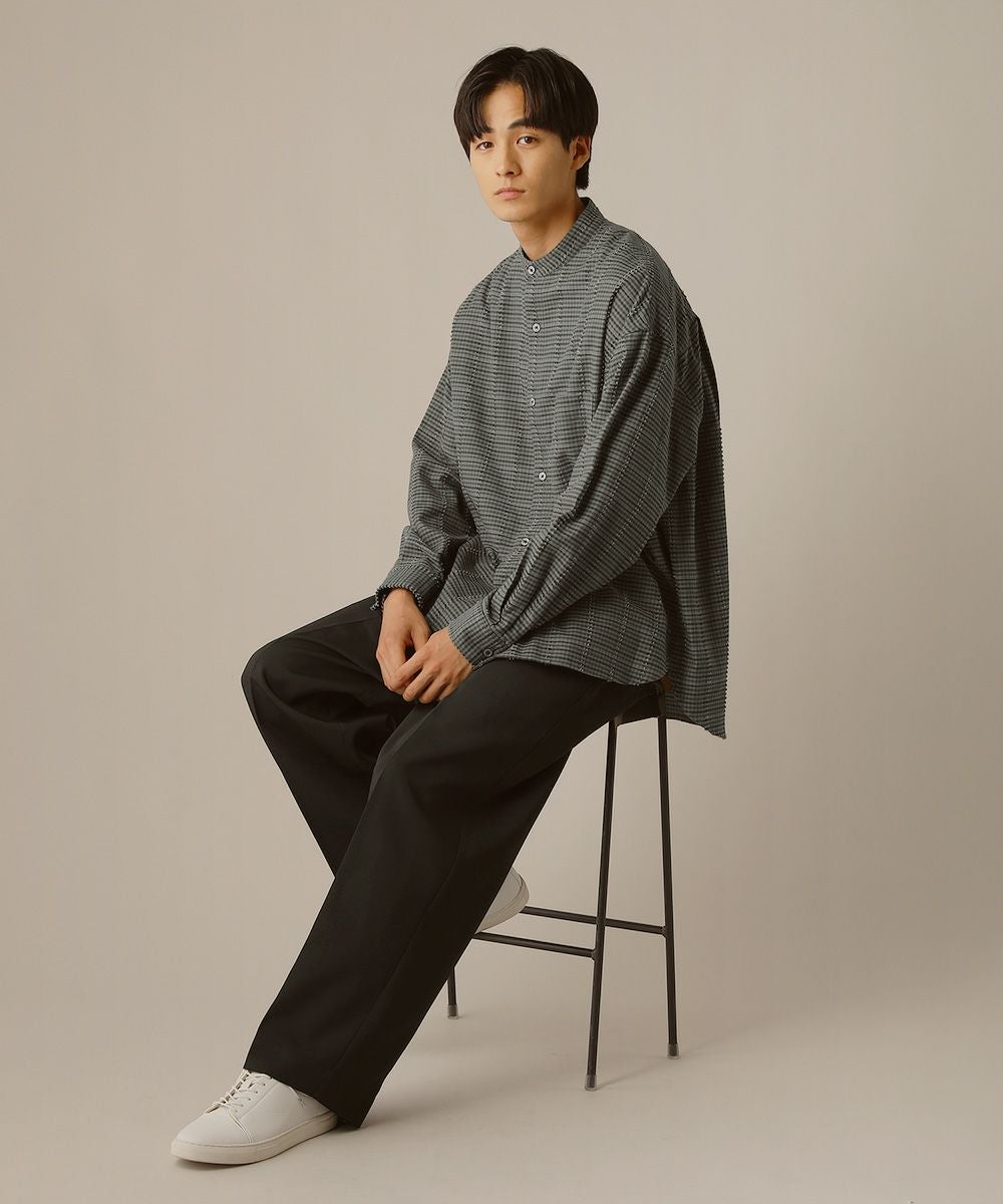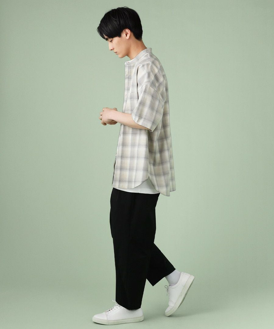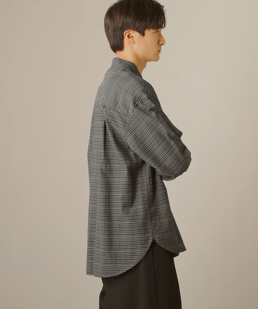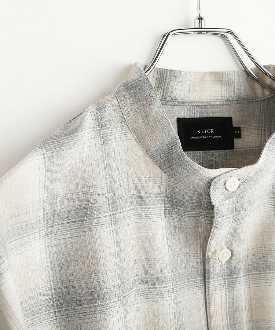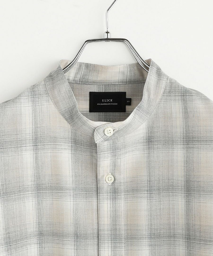 フリンジチェックバンドカラーシャツ