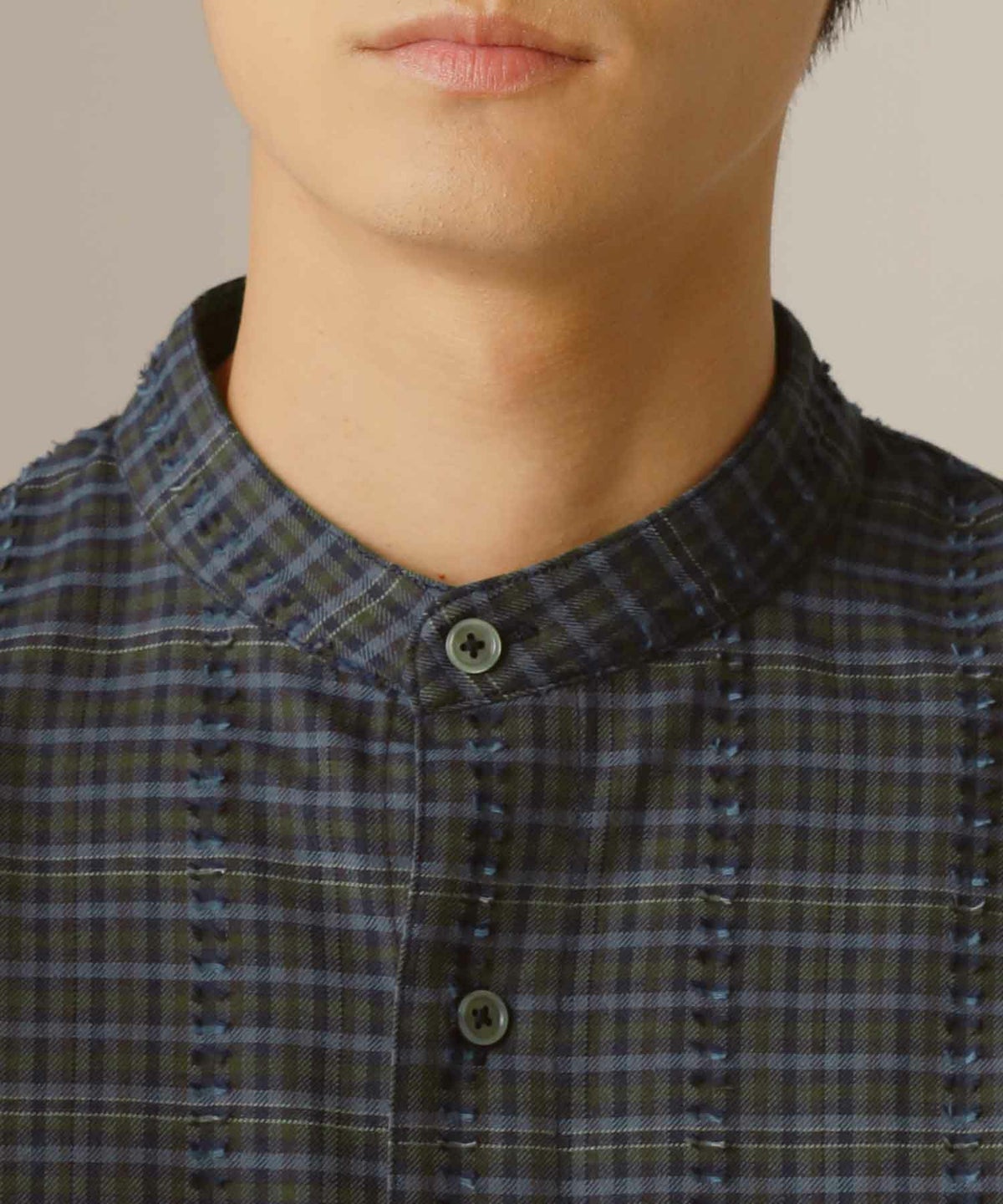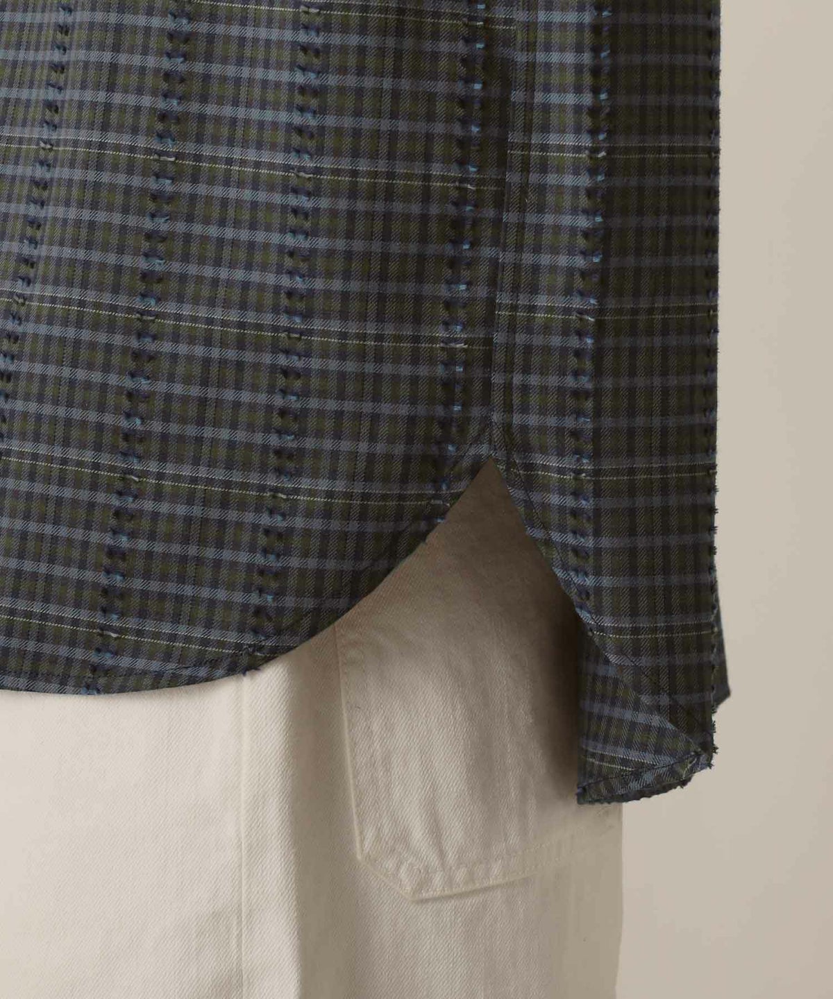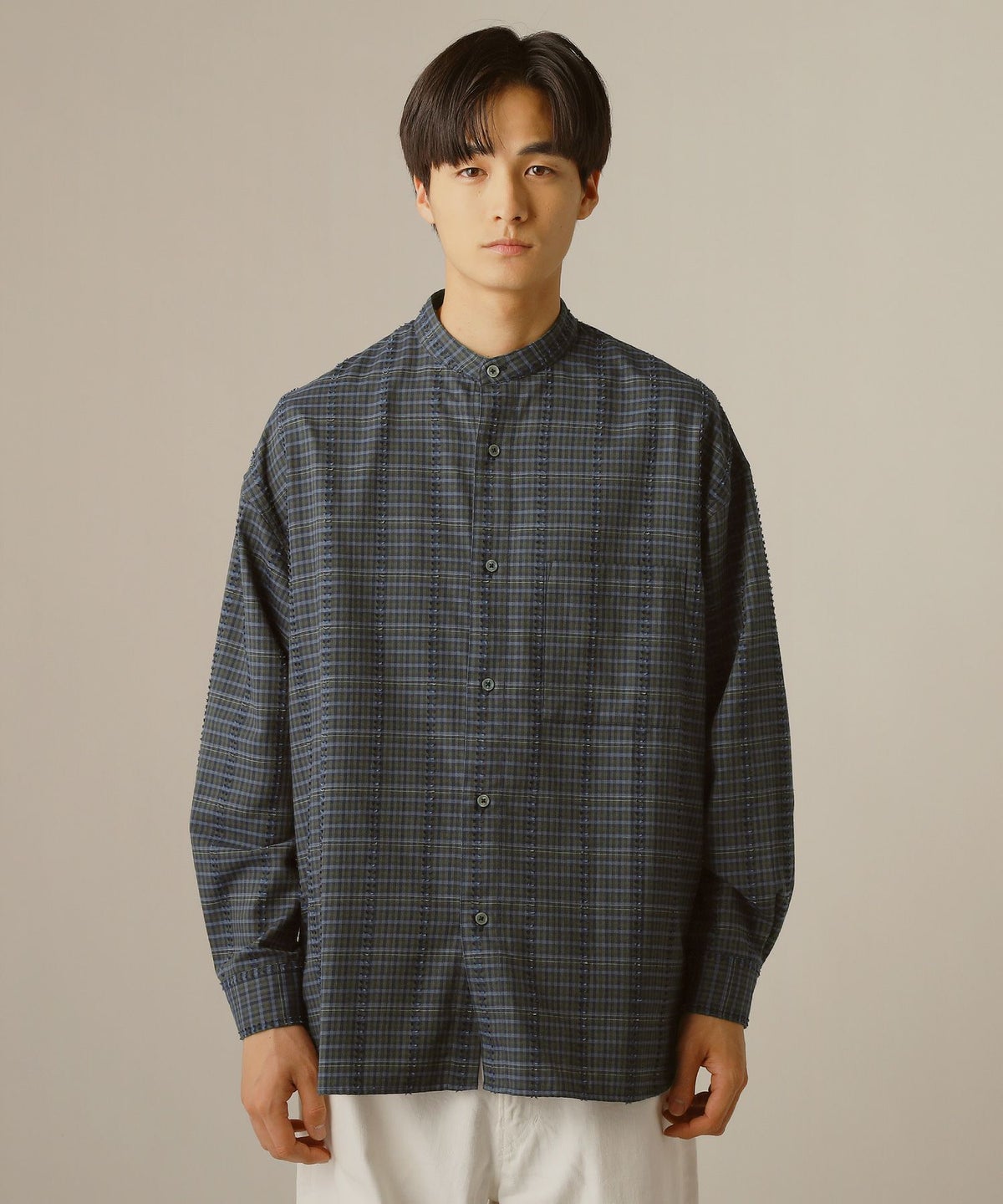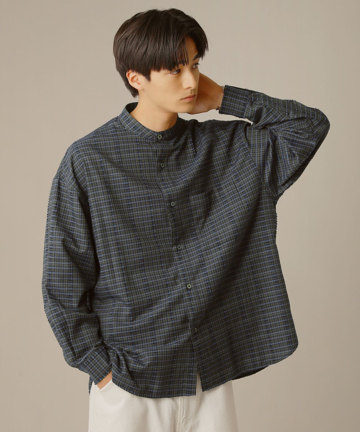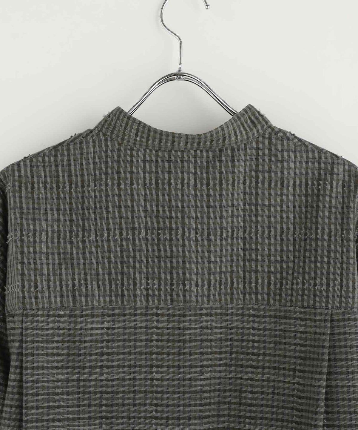 フリンジチェックバンドカラーシャツ