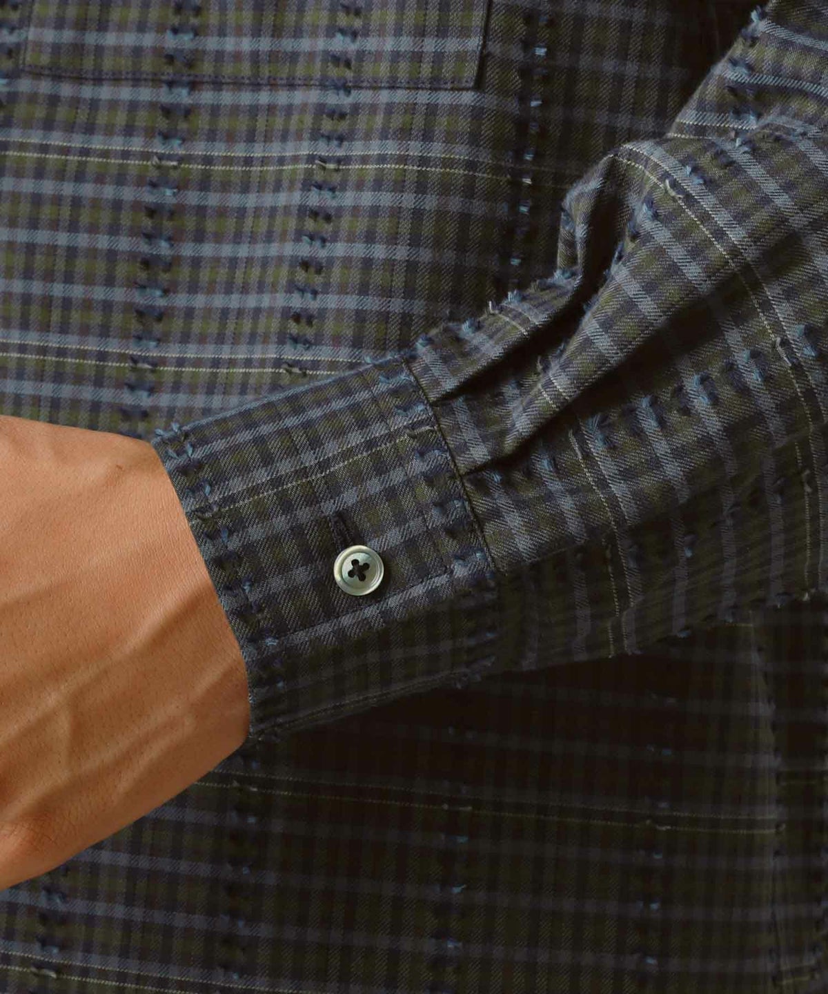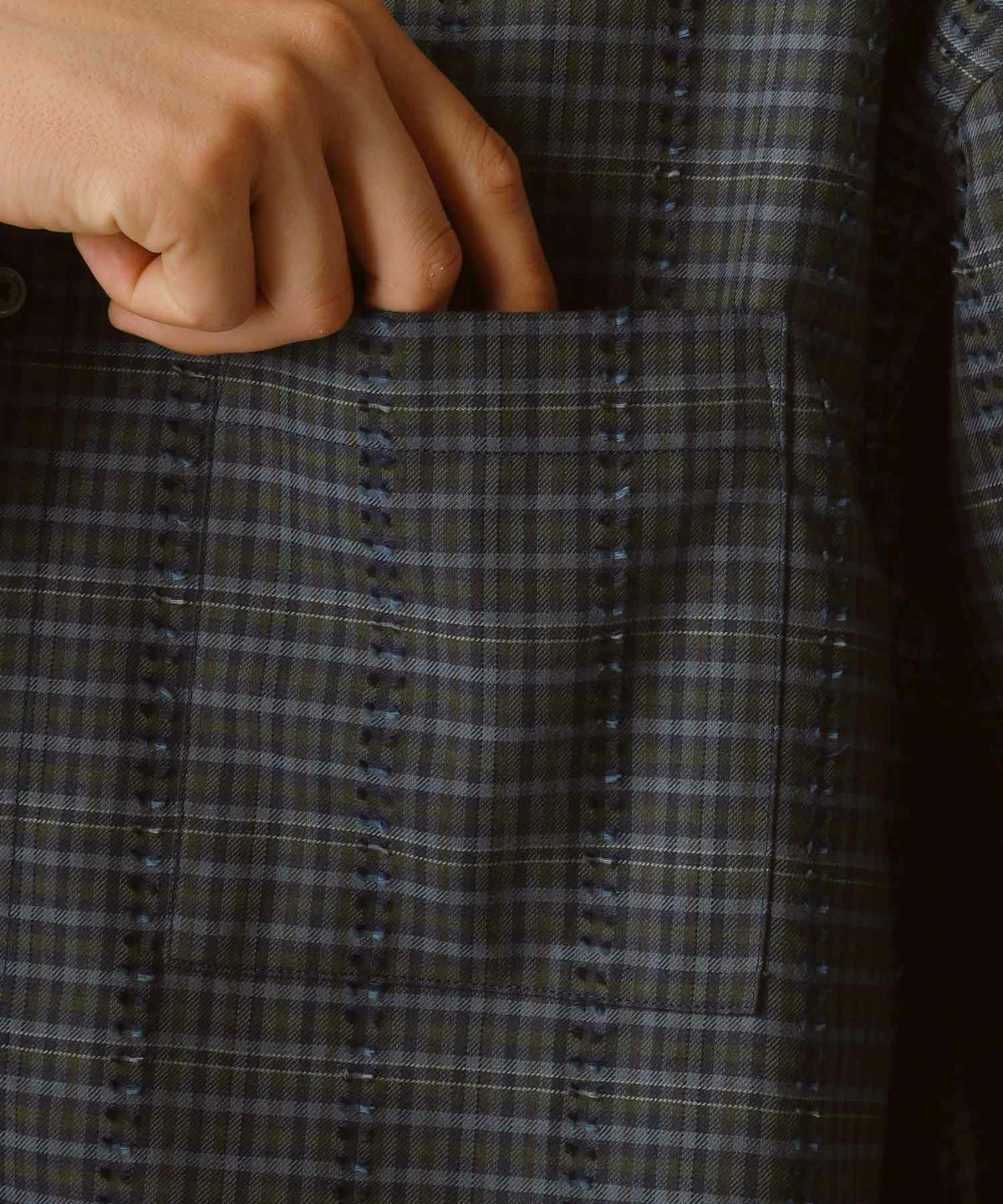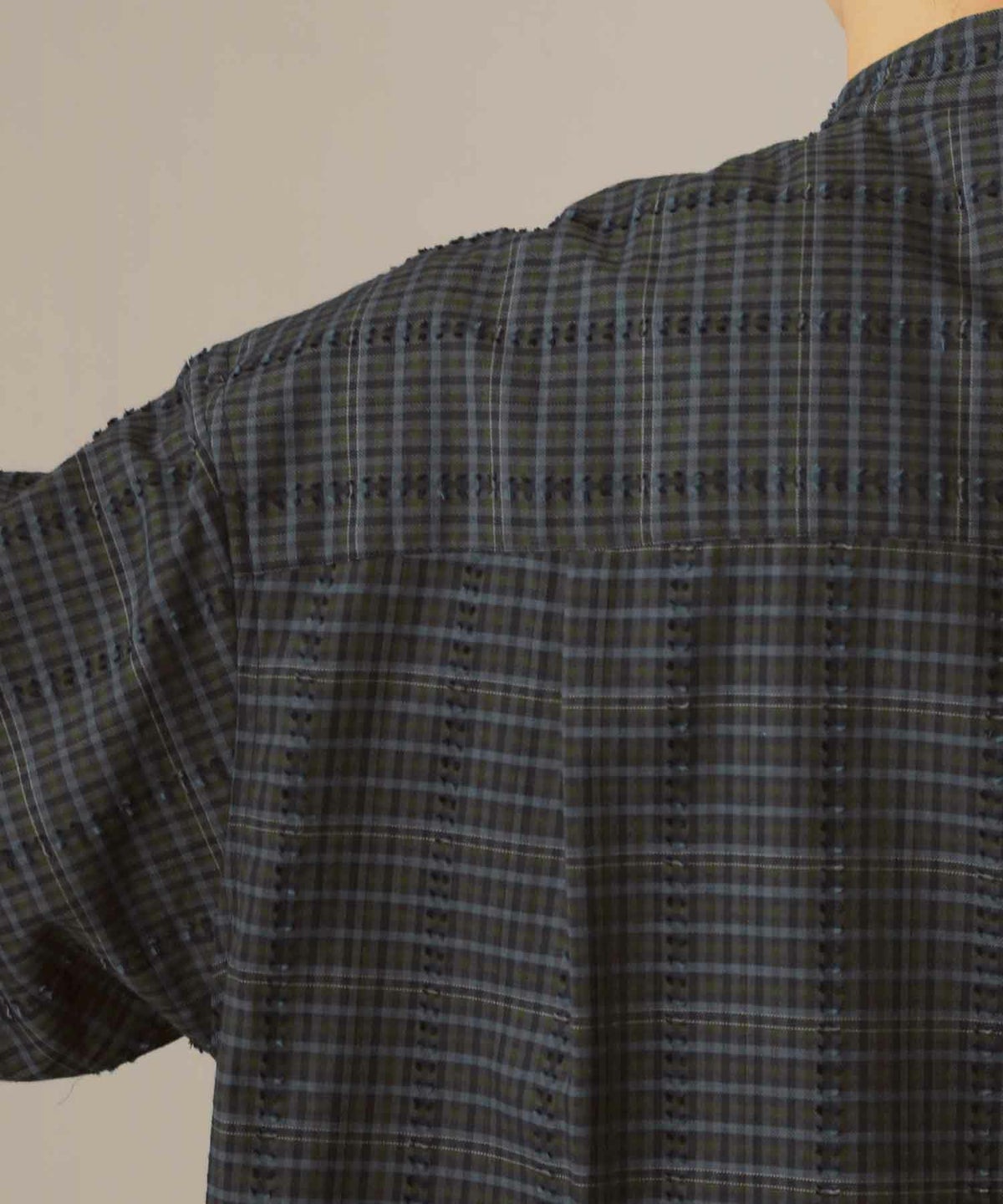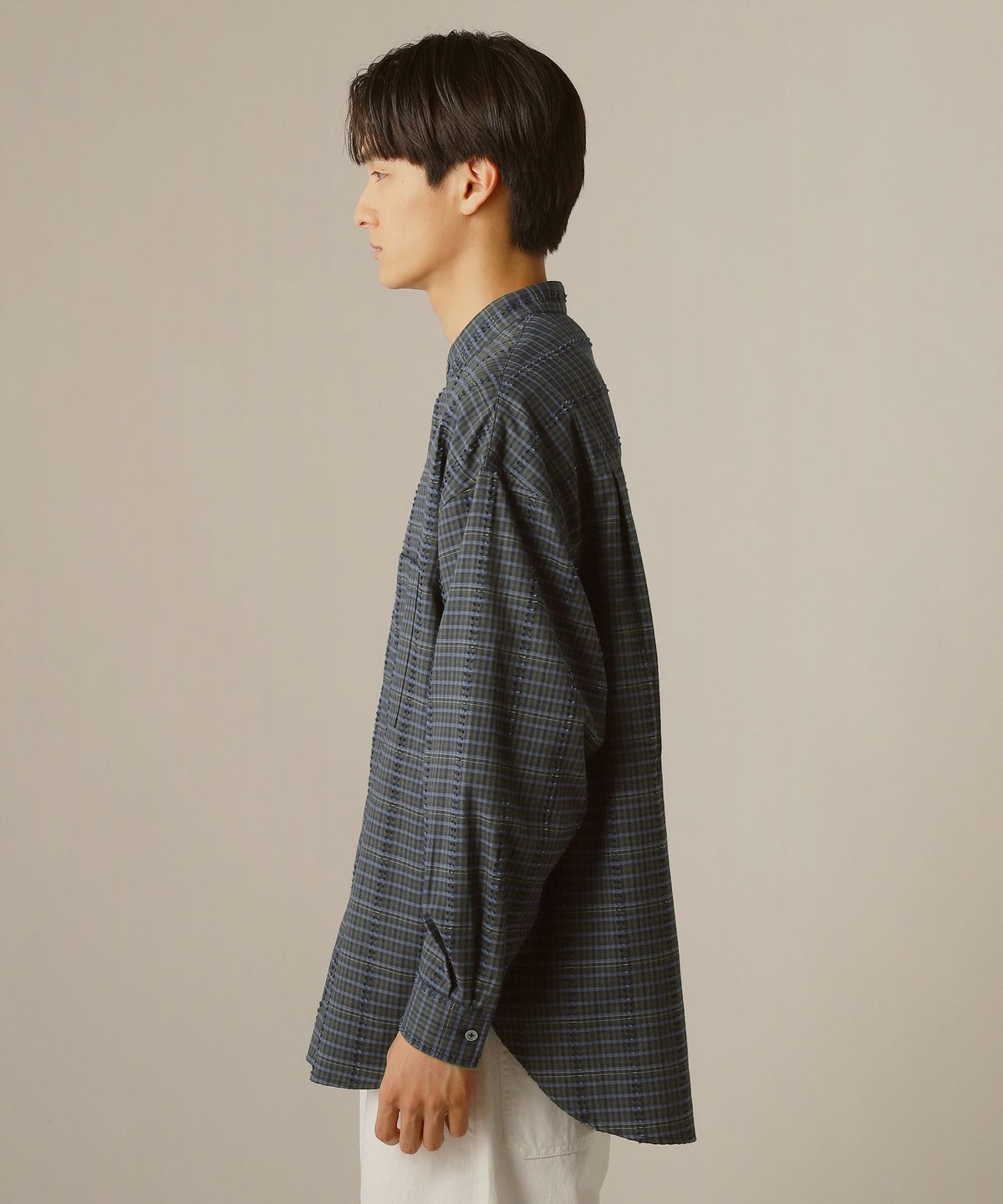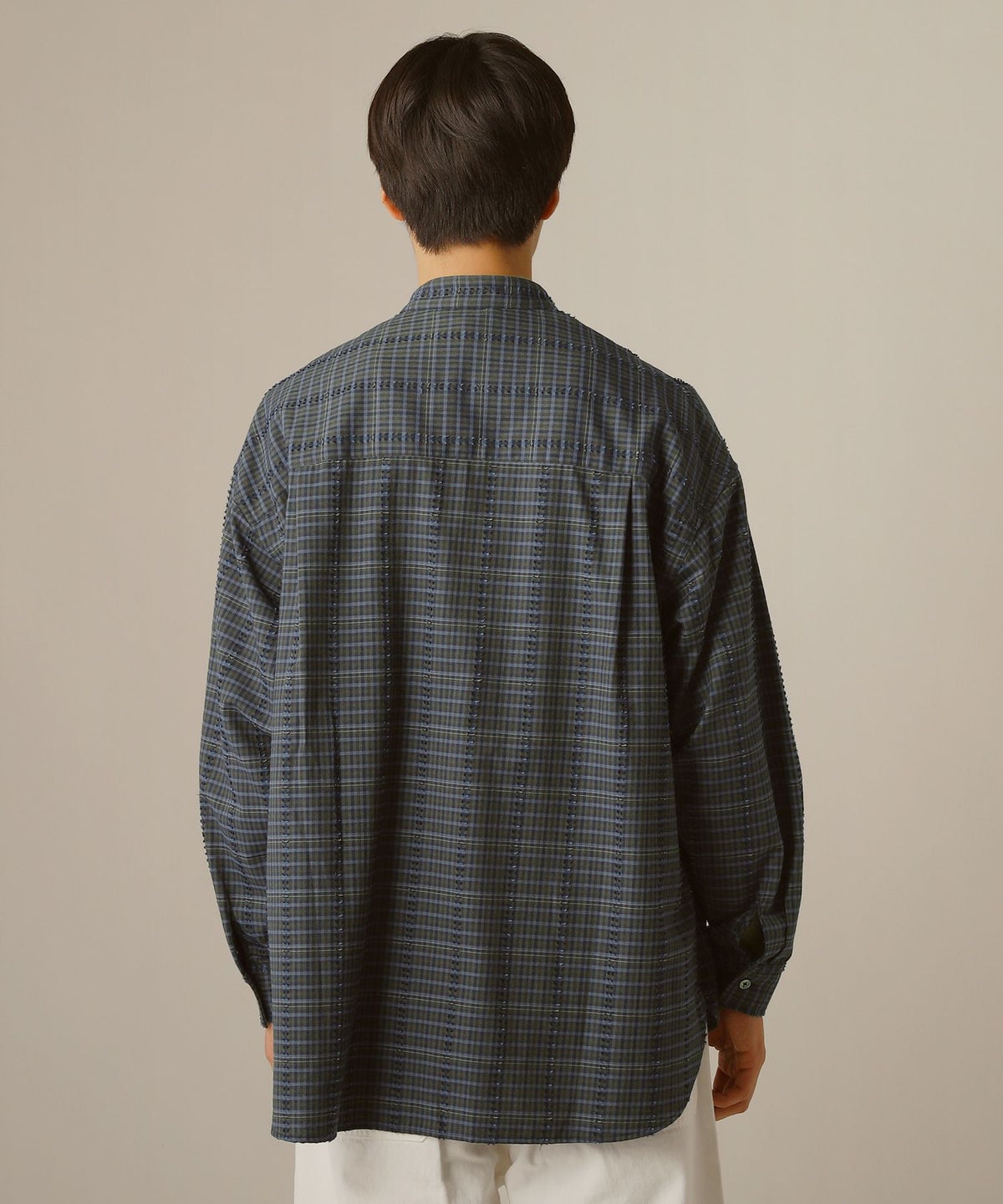 フリンジチェックバンドカラーシャツ