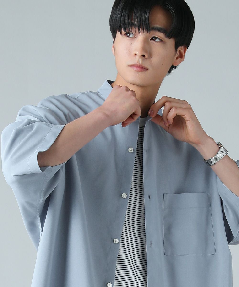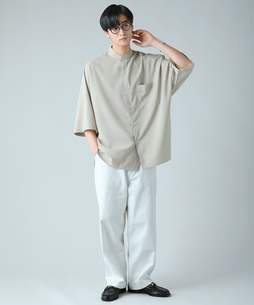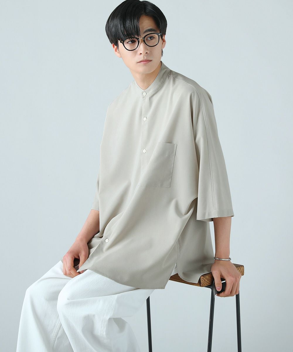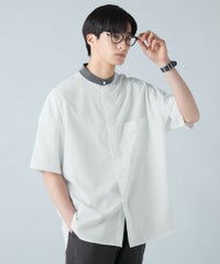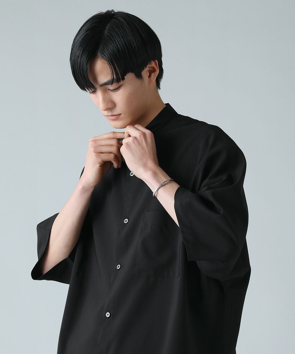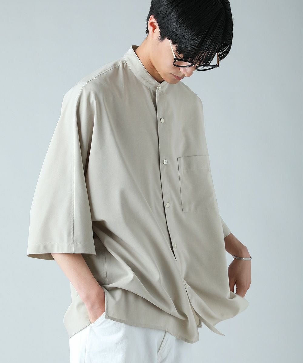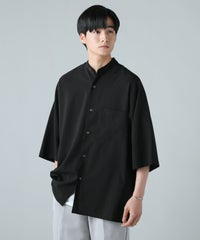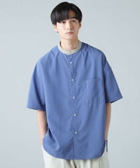 ドロップショルダー半袖バンドカラークレリックシャツ