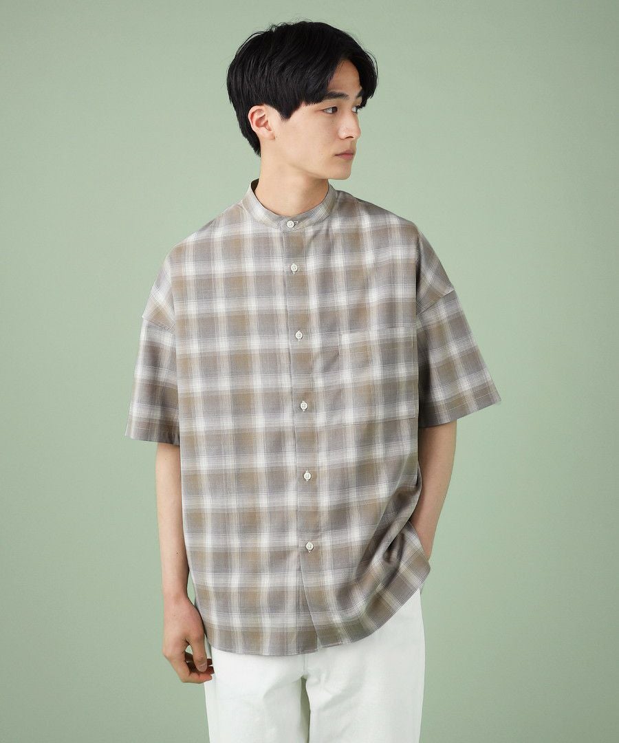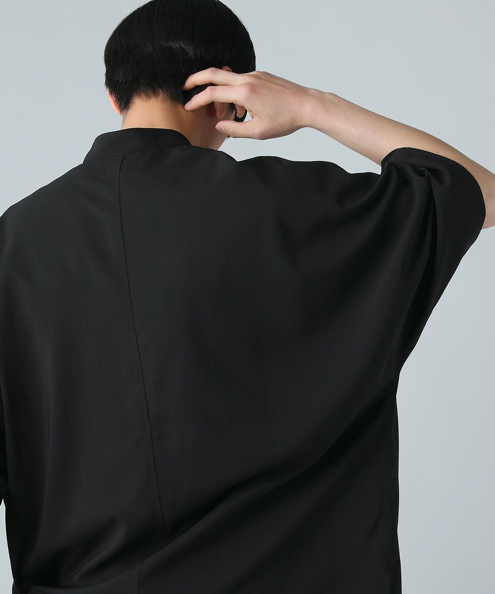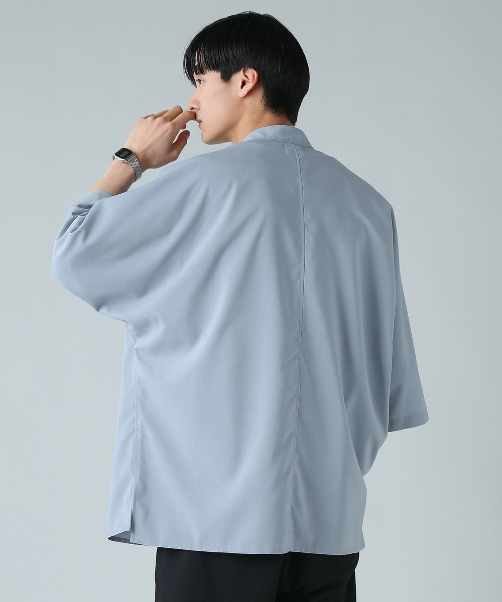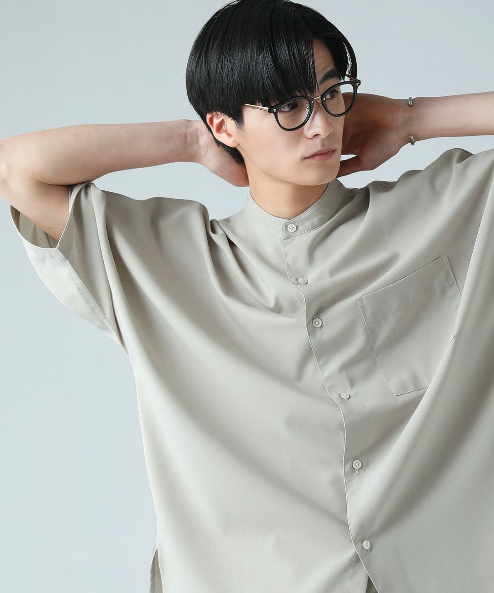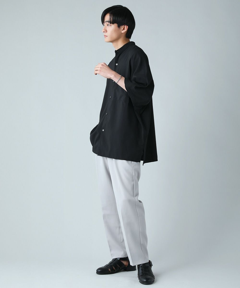 ドロップショルダー半袖バンドカラークレリックシャツ