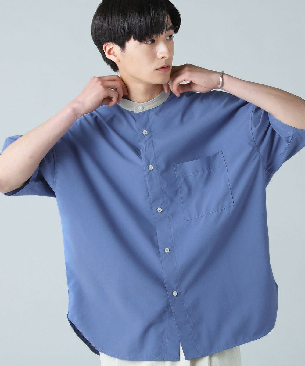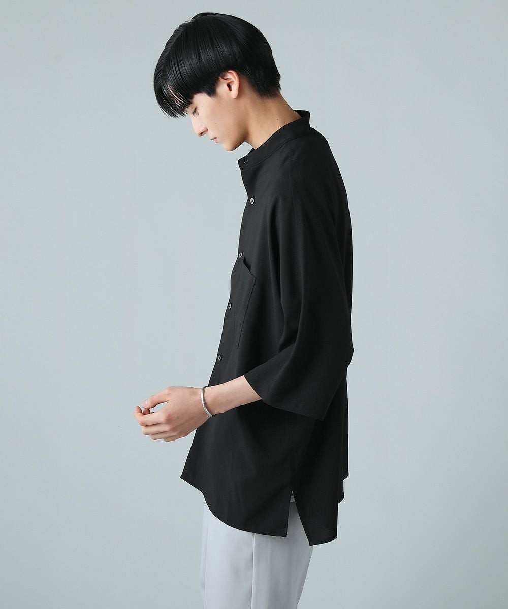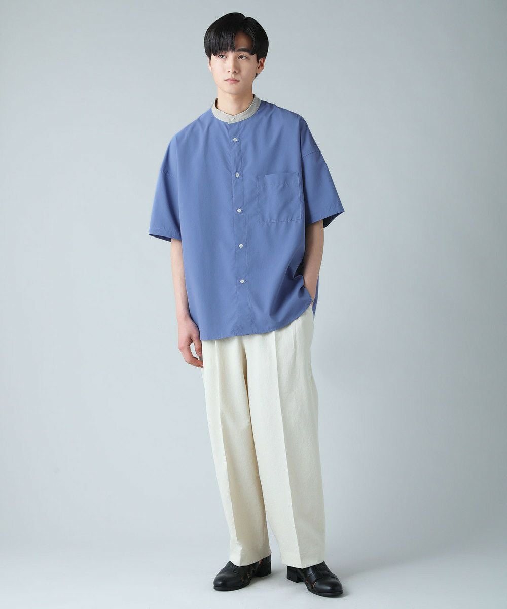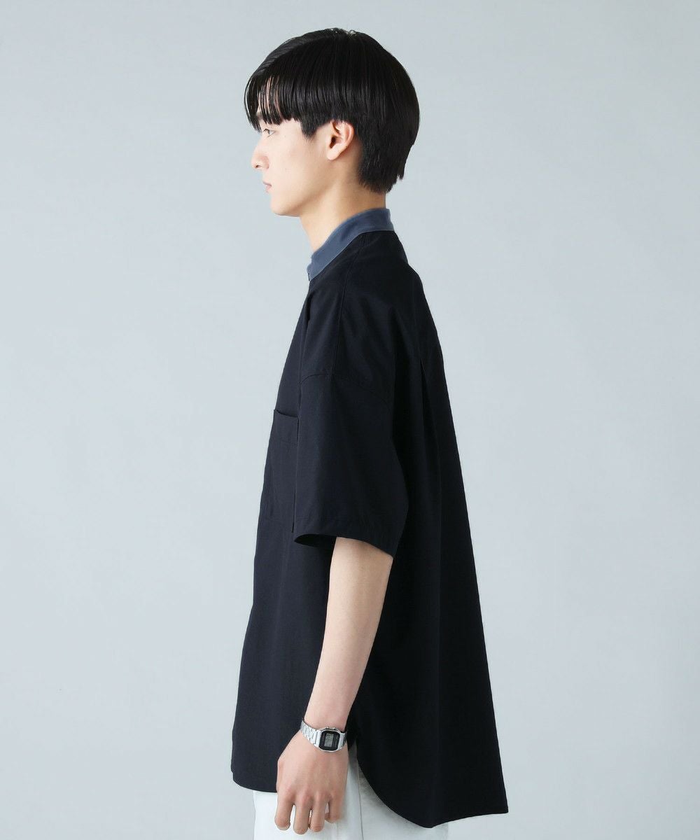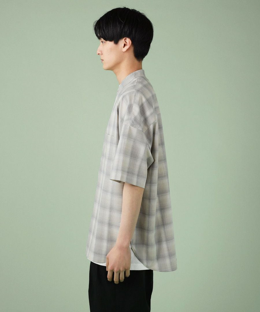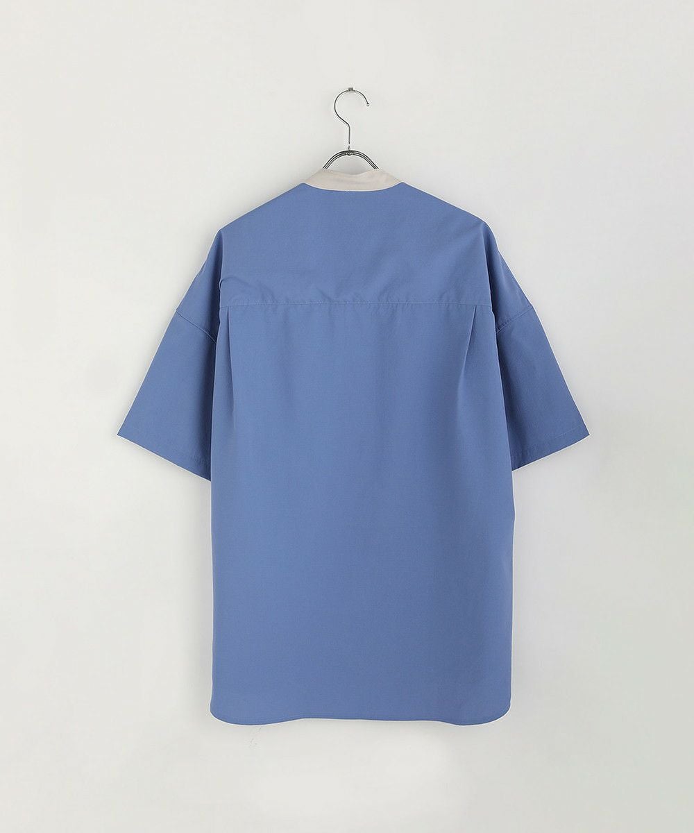 ドロップショルダー半袖バンドカラークレリックシャツ