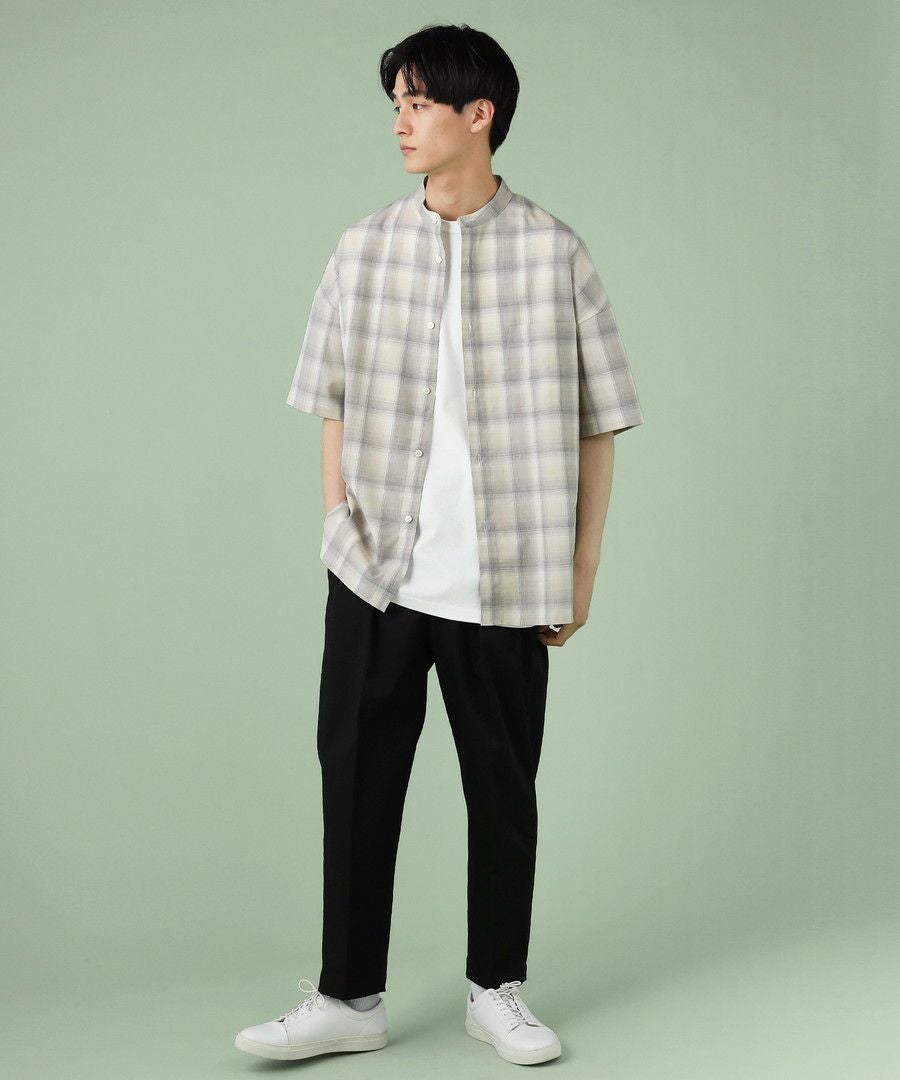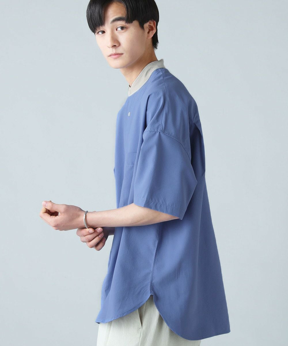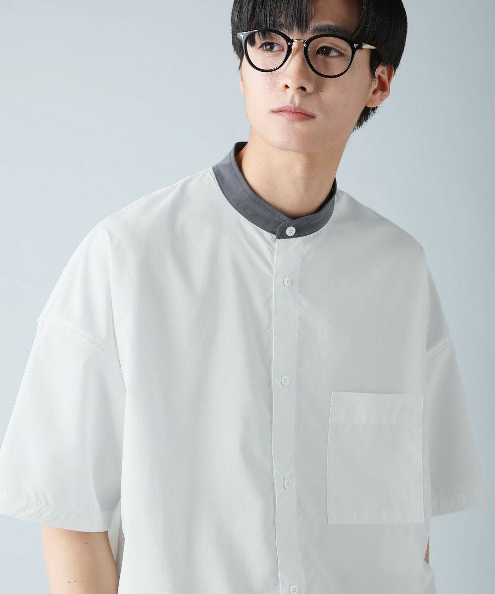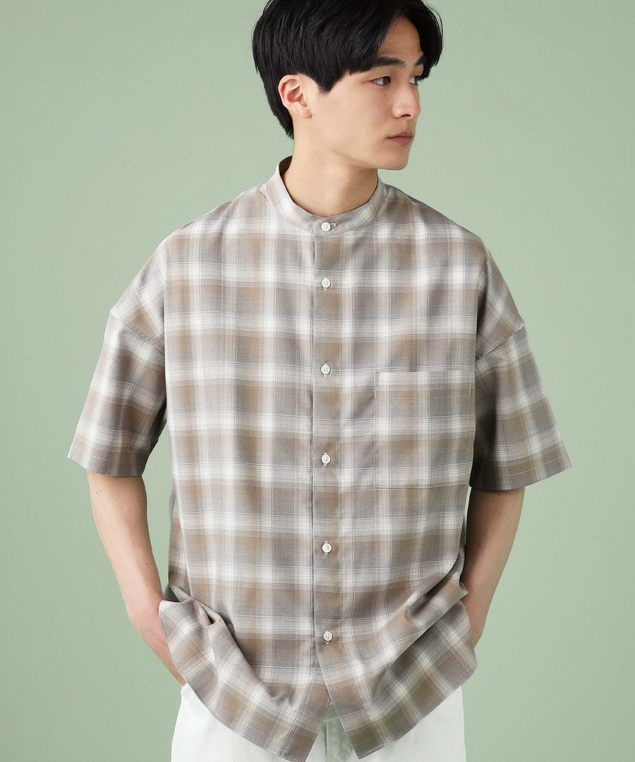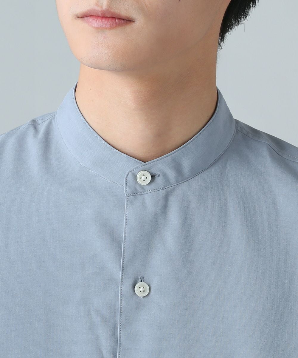 ドロップショルダー半袖バンドカラークレリックシャツ