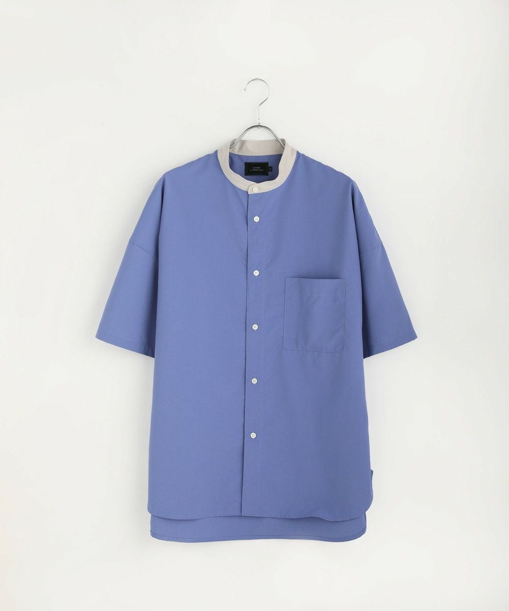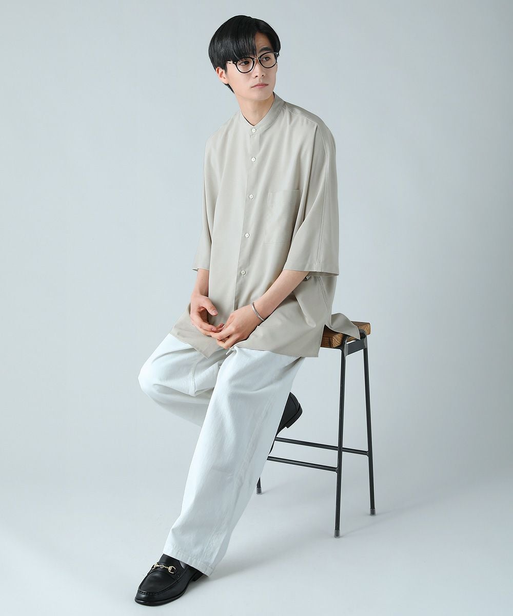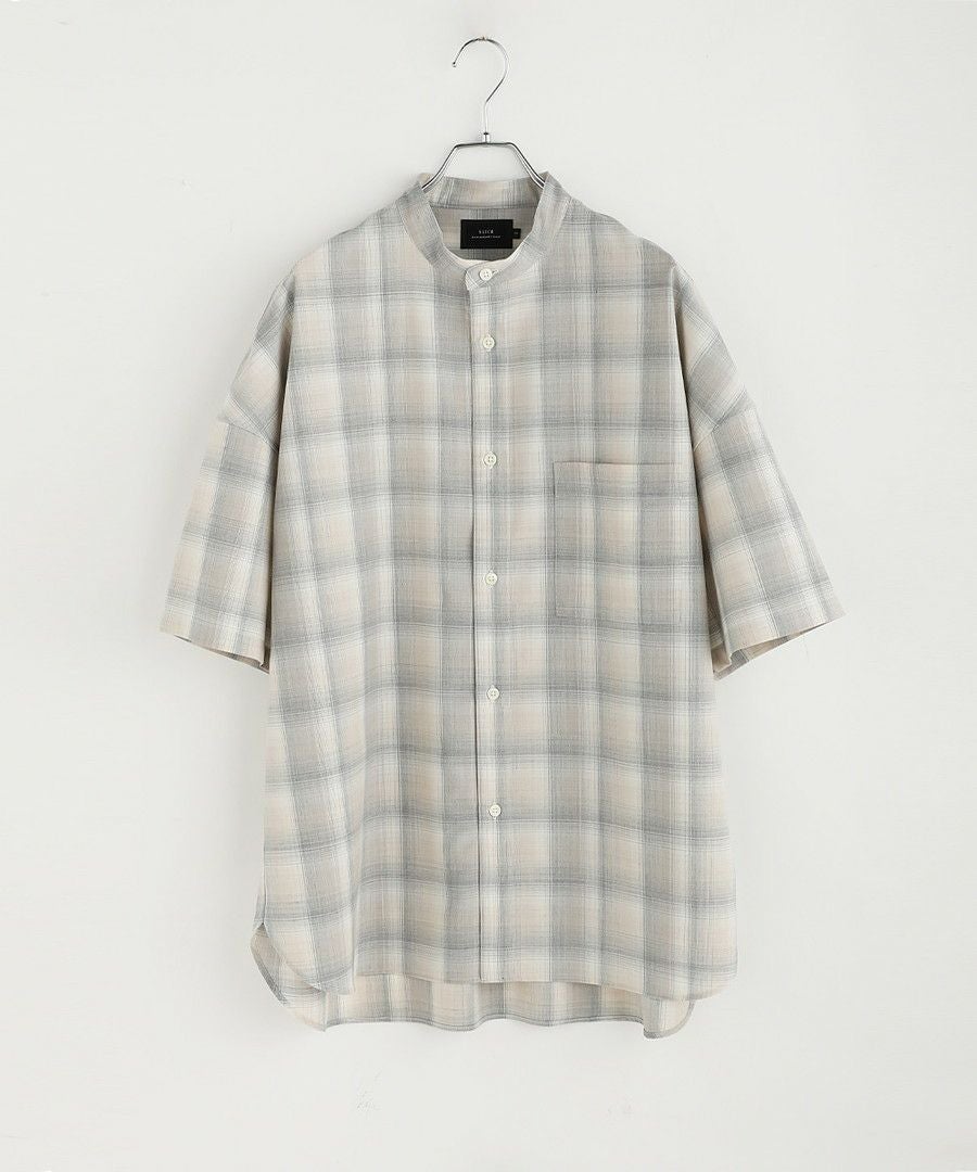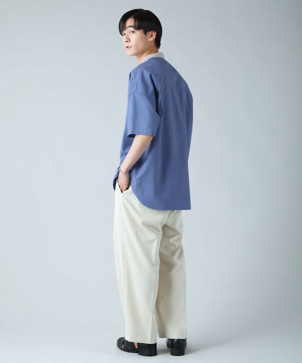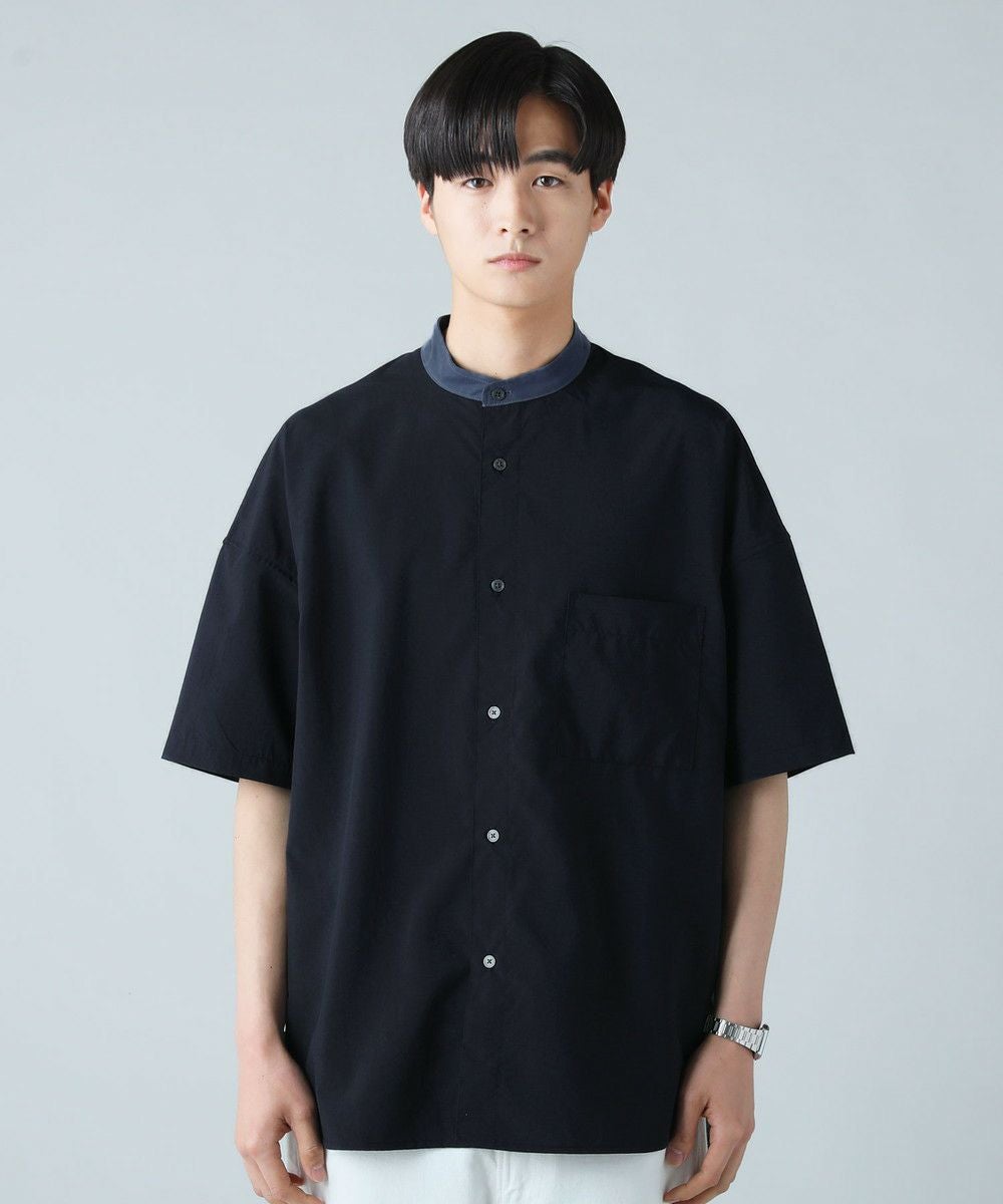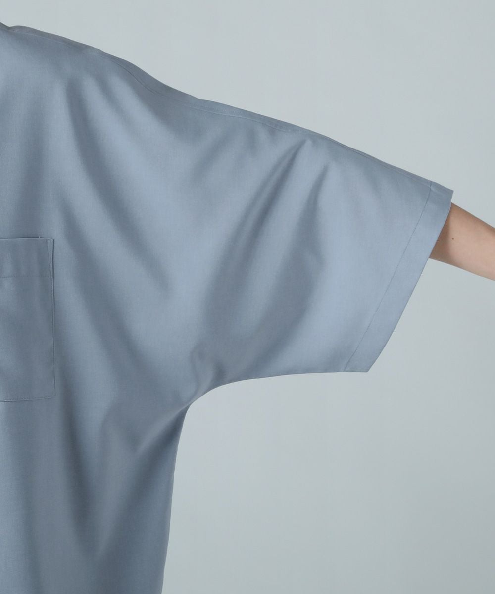 ドロップショルダー半袖バンドカラークレリックシャツ
