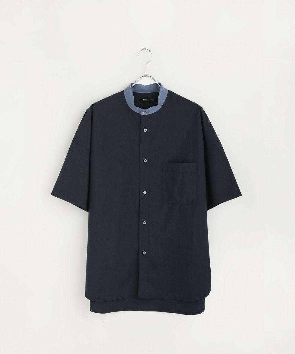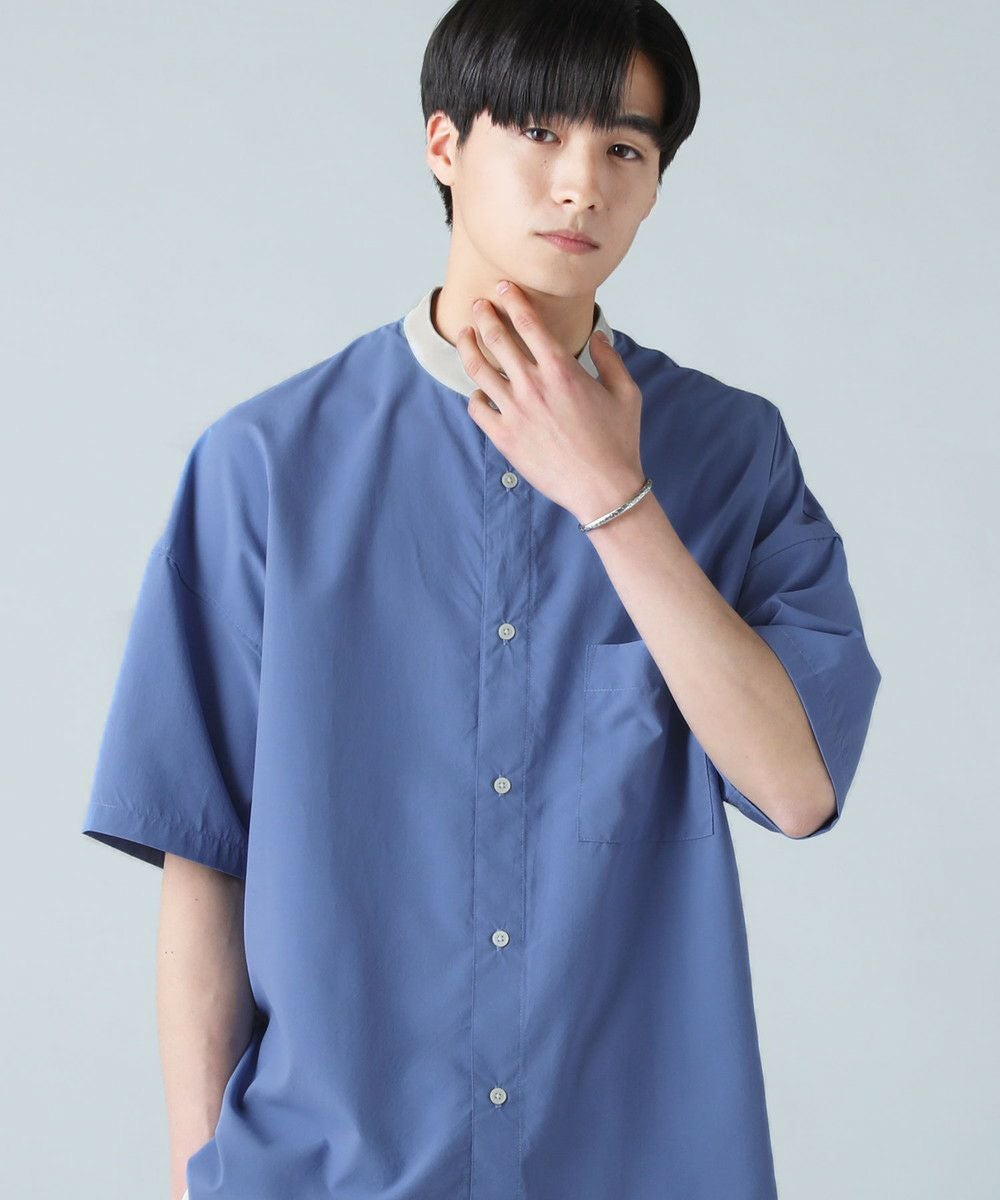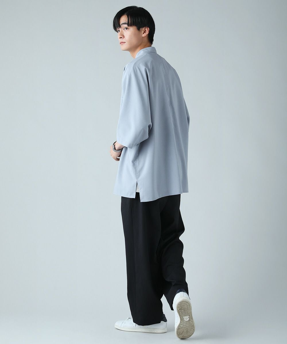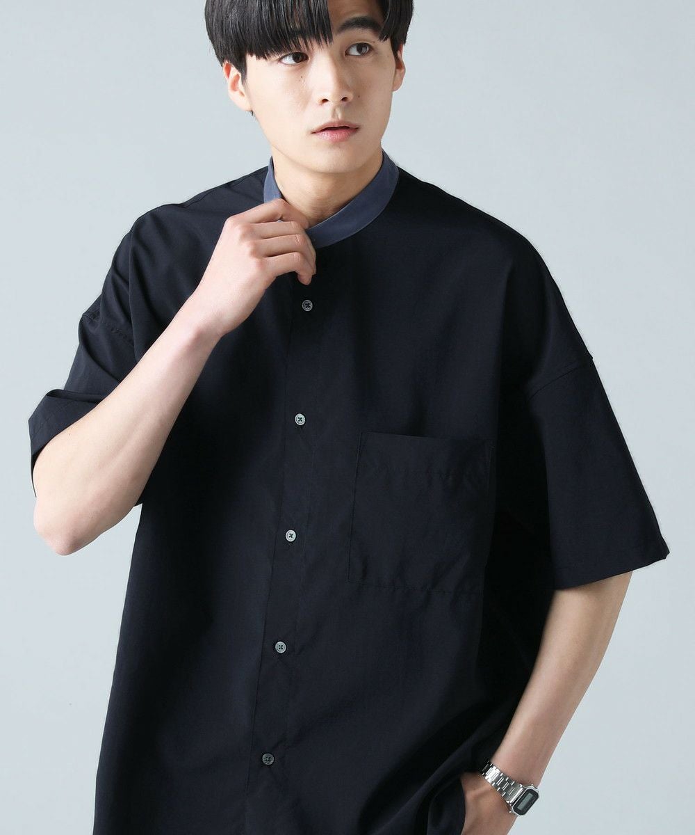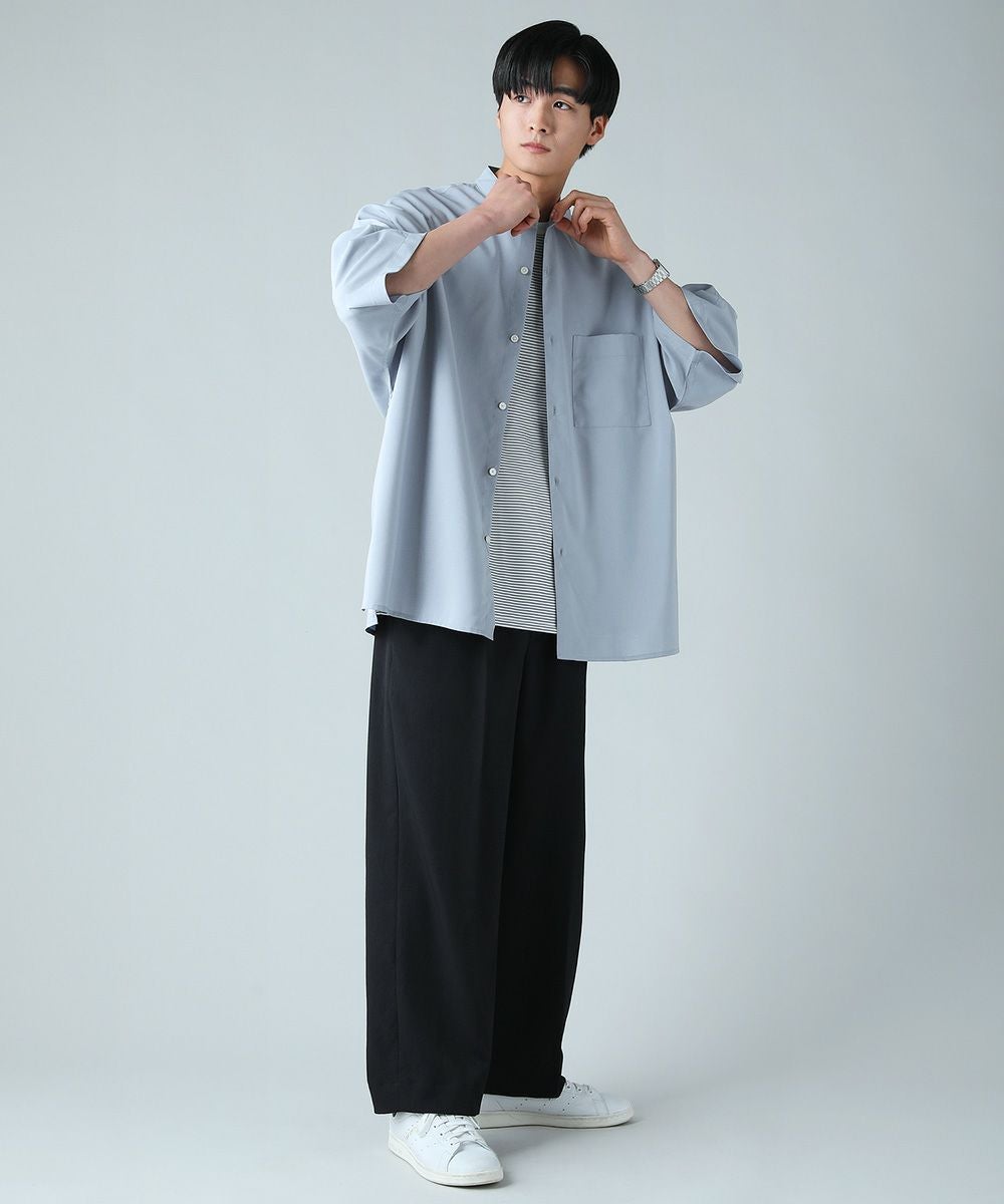 ドロップショルダー半袖バンドカラークレリックシャツ