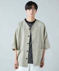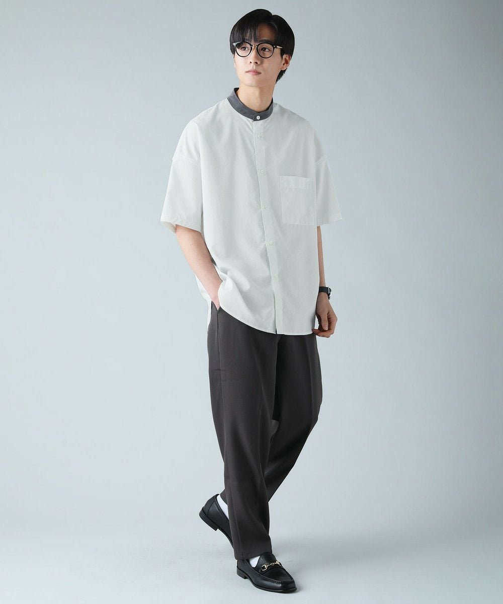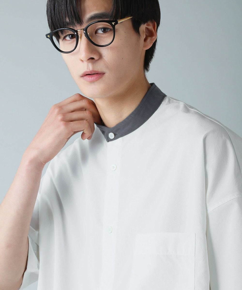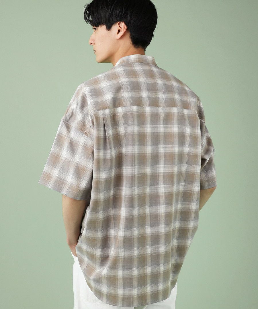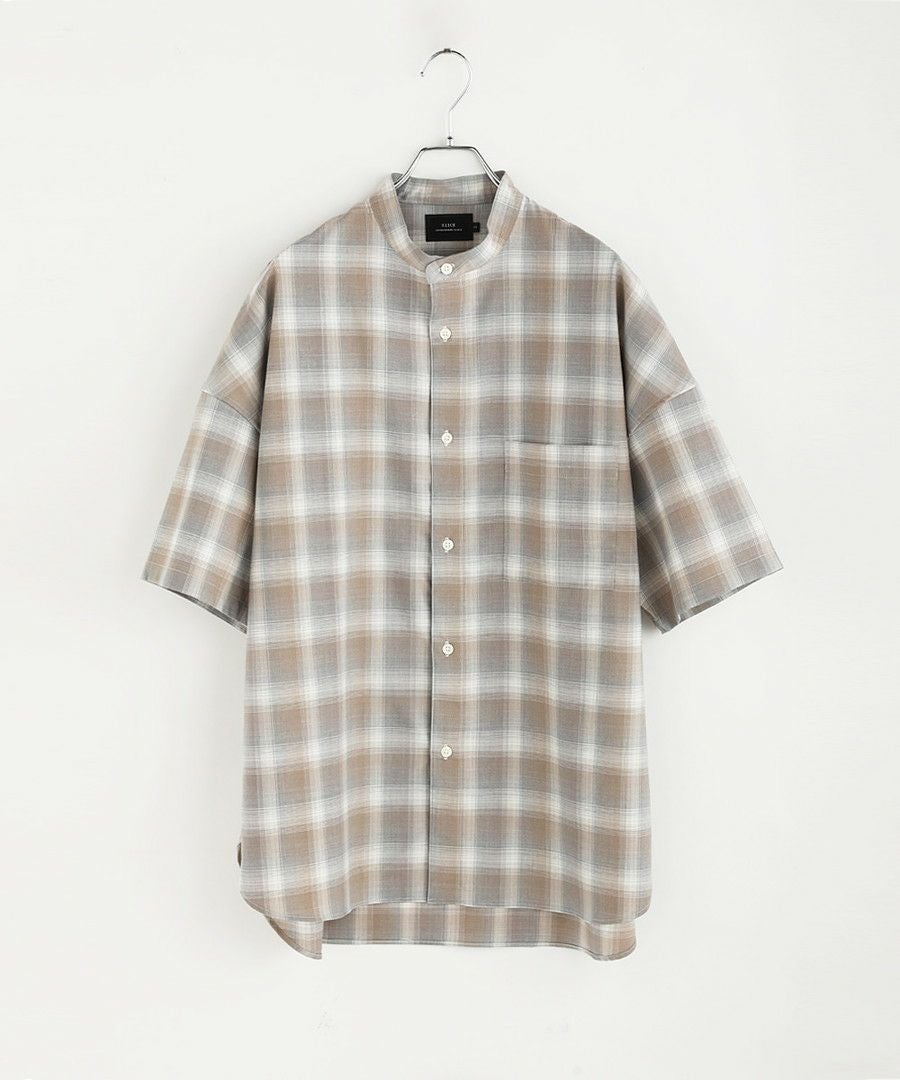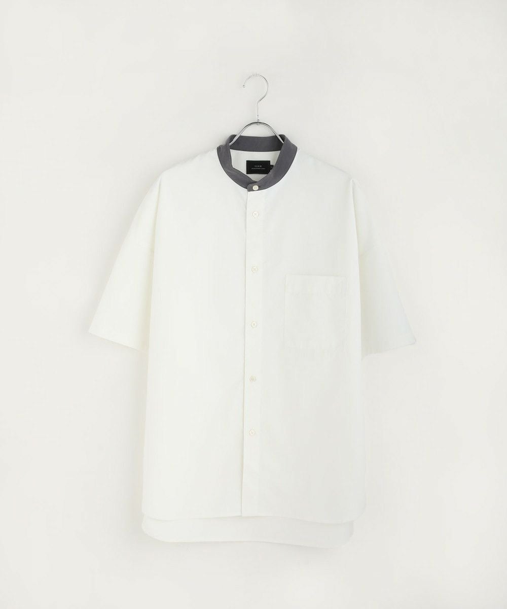 ドロップショルダー半袖バンドカラークレリックシャツ