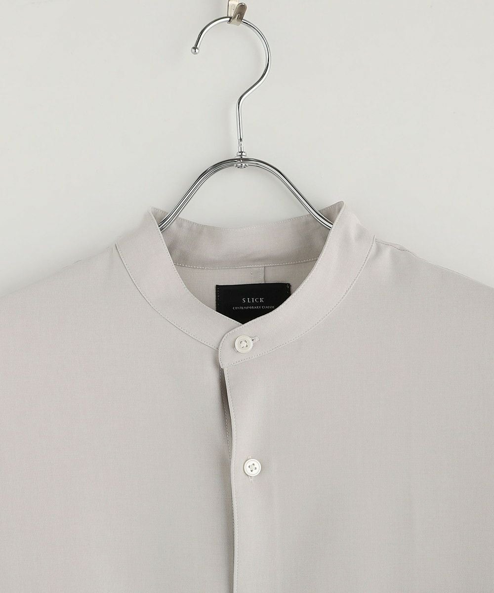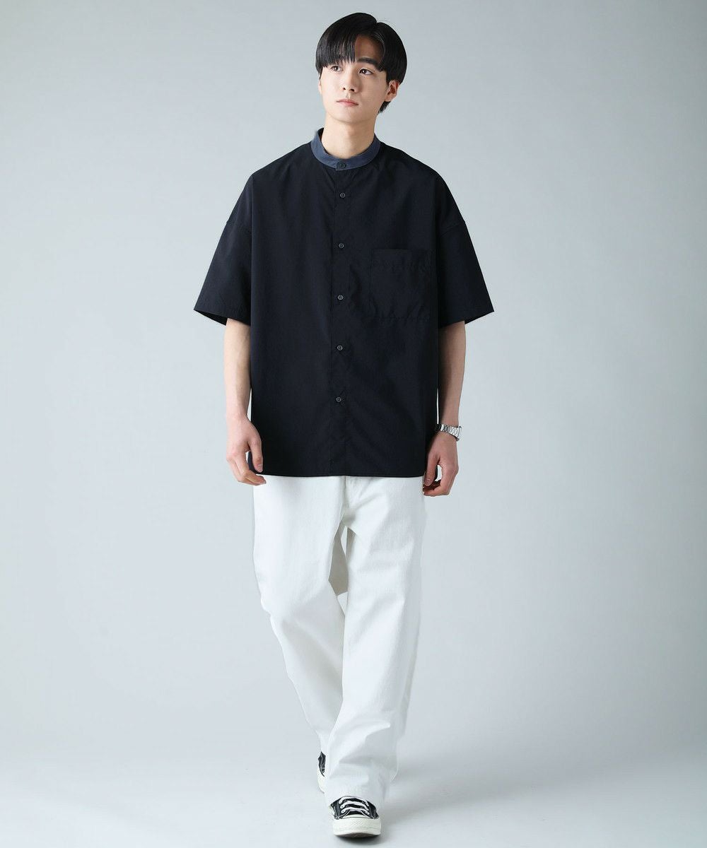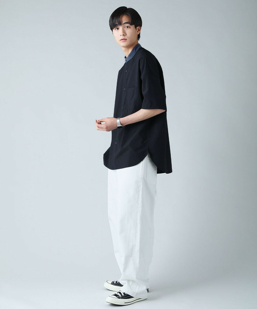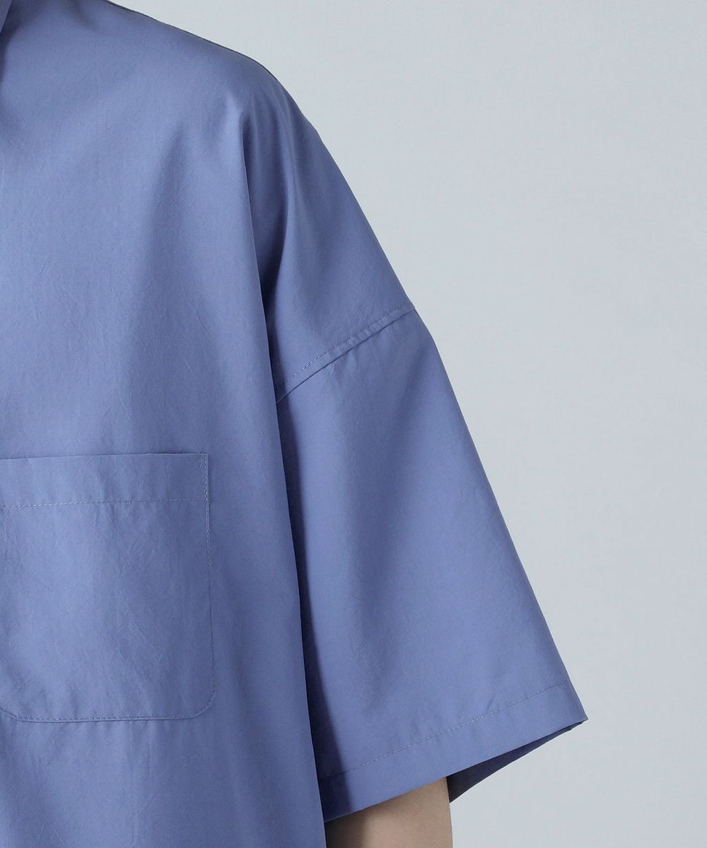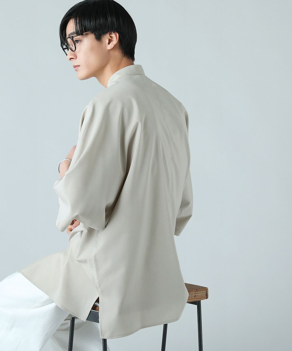 ドロップショルダー半袖バンドカラークレリックシャツ