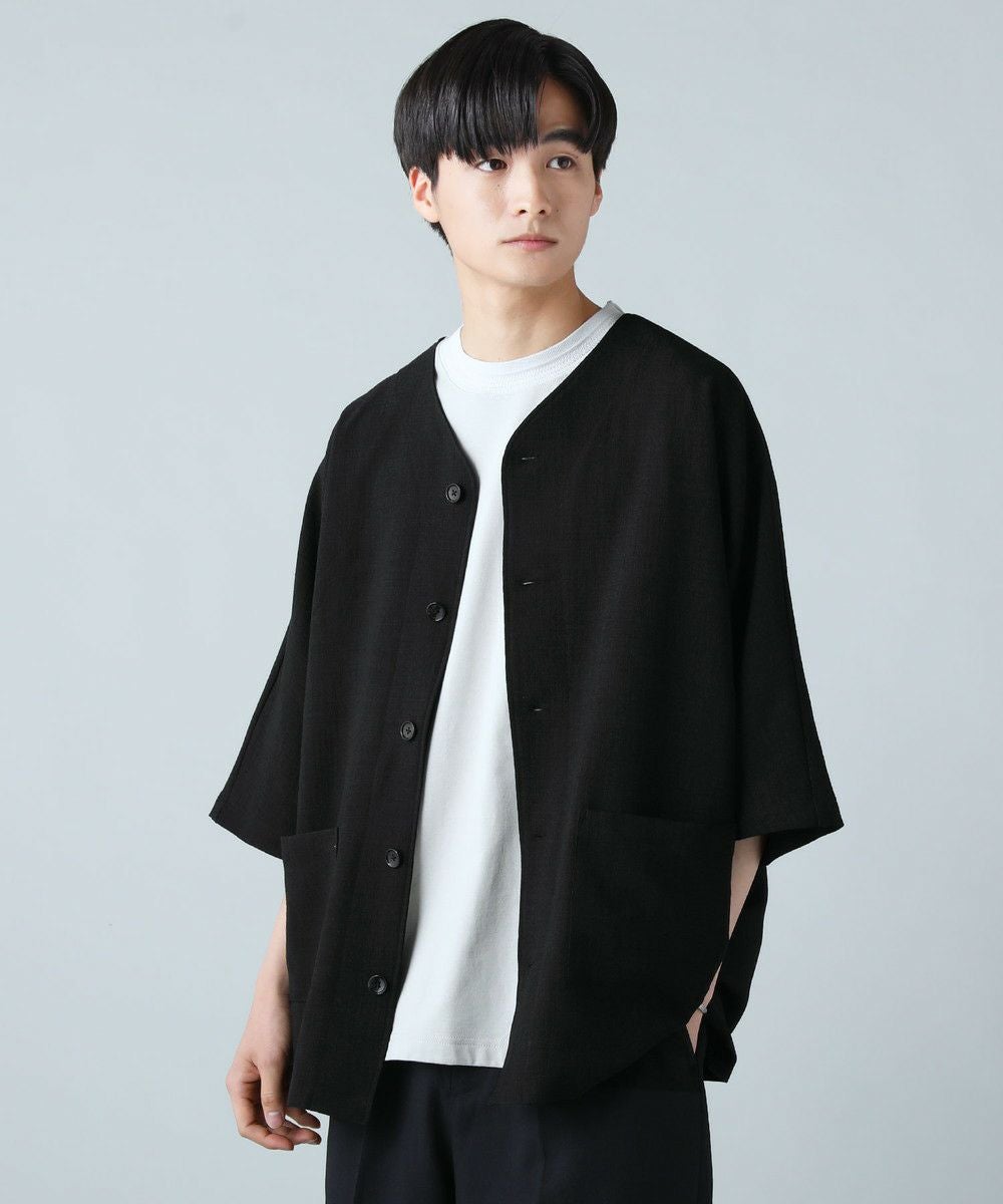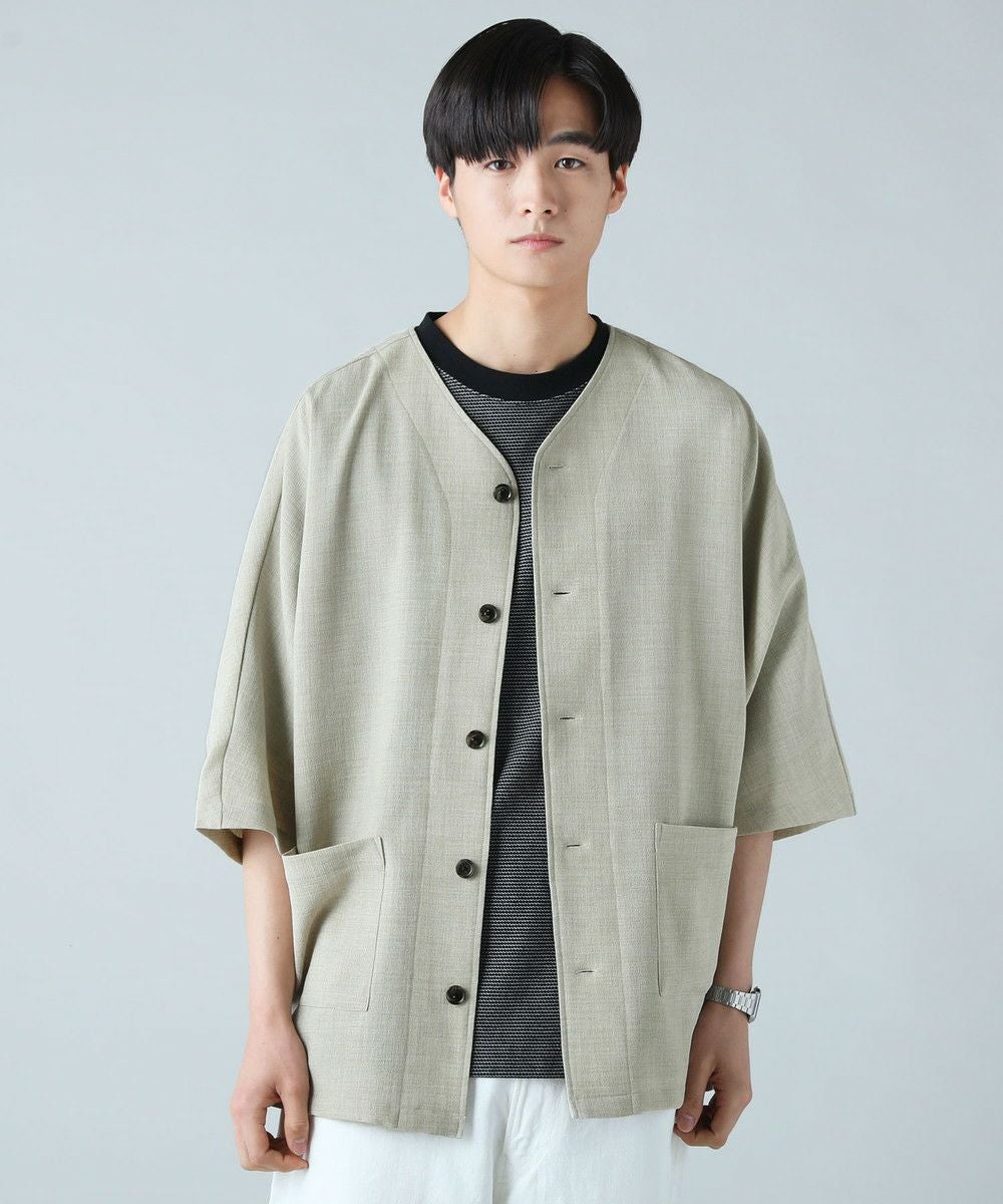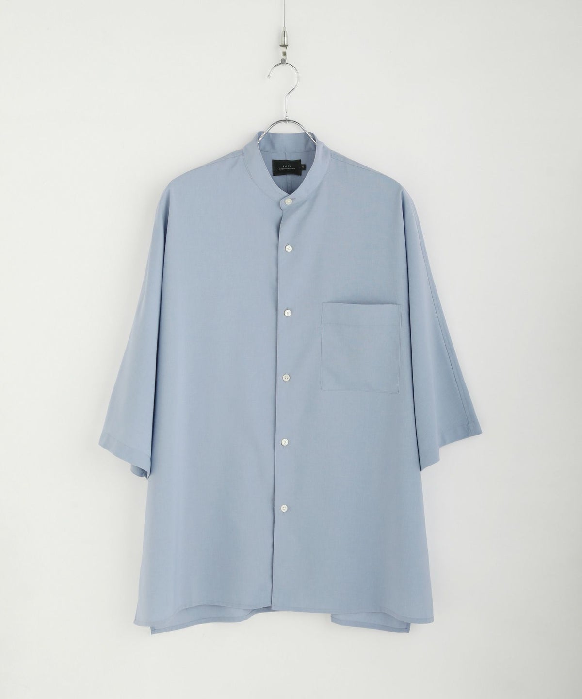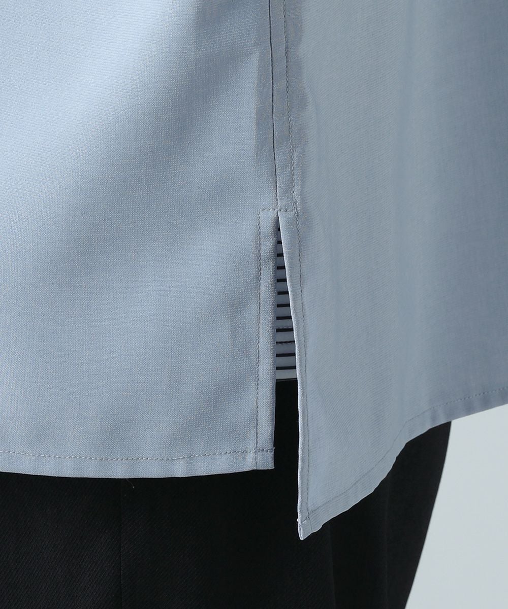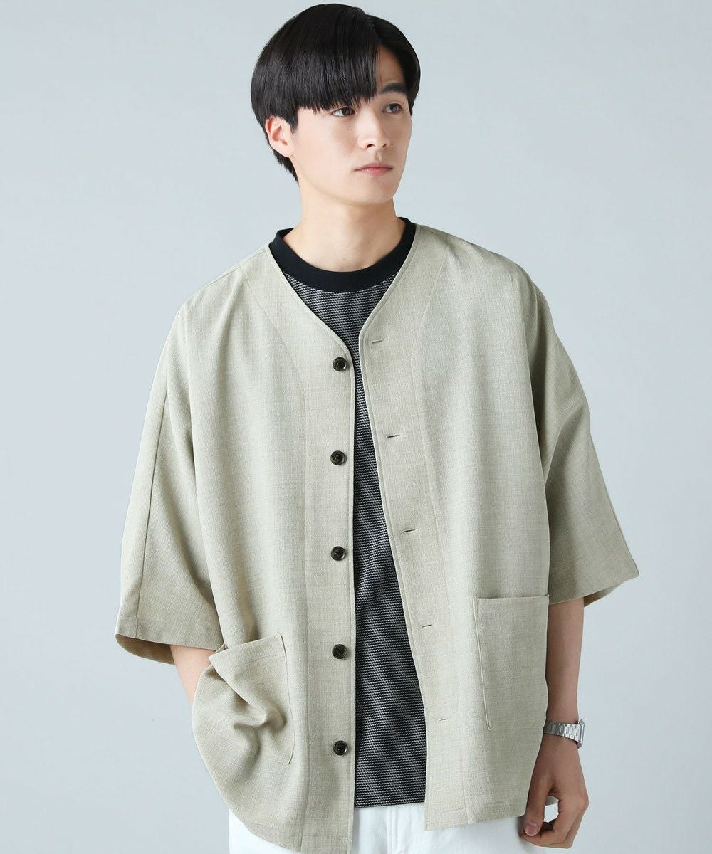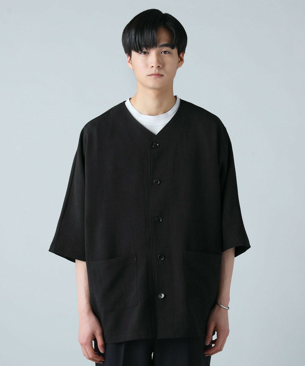 ドロップショルダー半袖バンドカラークレリックシャツ