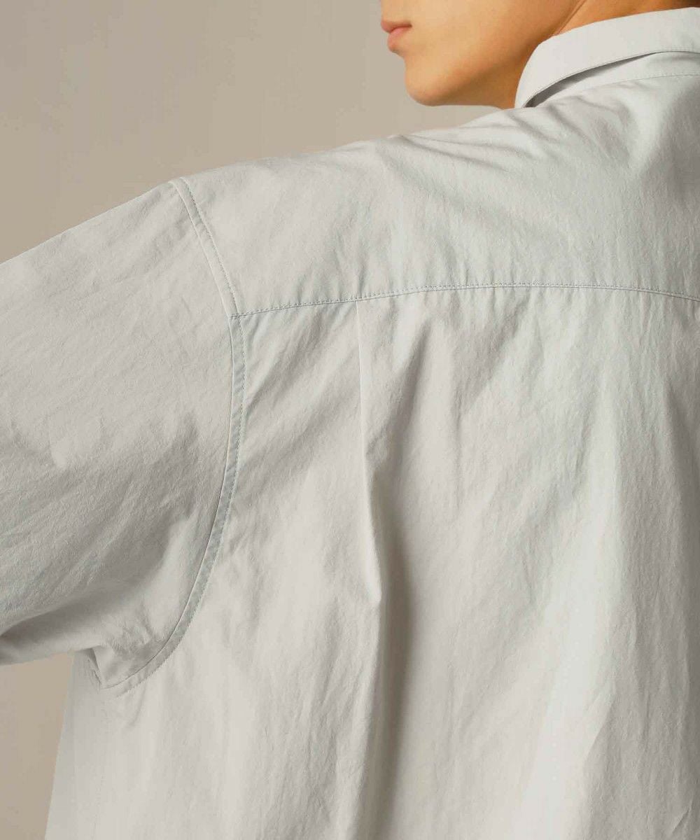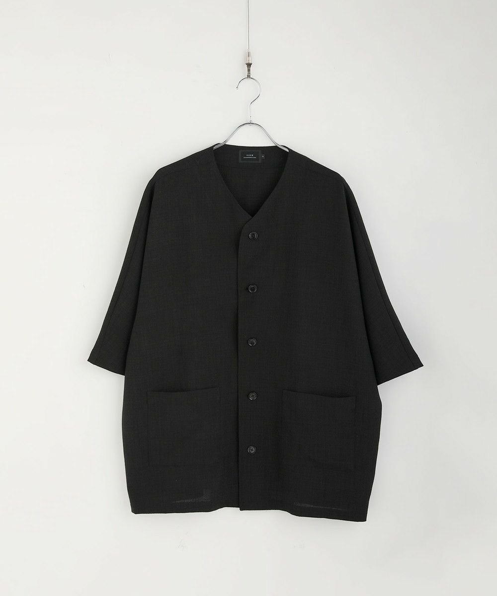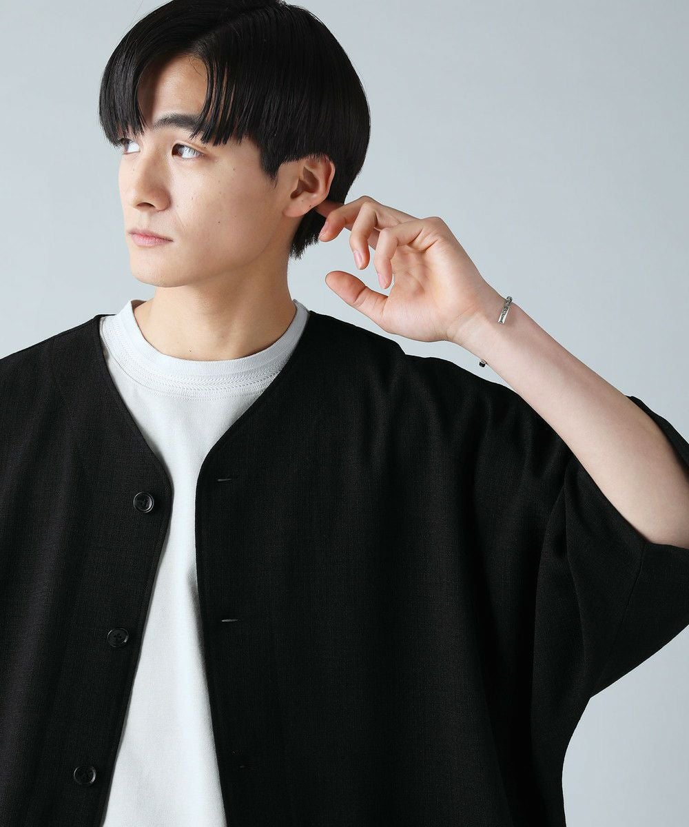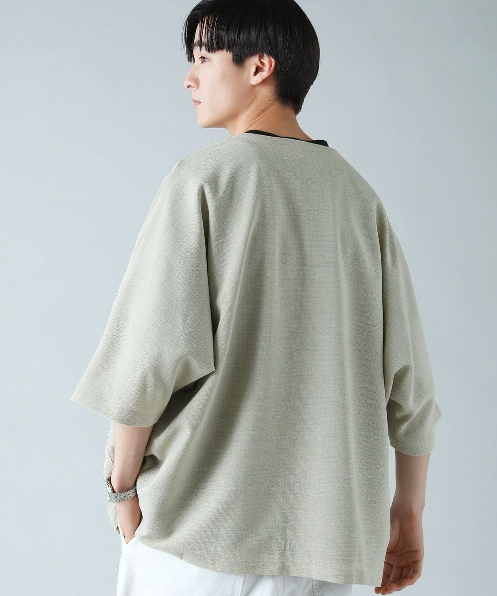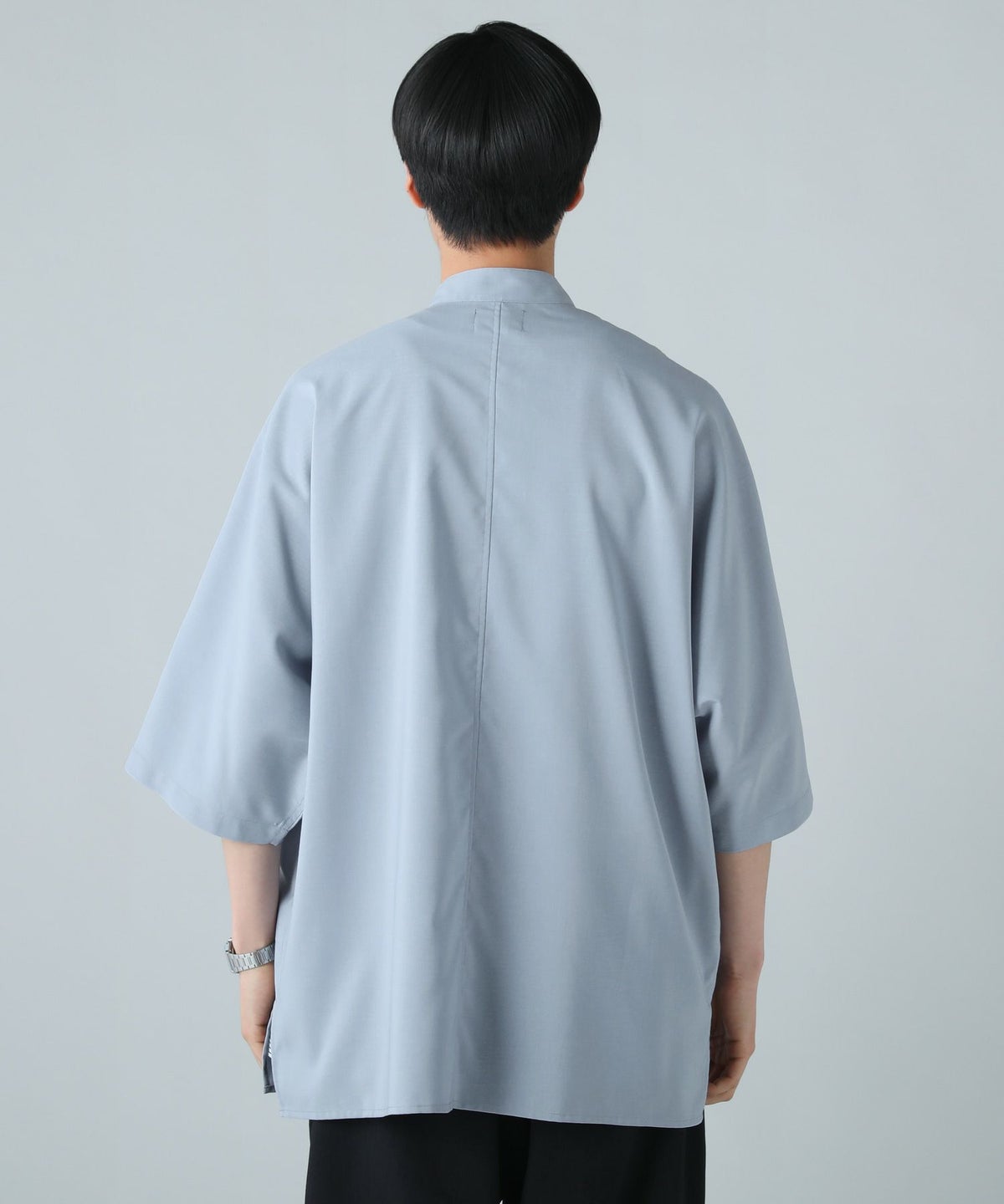 ドロップショルダー半袖バンドカラークレリックシャツ