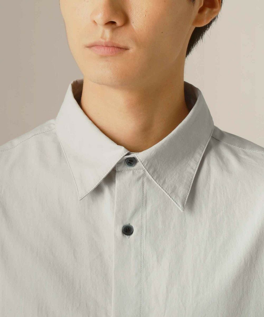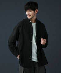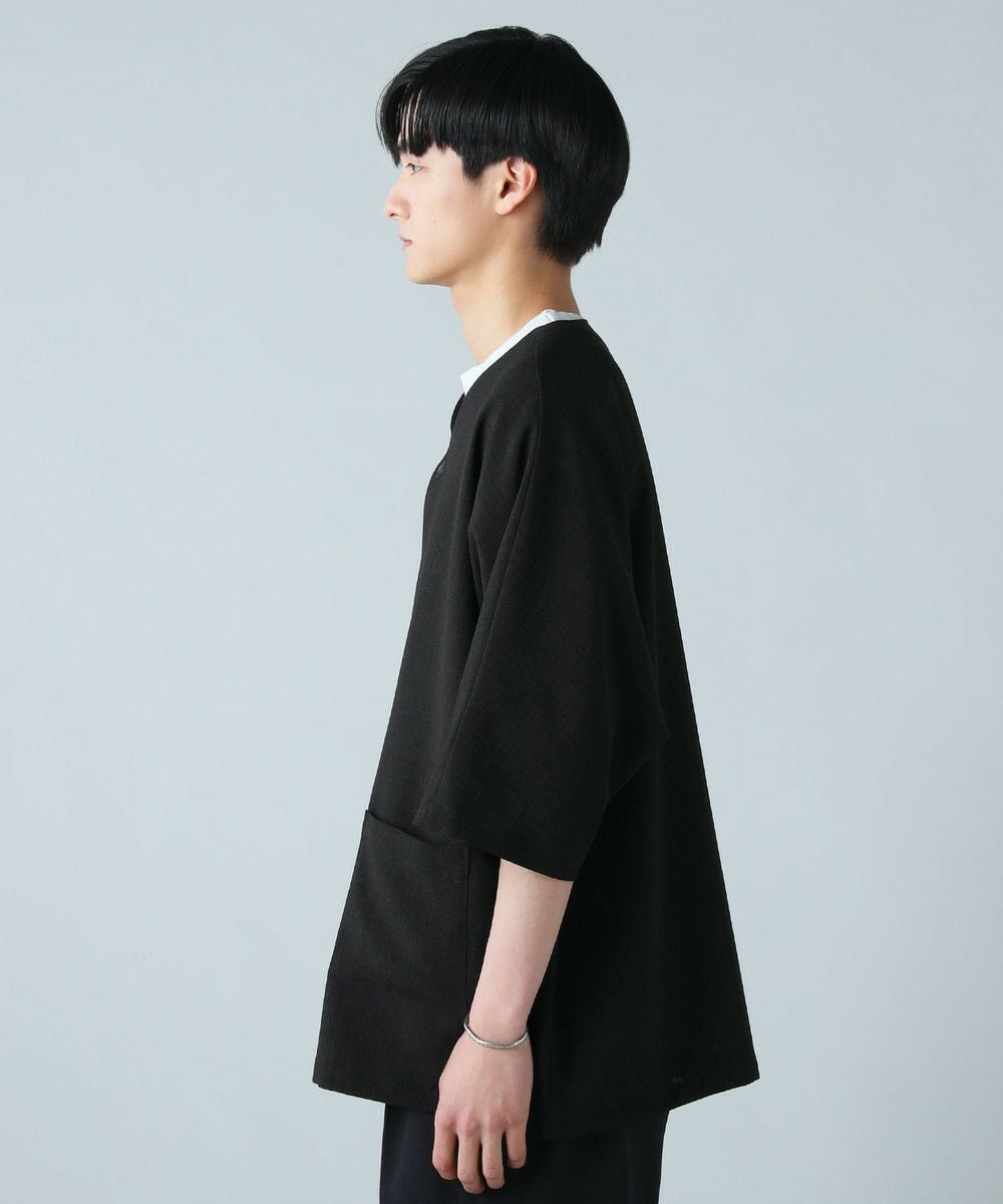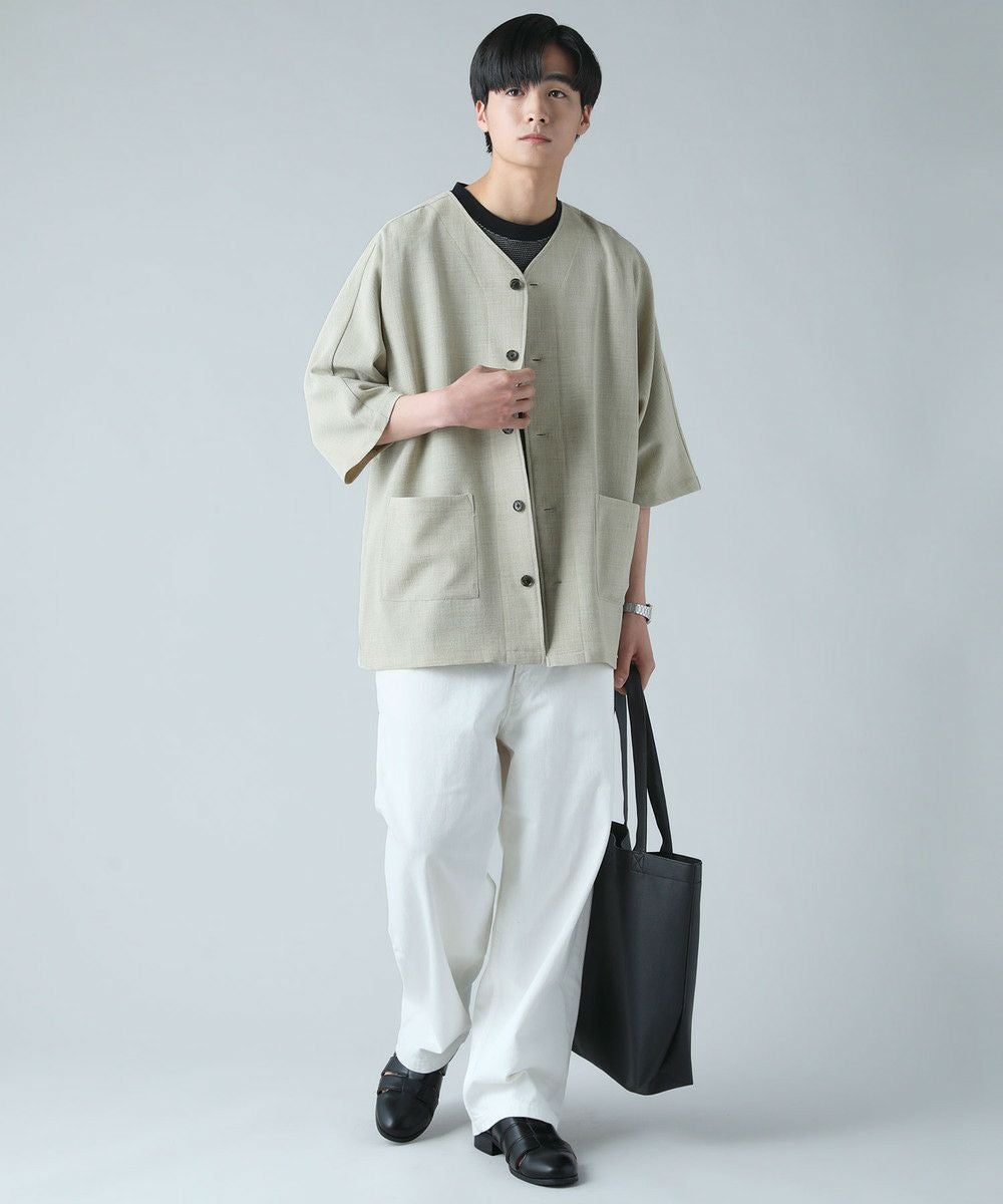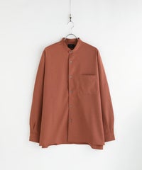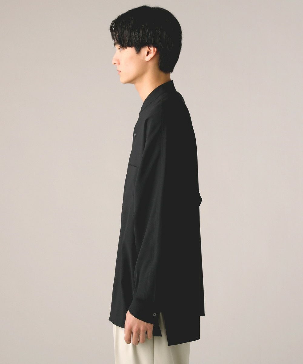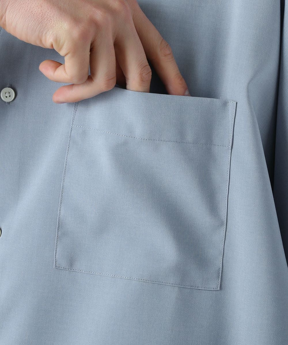 ドロップショルダー半袖バンドカラークレリックシャツ