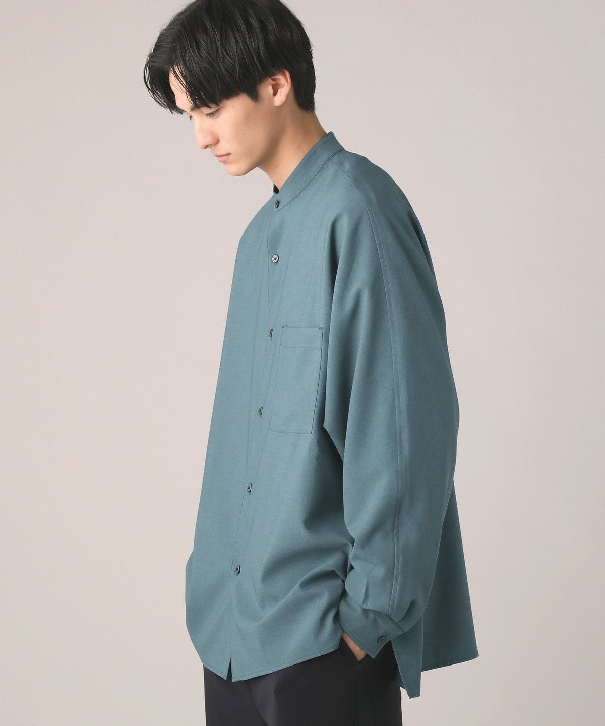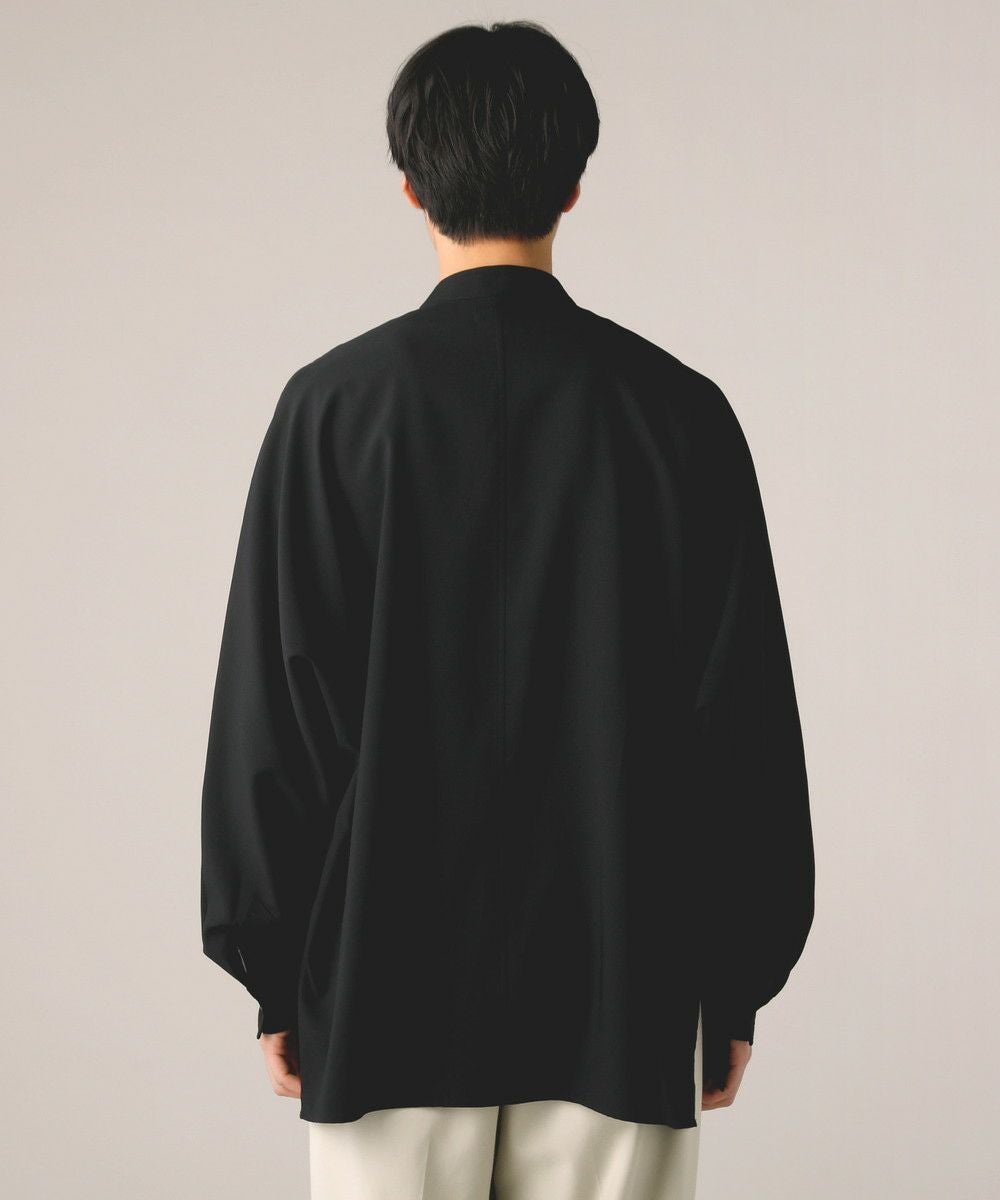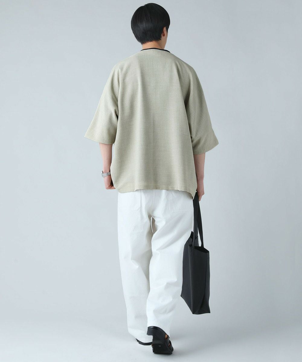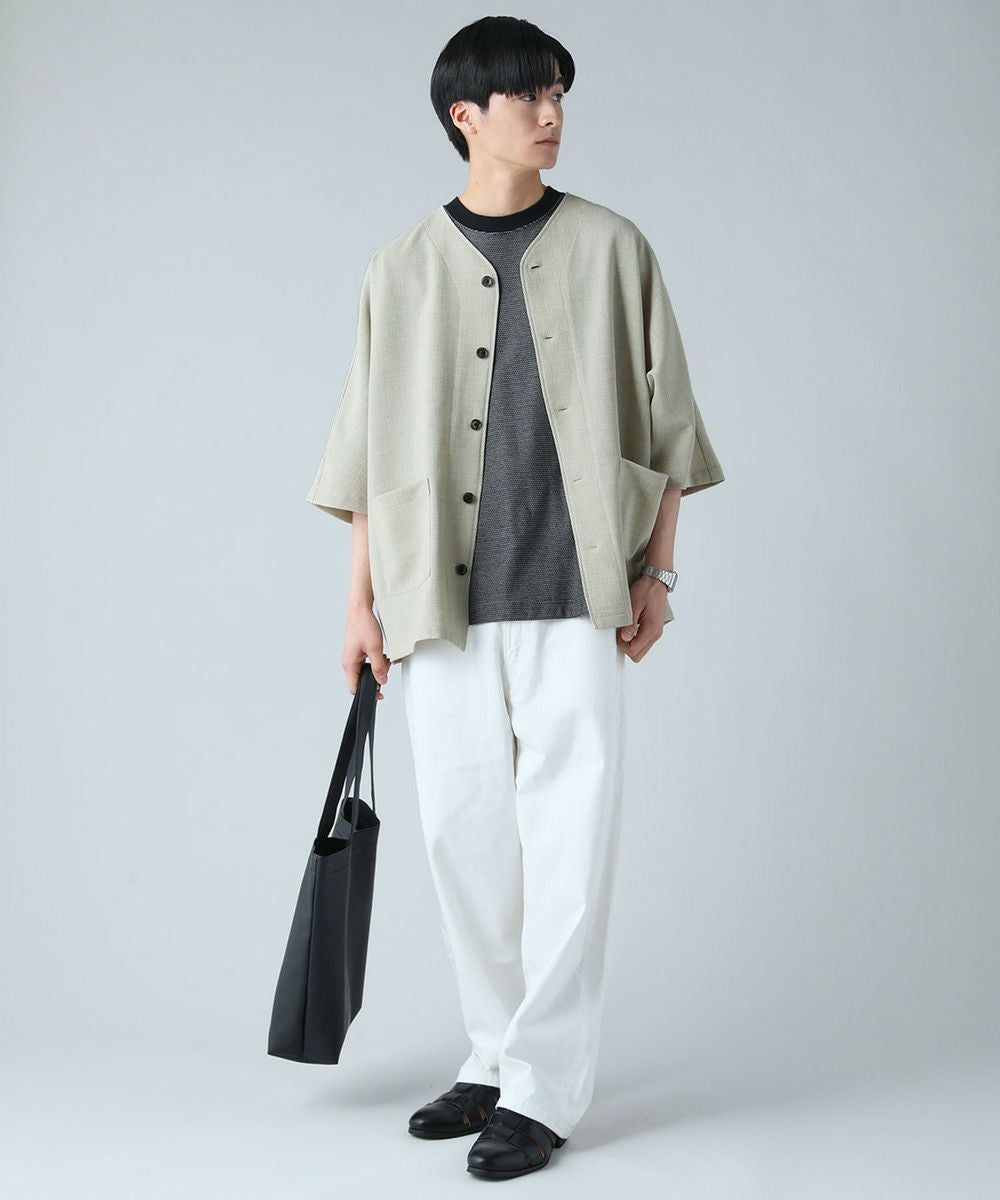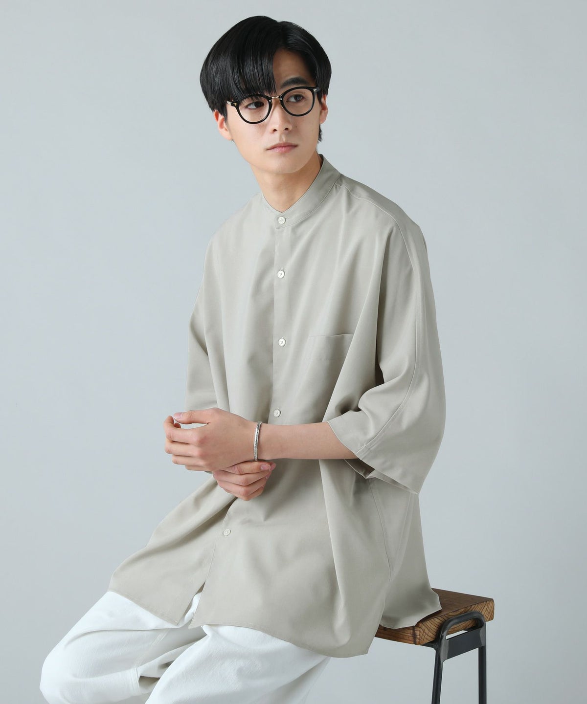 ドロップショルダー半袖バンドカラークレリックシャツ